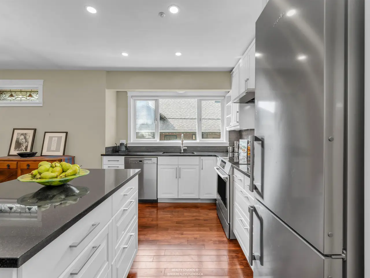Versatile Townhome Steps to Shops and the Beach! Discover this thoughtfully updated 3-bedroom, 2-bathroom townhome in a boutique strata community, surrounded by beautifully maintained gardens & just moments from 4th Avenue shops, cafes, & the beach. The main floor offers an inviting layout with an updated kitchen, bright living & dining spaces, & the convenience of a full bedroom & bathroom-perfect for guests, family, or single-level living. Upstairs, you’ll find 2 additional bedrooms & spa-like bathroom with steam shower & skylights. Also, a second kitchen, providing flexible options for extended family, hosting, or creating a private suite. With its updated features & versatile design this townhome delivers exceptional comfort in prime Kitsilano!