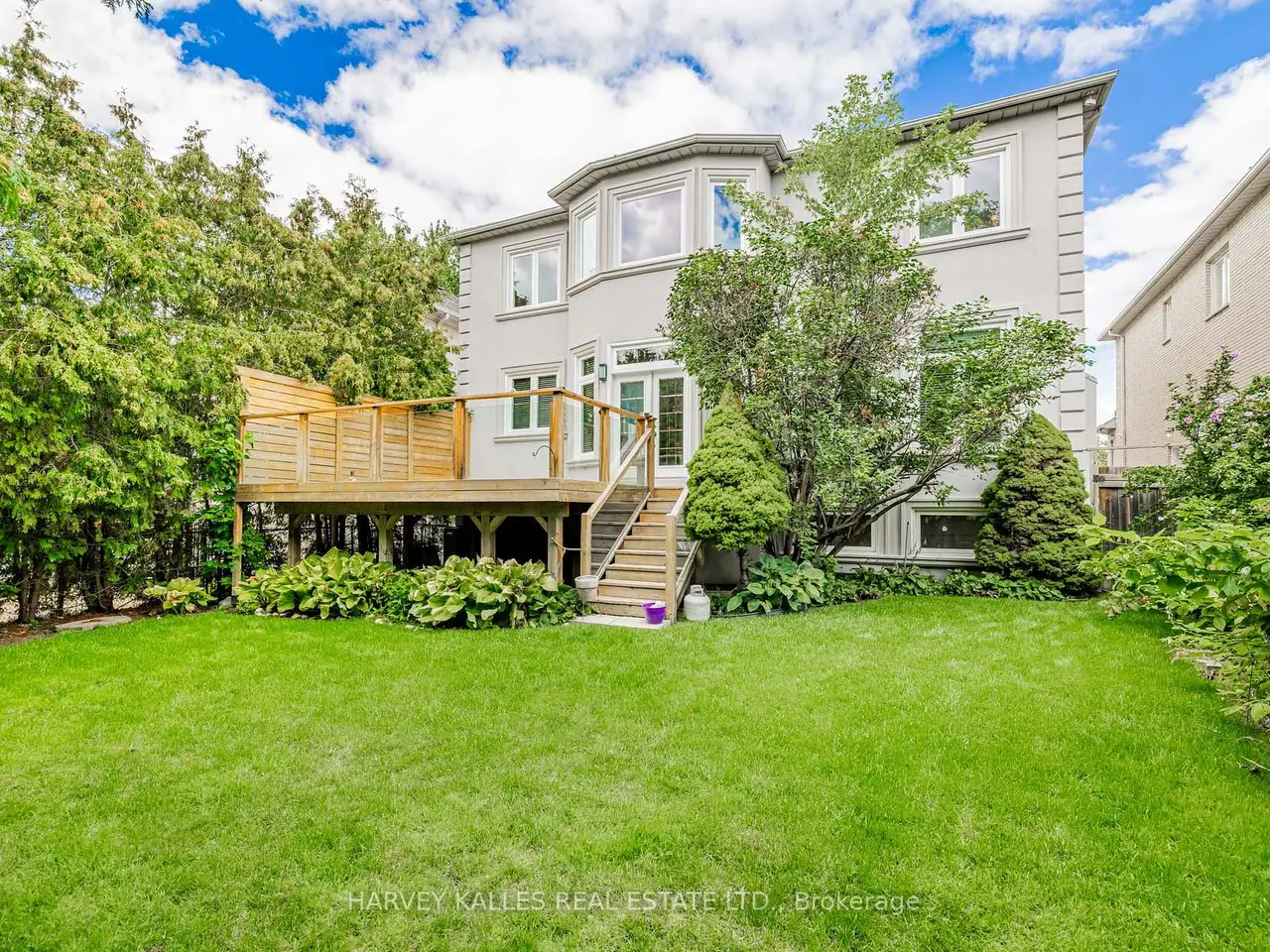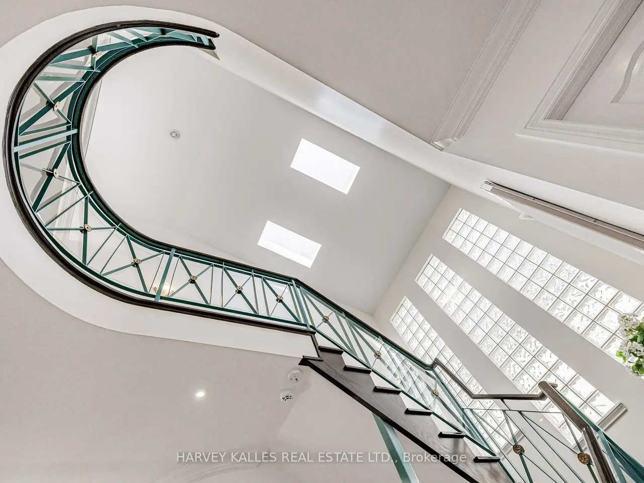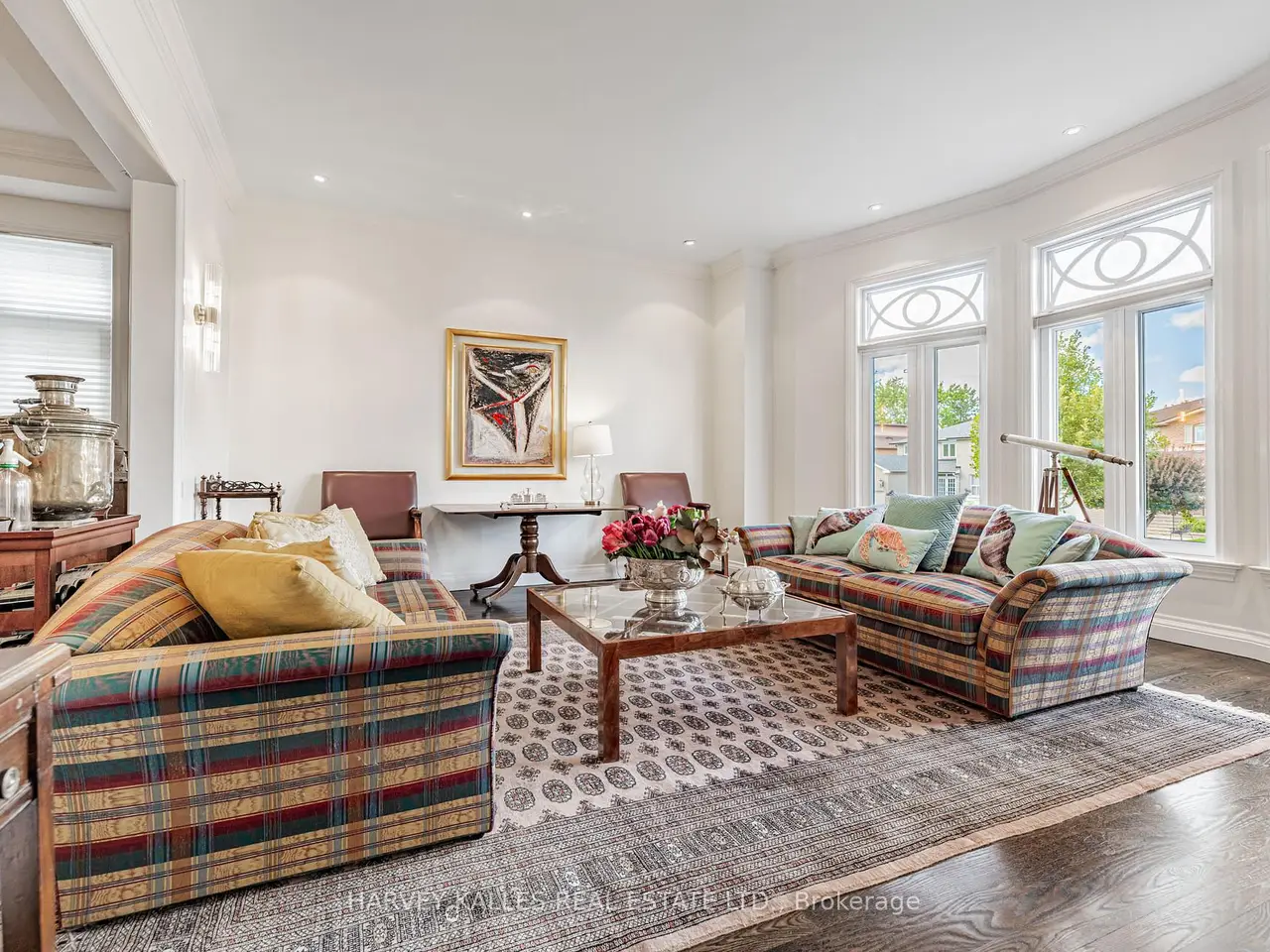 Nestled on a quiet cul-de-sac in one of Thornhill's most sought-after communities, this grand custom-built residence offers over 5,000 square feet of refined living space. Showcasing striking curb appeal and timeless architectural detail, the home opens into a dramatic double-height foyer with skylights and a sweeping curved staircase. The elegant layout features formal living and dining rooms, ideal for hosting memorable celebrations & family milestones, as well as a private main floor office/music room. The gourmet kitchen boasts quartz countertops, a center island, and built-in appliances including a JennAir fridge and two KitchenAid dishwashers. Adjacent is a bright breakfast area with a built-in desk and walk-out to a newly constructed expansive deck, perfect for outdoor entertaining. A warm family room with fireplace invites cozy nights in. The updated powder room and tucked-away laundry room complete the main level. Upstairs, the luxurious primary suite offers a sitting area, two oversized walk-in closets, and a spa-inspired ensuite bath. A spacious guest room with private ensuite and walk-in closet is perfect for in-laws or visitors. Two additional generous bedrooms share a bathroom with double vanity. The fully finished basement adds two more bedrooms and a huge rec space ideal for a theatre, gym, or playroom. Direct access to a double garage and mudroom adds convenience. Recently updated with fresh paint throughout, refinished hardwood on the main floor, and new flooring upstairs and in the basement. Interlocked double drive, landscaped and set among heritage and contemporary homes in a diverse, family-focused neighbourhood. A refined suburban lifestyle in close proximity to top-rated schools, synagogues, and an array of grocery and dining options. Conveniently located just minutes from Hwy 7 and 407, Promenade Shopping Centre, TTC & YRT transit. Enjoy the many nearby parks and wonderful nature, all ideal for leisurely strolls, sports, or family outings.