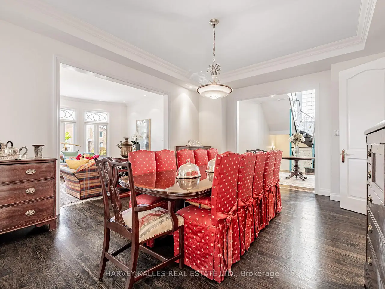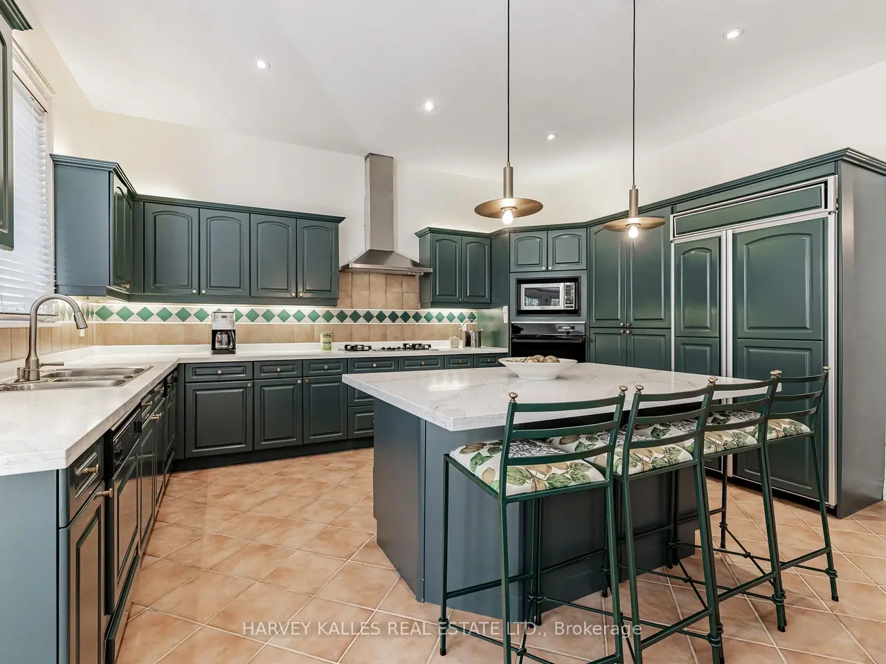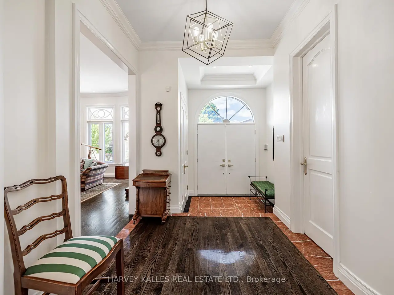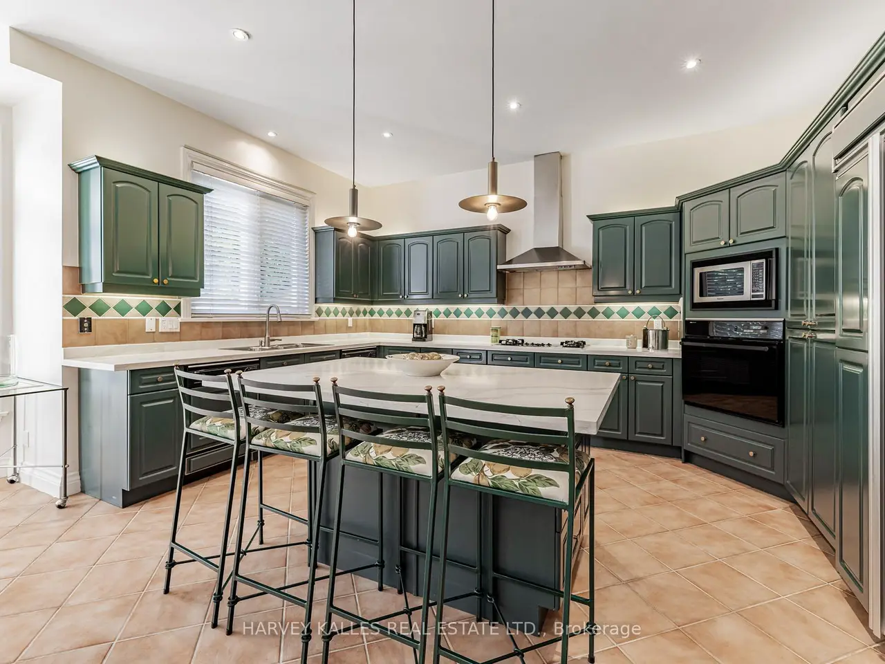 Nestled on a quiet cul-de-sac in one of Thornhill's most sought-after communities, this grand custom-built residence offers over 5,000 square feet of refined living space. Showcasing striking curb appeal and timeless architectural detail, the home opens into a dramatic double-height foyer with skylights and a sweeping curved staircase. The elegant layout features formal living and dining rooms, ideal for hosting memorable celebrations & family milestones, as well as a private main floor office/music room. The gourmet kitchen boasts quartz countertops, a center island, and built-in appliances including a JennAir fridge and two KitchenAid dishwashers. Adjacent is a bright breakfast area with a built-in desk and walk-out to a newly constructed expansive deck, perfect for outdoor entertaining. A warm family room with fireplace invites cozy nights in. The updated powder room and tucked-away laundry room complete the main level. Upstairs, the luxurious primary suite offers a sitting area, two oversized walk-in closets, and a spa-inspired ensuite bath. A spacious guest room with private ensuite and walk-in closet is perfect for in-laws or visitors. Two additional generous bedrooms share a bathroom with double vanity. The fully finished basement adds two more bedrooms and a huge rec space ideal for a theatre, gym, or playroom. Direct access to a double garage and mudroom adds convenience. Recently updated with fresh paint throughout, refinished hardwood on the main floor, and new flooring upstairs and in the basement. Interlocked double drive, landscaped and set among heritage and contemporary homes in a diverse, family-focused neighbourhood. A refined suburban lifestyle in close proximity to top-rated schools, synagogues, and an array of grocery and dining options. Conveniently located just minutes from Hwy 7 and 407, Promenade Shopping Centre, TTC & YRT transit. Enjoy the many nearby parks and wonderful nature, all ideal for leisurely strolls, sports, or family outings.