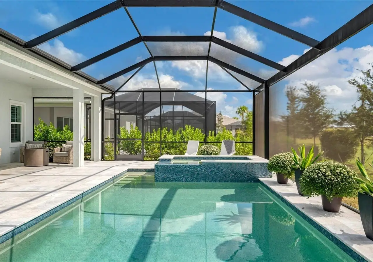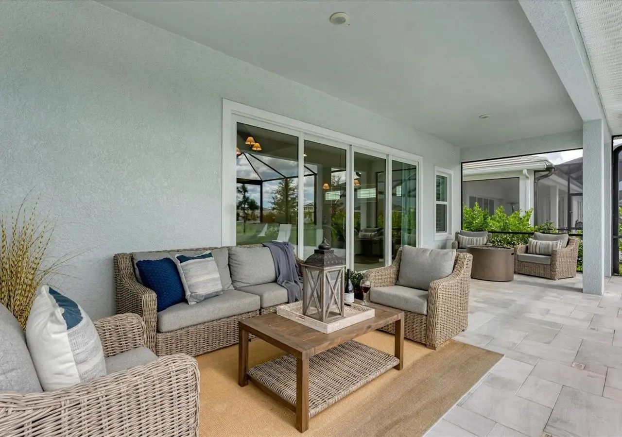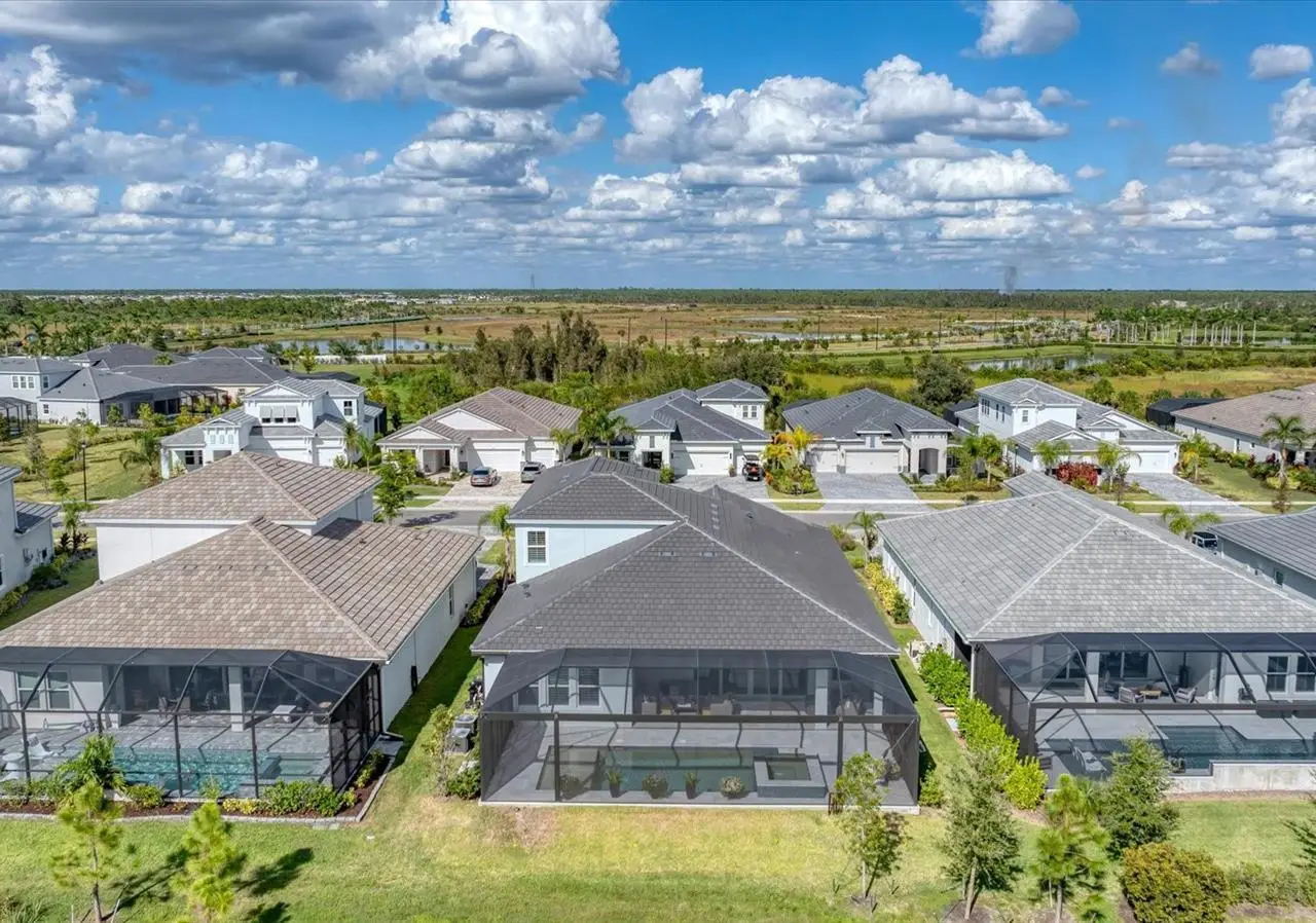 Experience luxury living within Wellen Park's Everly neighborhood, a private, amenity-rich, gated community designed for those who appreciate elegance, comfort, and connection. This exquisite residence embodies modern coastal living with over 3,600 square feet of refined interior space and an expansive outdoor entertaining retreat. Step outside to your custom-designed saltwater pool and spa, complete with a sun shelf and concrete sub-base deck - engineered to prevent settling and shifting of the main pool deck while providing easier long-term maintenance. The travertine tile lanai, generous covered spaces, and natural preserve backdrop create a peaceful and private oasis ideal for entertaining or relaxation. Inside, a soft neutral palette and designer-selected finishes create an atmosphere of warmth and sophistication. The gourmet kitchen is a chef's dream, featuring Monogram appliances, gas cooking, two spacious pantries, and a custom layout perfect for hosting and gathering. A dedicated den or office offers flexible space for working remotely or enjoying quiet retreat time. The primary suite serves as a luxurious sanctuary, with a soaking tub, rain shower, and elegant design touches throughout. Three additional bedrooms and baths provide comfort and privacy for family and guests alike. The second floor expands the home's versatility - offering a bedroom, full bath, and an open area ideal for a media room, gaming space, or children's retreat. Car enthusiasts and golf lovers will appreciate the three-car garage configuration, with a front-facing two-car garage and a side-entry single-car garage - perfect for a golf cart or extra storage. Residents of Everly enjoy access to premier community amenities, including a resort-style pool and spa, state-of-the-art fitness center, pickleball courts, and an elegant clubhouse - all designed to complement the vibrant, active lifestyle that defines Wellen Park. Conveniently located and just a golf cart ride to downtown Wellen Park, near local beaches, Venice shopping and dining, Atlanta Braves Spring Training Facility, I-75, and area airports. Every inch of this home showcases impeccable craftsmanship and bespoke design, creating a residence that is as breathtaking as it is functional. Designed for both beauty and function, the home features impact-rated windows for weather protection, energy efficiency, and peace of mind. Every detail from the coastal-inspired lighting to the thoughtful architectural flow - reflects a level of craftsmanship and design unique to Everly living. Whether entertaining by the pool, relaxing in the spa, or gathering in the heart of the home, this property offers an elevated coastal lifestyle in one of Wellen Park's most prestigious neighborhoods. No waiting to build this winter- this extraordinary home is complete and ready to welcome you home.