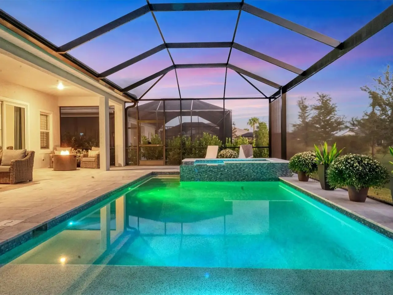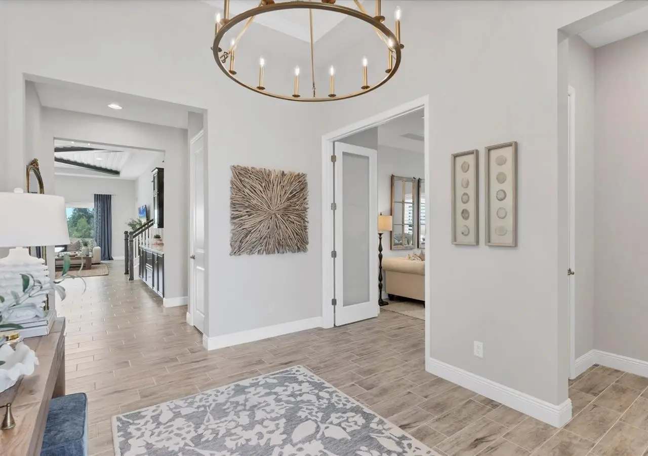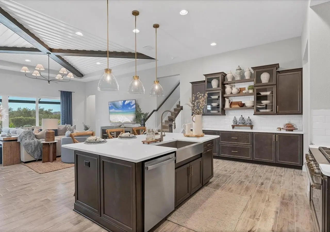 Experience luxury living within Wellen Park's Everly neighborhood, a private, amenity-rich, gated community designed for those who appreciate elegance, comfort, and connection. This exquisite residence embodies modern coastal living with over 3,600 square feet of refined interior space and an expansive outdoor entertaining retreat. Step outside to your custom-designed saltwater pool and spa, complete with a sun shelf and concrete sub-base deck - engineered to prevent settling and shifting of the main pool deck while providing easier long-term maintenance. The travertine tile lanai, generous covered spaces, and natural preserve backdrop create a peaceful and private oasis ideal for entertaining or relaxation. Inside, a soft neutral palette and designer-selected finishes create an atmosphere of warmth and sophistication. The gourmet kitchen is a chef's dream, featuring Monogram appliances, gas cooking, two spacious pantries, and a custom layout perfect for hosting and gathering. A dedicated den or office offers flexible space for working remotely or enjoying quiet retreat time. The primary suite serves as a luxurious sanctuary, with a soaking tub, rain shower, and elegant design touches throughout. Three additional bedrooms and baths provide comfort and privacy for family and guests alike. The second floor expands the home's versatility - offering a bedroom, full bath, and an open area ideal for a media room, gaming space, or children's retreat. Car enthusiasts and golf lovers will appreciate the three-car garage configuration, with a front-facing two-car garage and a side-entry single-car garage - perfect for a golf cart or extra storage. Residents of Everly enjoy access to premier community amenities, including a resort-style pool and spa, state-of-the-art fitness center, pickleball courts, and an elegant clubhouse - all designed to complement the vibrant, active lifestyle that defines Wellen Park. Conveniently located and just a golf cart ride to downtown Wellen Park, near local beaches, Venice shopping and dining, Atlanta Braves Spring Training Facility, I-75, and area airports. Every inch of this home showcases impeccable craftsmanship and bespoke design, creating a residence that is as breathtaking as it is functional. Designed for both beauty and function, the home features impact-rated windows for weather protection, energy efficiency, and peace of mind. Every detail from the coastal-inspired lighting to the thoughtful architectural flow - reflects a level of craftsmanship and design unique to Everly living. Whether entertaining by the pool, relaxing in the spa, or gathering in the heart of the home, this property offers an elevated coastal lifestyle in one of Wellen Park's most prestigious neighborhoods. No waiting to build this winter- this extraordinary home is complete and ready to welcome you home.