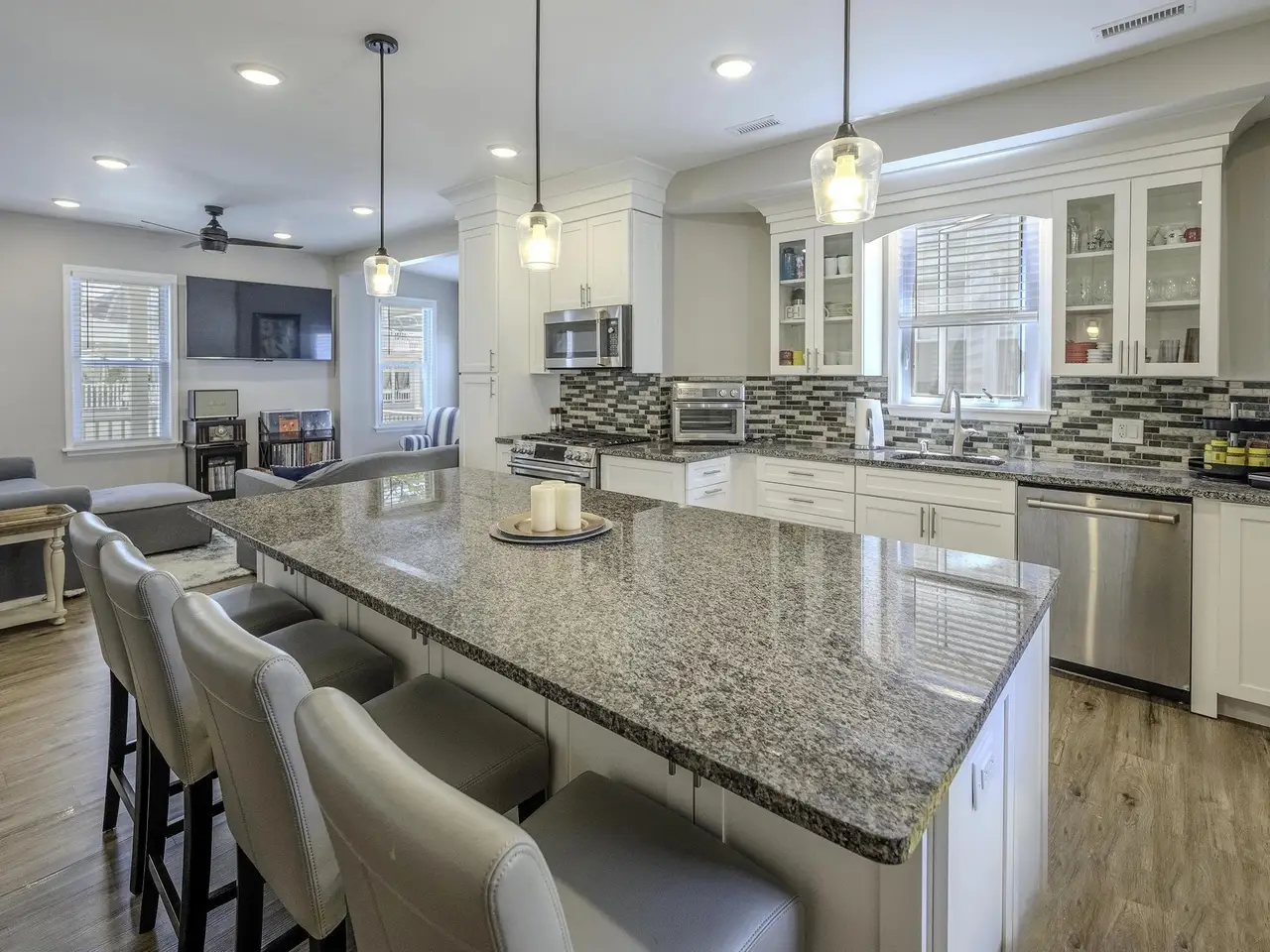 LOCATION IS AMAZING WITH ONLY 1/2 BLOCK TO THE GORGEOUS VENTNOR BEACHES. This is a single-family OR legal duplex setup that has so many different options. As a large single-family home boasting 6 bedrooms and 4 full baths and two kitchens. Or a beautiful 4 bedroom 3 full bath main house and a really cool 2 bed 1 bath garden apartment with separate entrance, own laundry and attached storage. A great space for in-laws, friends, extended family. Or INVESTOR ALERT, you could use it as an investment property monetizing both the up and downstairs or live in one and rent the other,helping offset any expenses or costs. There are so many possibilities for best use. This is a must see property that has been tastefully redone and gutted to the studs in both living spaces. Enjoy the spacious front porch and an upstairs deck with ocean views. There's also a deck off the kitchen in the back for barbecuing and an outside back area for outdoor entertaining, There is a spacious outdoor shower for your enjoyment right off the beach. 2 off street parking spots and a detached garage.Some of the interior upgrades include but are not limited to new luxury vinyl flooring throughout, tiled bathrooms, a beautiful kitchen including new granite throughout and GE cafe stainless appliances. 2 sets of washers and dryers. More upgrades include new 6 foot privacy fence with three custom gates, complete security system, new deck coating, new tankless hot water heaters. Dual zone forced heat/ AC , a decorative gas fireplace . This is a must see property as North Beach continues to expand with new construction, stores and shopping Walking distance to the boardwalk, the beach, the restaurants, new movie theater, Wawa, etc.