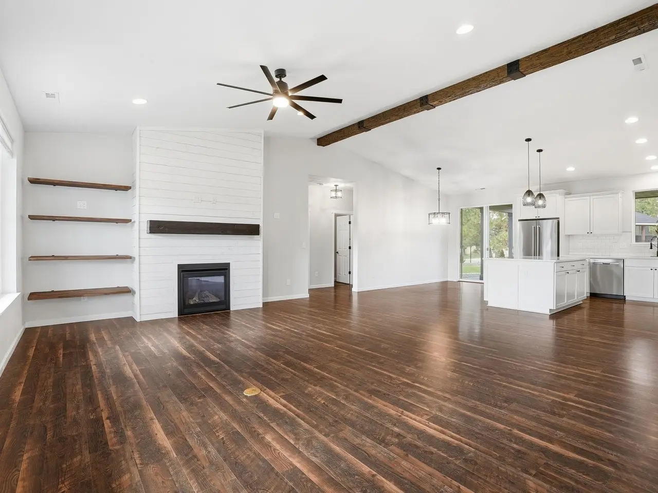 Experience refined living in this stunning 2021 modern farmhouse, located in the private, gated community of Red Fox Ridge. Offering an incredible opportunity, this is the most attractively priced home in the neighborhood with no compromise on luxury, style, or setting. Enjoy 2,711 sq ft of thoughtfully designed space featuring 4 bedrooms, 2.5 baths, soaring vaulted ceilings with custom beams, & an open flow layout made for gatherings. The gourmet kitchen boasts a generous island & double ovens, opening effortlessly to the warm dining & living areas.The luxurious primary suite offers a relaxing retreat with a huge, oversized walk-in closet & spa inspired bathroom. Spacious main floor bonus room with its own bar makes entertaining easy whether for game nights, movie marathons, or holiday hosting. Situated on 0.51-acre corner lot that backs to a peaceful wooded HOA easement, you'll love the privacy, wildlife views, stone firepit, & covered patio for year-round enjoyment.