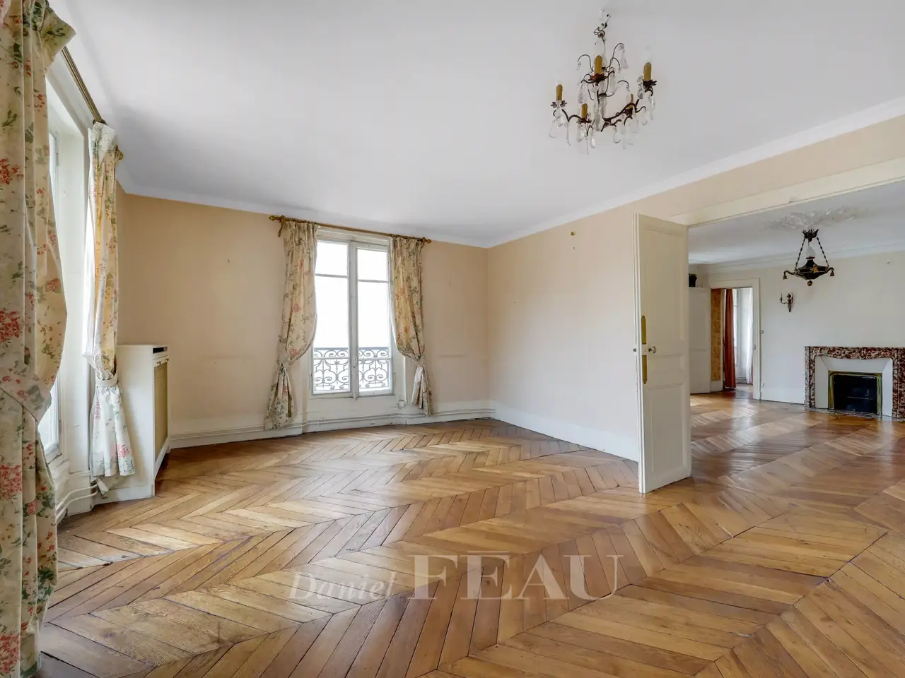 This south and west facing apartment is on the 2nd floor of a listed 18th century co-ownership facing Place des Armes. Overlooking a paved courtyard, it includes an entrance hall featuring a soaring ceiling, a double living/reception room, a kitchen with dining facilities, four bedrooms, a shower room and a separate wc. Superb period features include Herringbone parquet flooring, mouldings, fireplaces and a Prussian stove. With two attics and a cellar. Parking is possible in the courtyard. In a prime location in the immediate vicinity of the chateau, rue de la Paroisse and the shops, and the transport networks. Renovation is required to exploit the great potential.