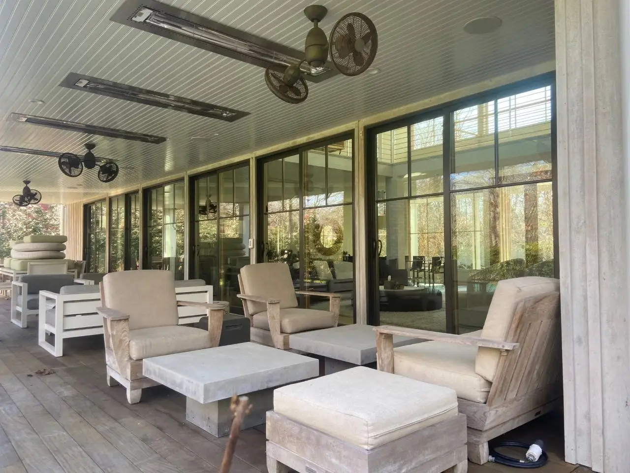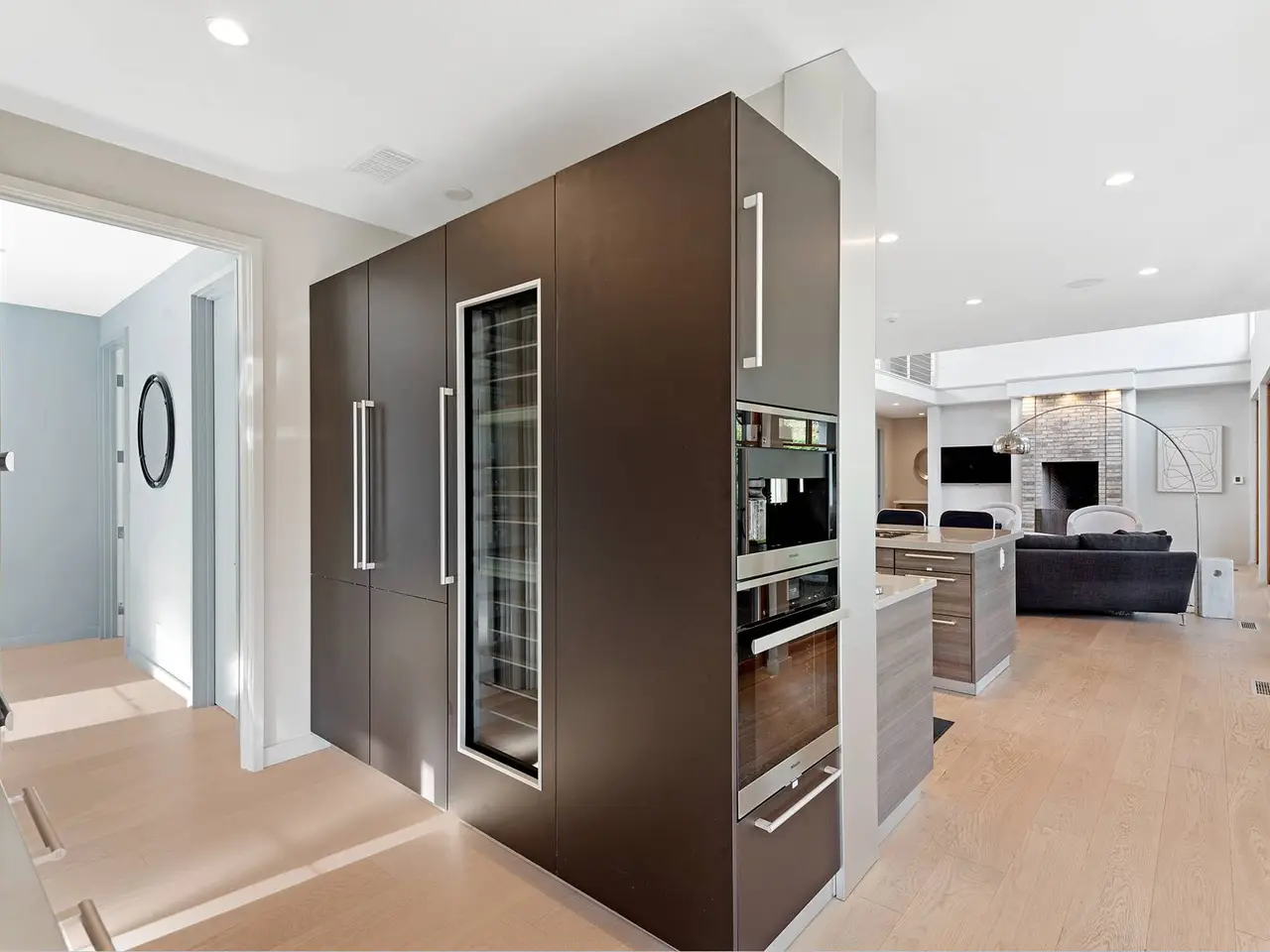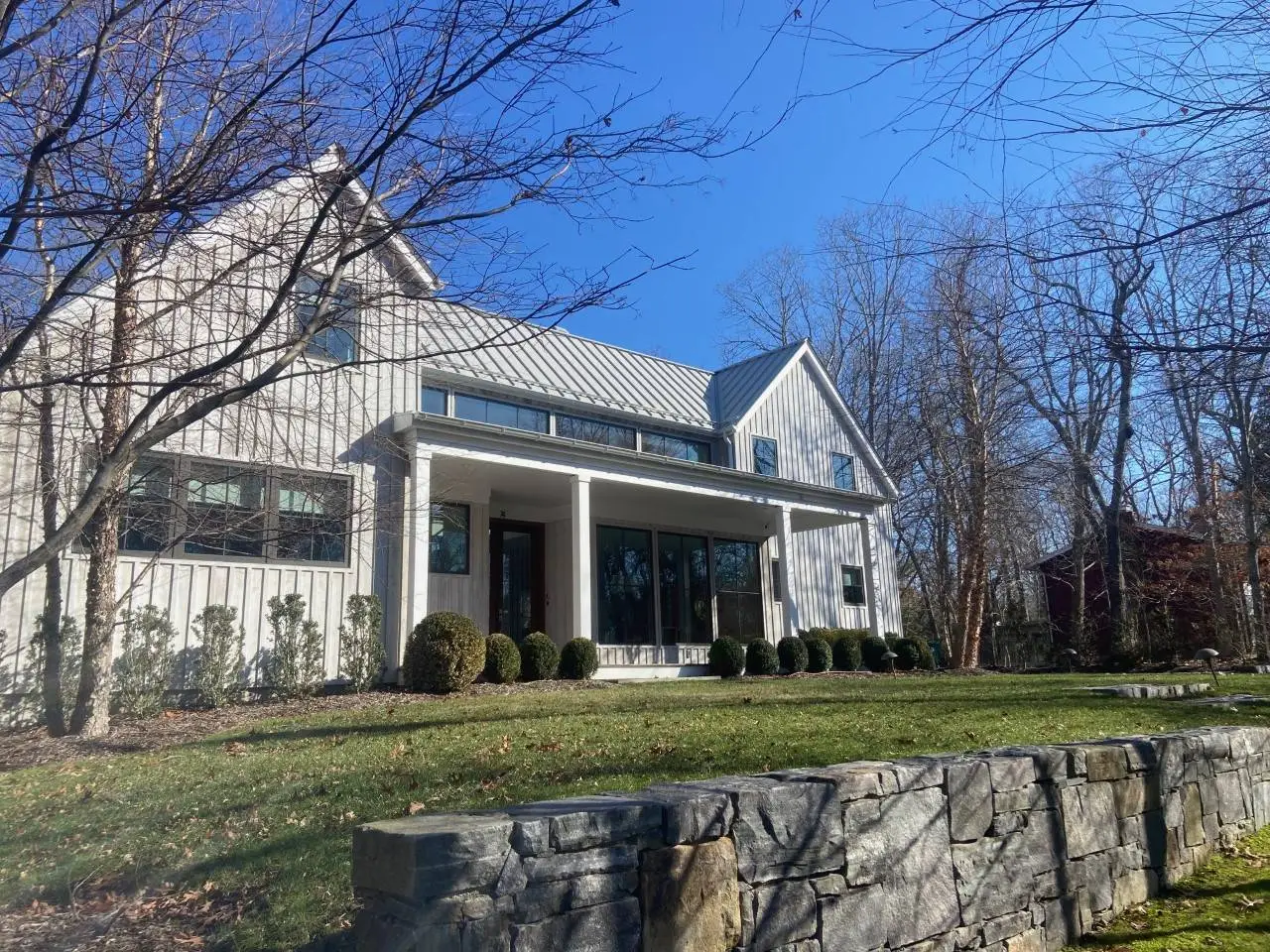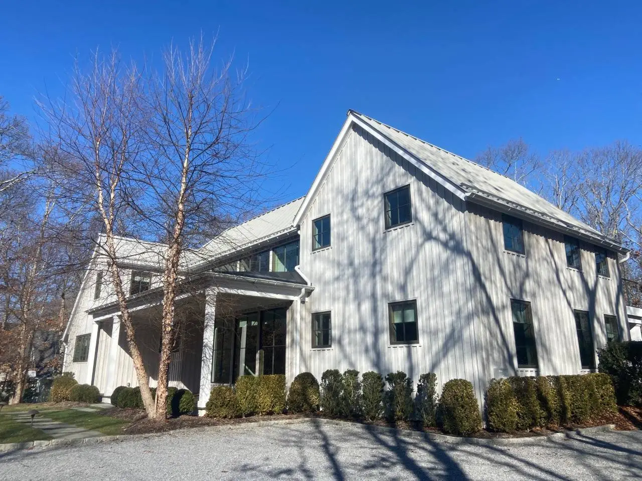 Close to the Village, within a few blocks to a private community beach and less than 1.5 +- miles to Havens Beach in Sag Harbor, this stunning, modern farmhouse features six bedrooms and seven-and-one-half baths across approximately 3,800 square feet. Multiple sleek windows and oversized sliders create walls of glass in the grand, double-height living room with a fireplace that opens to the formal dining room and a designer chef's kitchen with a center island and counter dining. The spectacular primary en suite includes a vaulted-tray ceiling, a gas fireplace with a flat screen, and access to a large mahogany deck overlooking the background. A separate guest wing on the second level is accessed across the gallery bridge. Additional guest rooms and bathrooms are well-appointed with marble and contemporary fixtures. An extensive covered mahogany deck includes a lounge and dining space, ceiling fans, an outdoor fireplace, and a stainless grill. Beyond that, lush lawns and landscaping surround the zero-edge heated pool and spa. Additional amenities include a den with fireplace and flat screen, light, wide-plank hardwood flooring throughout, and a dedicated 1st-floor laundry room.