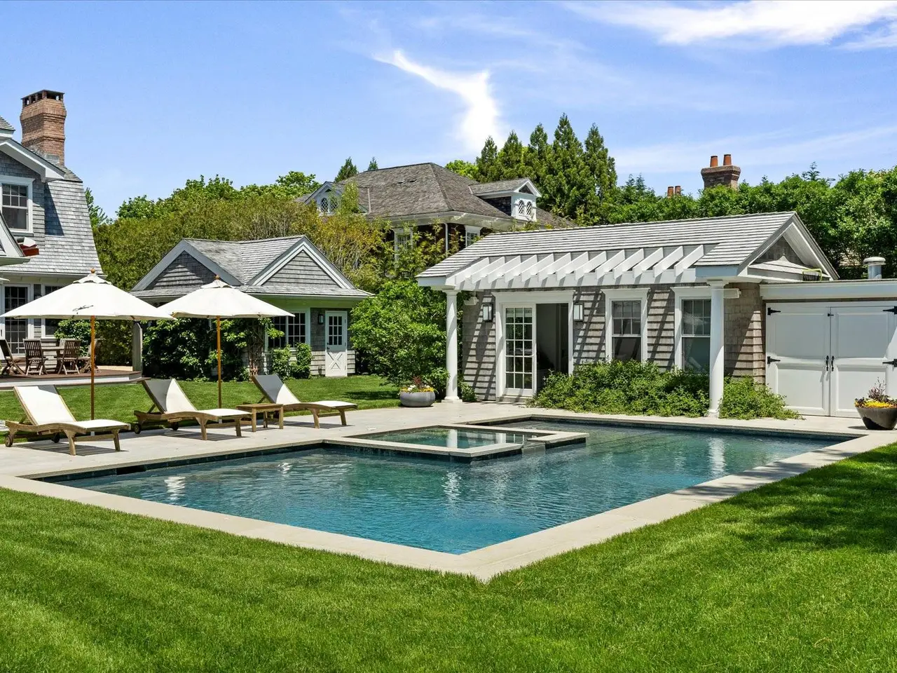 The perfect Hamptons getaway in the Estate section of Southampton Village. Three blocks from the Famous Little Plains Beach and close to Village.Smartly decorated, clean, bright and spacious. Five bedrooms, four baths, two half baths, staff quarters with two laundry areas. Great game room with photo booth and entertaining room, with access to Gunite pool, jacuzzi and pool house with full entertaining facilities, bar, etc. Property is private with lovely landscaping. Listing ID: 736551