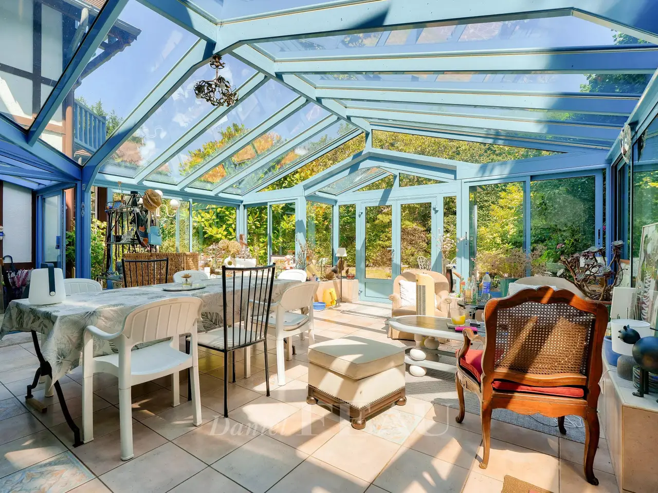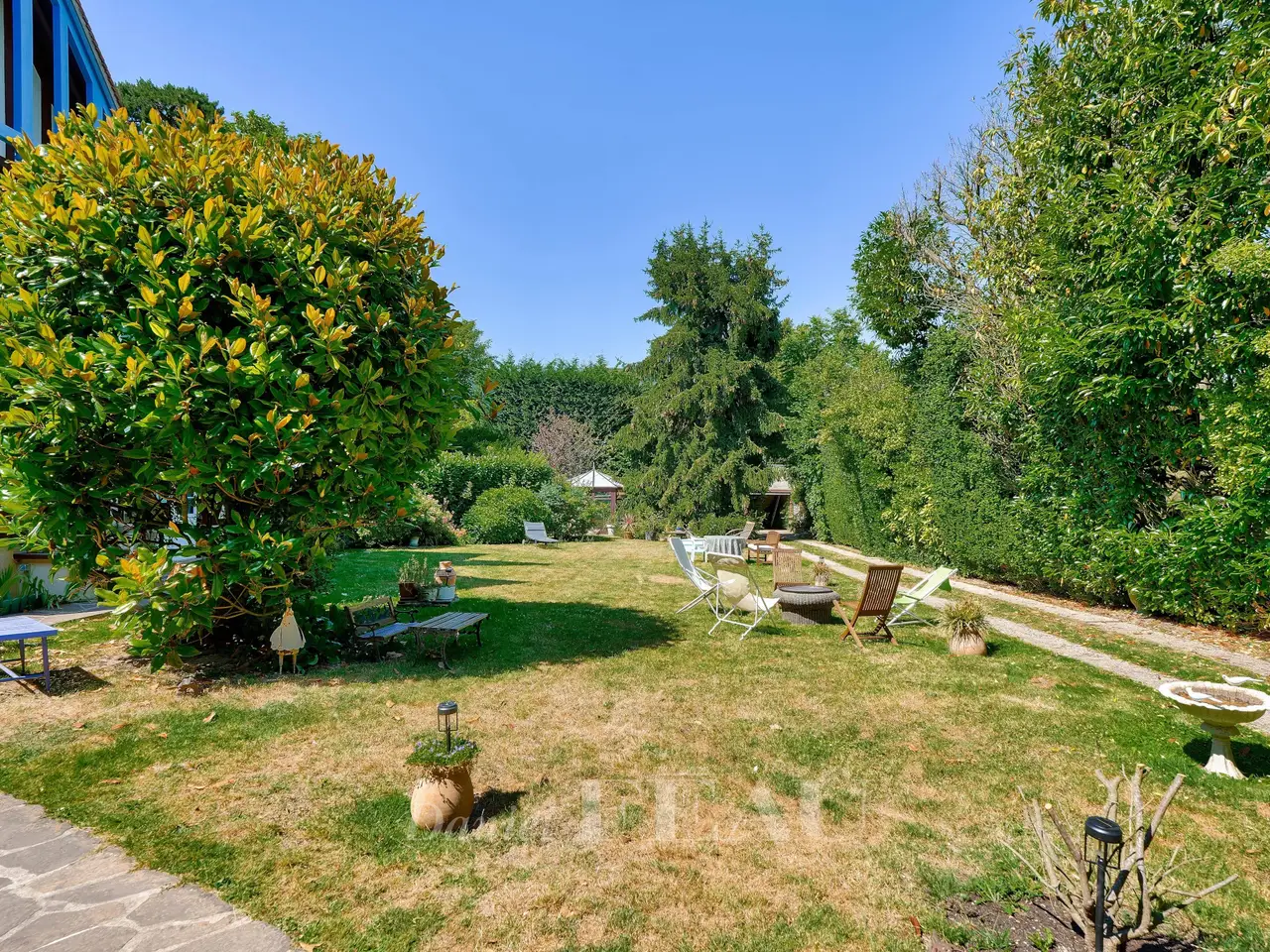This late 19th century property is in a leafy environment a stone’s throw from Saint-Cloud Park and the forest, and a 3-minute walk from the bus lanes accessing the station. It includes a living/reception room, a dining room, a conservatory, a kitchen with a pantry, and a study. Upstairs are a master suite with a bathroom and a dressing room accessing a near 28 sqm terrace, and two bedrooms sharing a bathroom. The top floor comprises two further bedrooms, a shower room, a study with fitted storage space, and a fitness room. On a partial basement with a boiler room, a storage room and a wine cellar. A double garage and a chicken coop are at the bottom of the garden.
