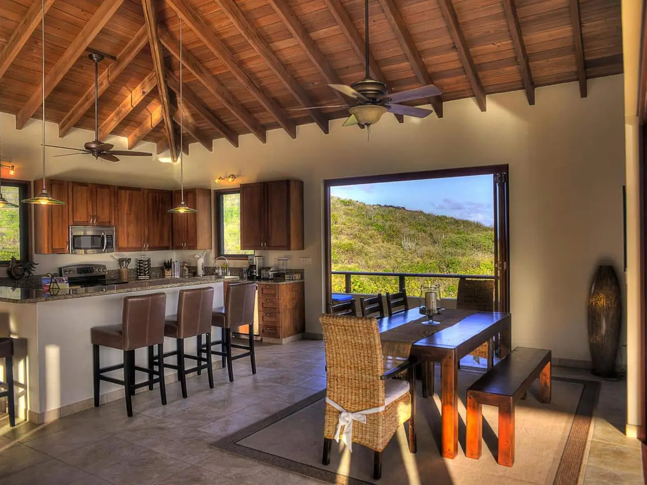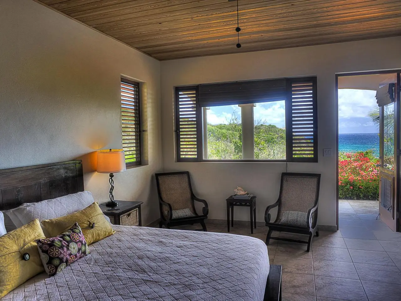 <iframe src="https://my.matterport.com/show/?m=CYJ1ds1XgV6" width="853" height="480" frameborder="0" allowfullscreen="allowfullscreen"></iframe><br /> <br /> <iframe src="https://my.matterport.com/show/?m=hQyUWGdqvtw" width="853" height="480" frameborder="0" allowfullscreen="allowfullscreen"></iframe><br /> <br /> ‘Calypso Villa’ is one of Virgin Gorda’s finest luxury villas; fully renovated in 2018. Quietly nestled among magnificent boulders and beautiful vegetation, the property is very private and welcoming. Built on a large land lot, the property is very private and peaceful.<br /> <br /> The house was designed and situated on the property to take advantage of prevailing trade winds and to maximize the panoramic views of the Caribbean Sea. Calypso’s thoughtful design provides numerous shaded porches where guests can escape the mid-day heat as well as a sun drenched pool deck that is the ideal spot for fun in the sun.<br /> <br /> Calypso’s living spaces feature walls of folding glass doors that allow for the very best in Caribbean indoor-outdoor living. Calypso’s outdoor spaces feature high quality teak furniture with plenty of seating options. As you soak up the sun or relax in the shade you will be surrounded by the villa’s mature tropical gardens filled with flowers, cacti, and fruit trees. A few hours spent chilling in Calypso’s pool is the perfect way to take in all this incredible property has to offer.<br /> <br /> Calypso Villa has a fully equipped chef’s kitchen with granite countertops and stainless steel appliances. You can also enjoy gas and charcoal BBQ grills on the pool deck. This house is particularly well equipped and as a result makes for a truly comfortable vacation experience.<br /> <br /> Calypso Villa is a 3-bedroom, 3½ bathroom house featuring large interiors and expansive outdoor decks and patios.<br /> Each bedroom has it’s own private bathroom and outdoor spaces feature high quality teak furniture with plenty of seating options.<br /> <br /> This house is great for sharing because each bedroom is like a master suite. Two of the bedrooms feature king-sized mattresses and two of the bathrooms have additional outdoor showers. The third bedroom has two queen-sized beds. This configuration offers lots of flexibility for families with children. All of the bedrooms are equipped with air conditioning and have flat panel televisions.<br /> <br /> Calypso Villa is a fenced and gated property located in the exclusive residential neighborhood of Crooks Bay near the Baths in Virgin Gorda. The house is a short walk to the beach at Crook’s Bay. This villa is ideally located within a 5 minutes drive from a dozen restaurants, the Virgin Gorda Yacht Harbor, all of the island’s grocery stores, and a ½ dozen world-class beaches including The Baths, Spring Bay, and Little Trunk Bay. The location is ideal for enjoying the very best of Virgin Gorda. We know you will love it at Calypso Villa!!