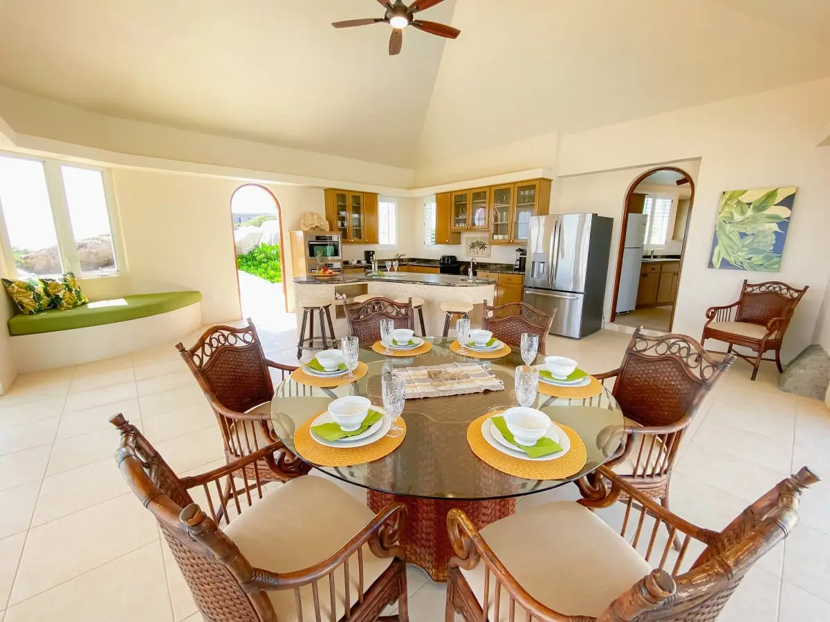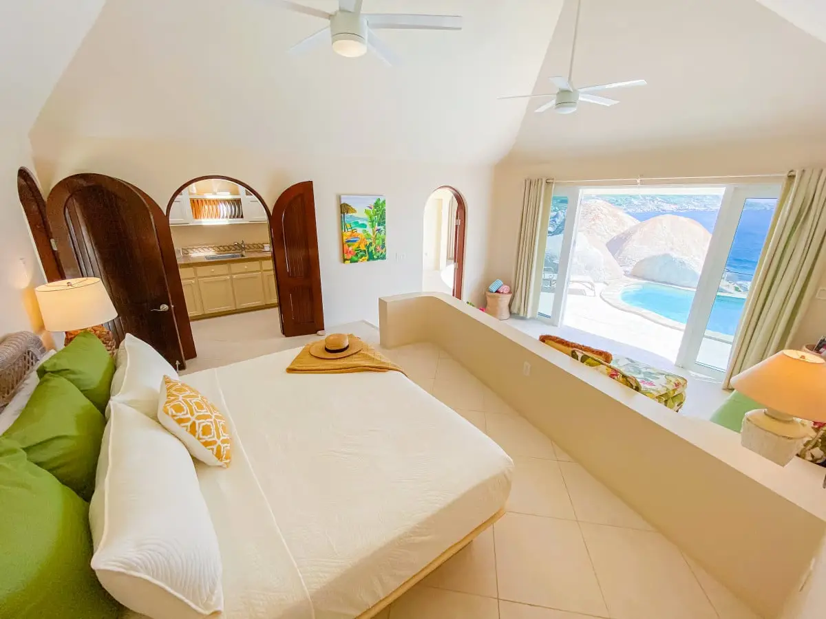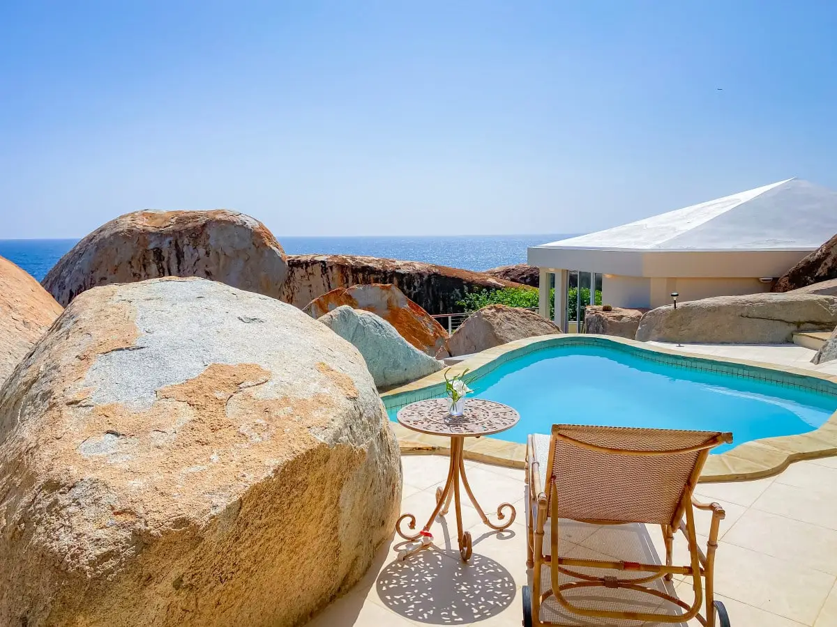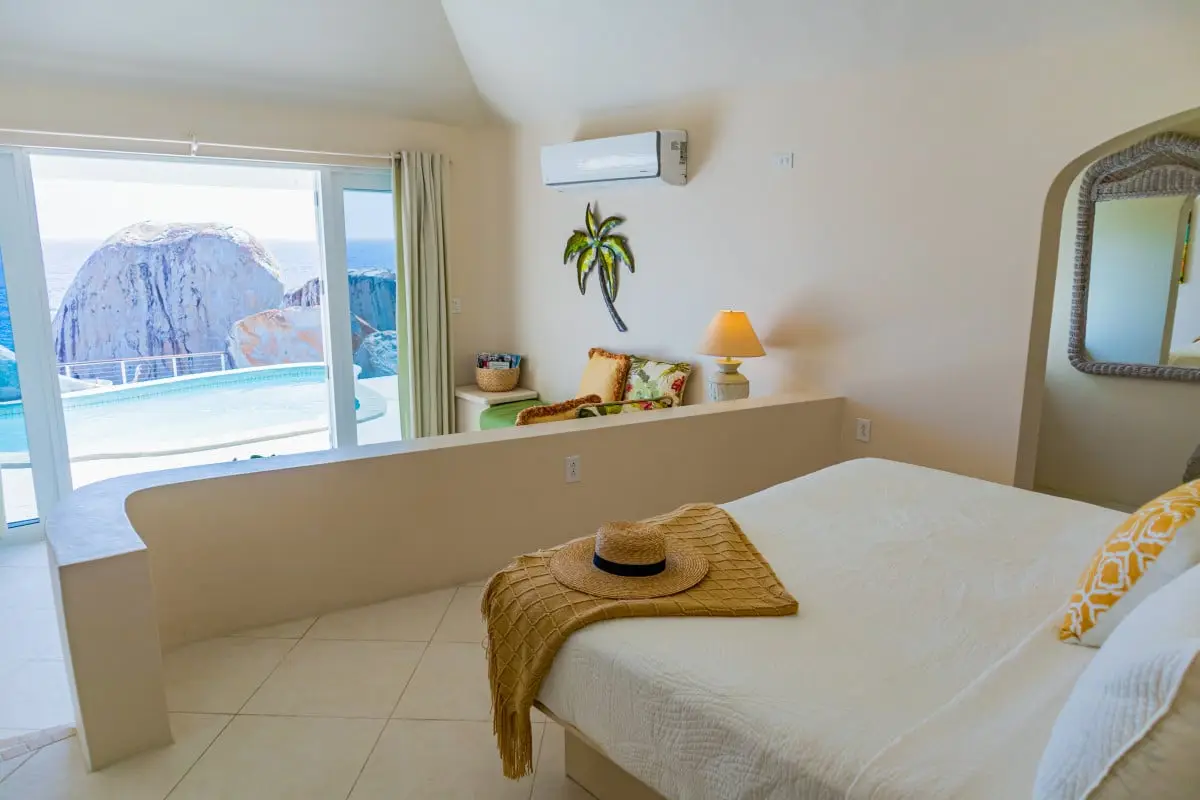<strong>REDUCED FROM 4.5 MILLION </strong>Water's Edge was constructed in the heart of one of nature's great wonders. Located among the giant granite boulder fields of Virgin Gorda, this is a contemporary Caribbean fantasy home. It lies close to the World famous “Baths” National Park, but in a secluded, quiet and private estate. Any new owner of this unique home will enjoy sharing both the spectacular natural scenery whilst relaxing in deluxe accommodations, in a one-of-a-kind setting for one of the most extraordinary experiences in the BVI.<br /> <br /> Water's Edge was designed so that construction of the house would live in harmony with the natural environment and not distract from the location's spectacular beauty. Tucked away in a cavernous area, the exterior garden walls enclose the villa and you enter through Brazilian hardwood doors to discover the treasurers beyond.<br /> <br /> Once inside, an instant sense of awe is felt as the home is designed around a collection of huge volcanic boulders. The sensation of tranquility is instant as the panoramas of the Caribbean Ocean lure the eyes to embrace the turquoise waters. Water's Edge is uniquely connected with outdoor living as all three of the property's buildings have been constructed to fit amongst the granite rocks. Cream coloured exteriors with white peaked-roofs and orange clay tiles provide soft tones to contrast against the vibrant scenery. Large folding glass doors and picture windows frame the unhindered views while enabling a refreshing breeze to travel throughout the indoor living spaces. The patio and deck afford plenty of space featuring an outside bar area equipped with power points and a spot for an extra fridge. In addition to various hidden spaces for stargazing and sun lounging, when it's time to cool off, the 24ft pool with its unique little river and footbridge are a blessing for a refreshing dip.<br /> <br /> The home is a blank canvas waiting for the personal touches of its new owners to be implemented into the design, furnishings, and decor. The first building contains the kitchen and dining area, with state-of-the-art cooking facilities, sparkling tortoise shell granite countertops and custom wooden cabinetry. This great room offers an ocean view and is flooded by natural light from the floor length folding glass doors, which open to the outer decks. In addition to the luxury, fully equipped kitchen, a central island in the cooking area comprises bar stools and an additional small sink and station for preparing cocktails. A wine fridge compliments the open space where you can serve and entertain your guests relaxing on a unique built-in stone sofa. An expansive pantry with additional kitchen prep area links the great room to the indoor and outdoor shower, bath and laundry areas which are all accessible for pool use.<br /> <br /> From the second building, the expansive windows deliver a dramatic view of the ocean. This room was intended as the main indoor living area, and the design possibilities are endless for any new owner to craft the room with the comforts and amenities they desire. Currently this room doubles as another bedroom with access to the pool bath.<br /> <br /> The third building holds two and a half bedrooms. Both main bedrooms have direct patio access where a plunge pool is situated, while offering seclusion between the boulders and views looking out to sea. Both bedrooms contain king-sized beds, en-suite bathrooms featuring a powder areas for makeup, double sinks, and gorgeous outdoor showers constructed between the boulders. One of the bedrooms is also fitted with a small kitchenette behind double wooden doors and a pass through window, giving the owners a private place for breakfast and other meals if not wanting to use the main kitchen. The eating space is nestled under a covered patio between the bedrooms. The views are spectacular from all areas. This home brings in substantial revenue as a short-term rental.<br /> <br /> This home is perfect for anyone who enjoys entertaining.<br /> <h3>Water's Edge Virtual Tour on Virgin Gorda, British Virgin Islands</h3><br /> <iframe src="https://my.matterport.com/show/?m=yzR6dVx8Puu" width="853" height="480" frameborder="0" allowfullscreen="allowfullscreen"></iframe><br /> <h3>Water's Edge Sun Room Virtual Tour on Virgin Gorda, British Virgin Islands</h3><br /> <iframe src="https://my.matterport.com/show/?m=Hofv3m4QzBW" width="853" height="480" frameborder="0" allowfullscreen="allowfullscreen"></iframe><br /> <h3>Water's Edge Guest Villa Virtual Tour on Virgin Gorda, British Virgin Islands</h3><br /> <iframe src="https://my.matterport.com/show/?m=oEyW842sgRV" width="853" height="480" frameborder="0" allowfullscreen="allowfullscreen"></iframe><br /> <br />