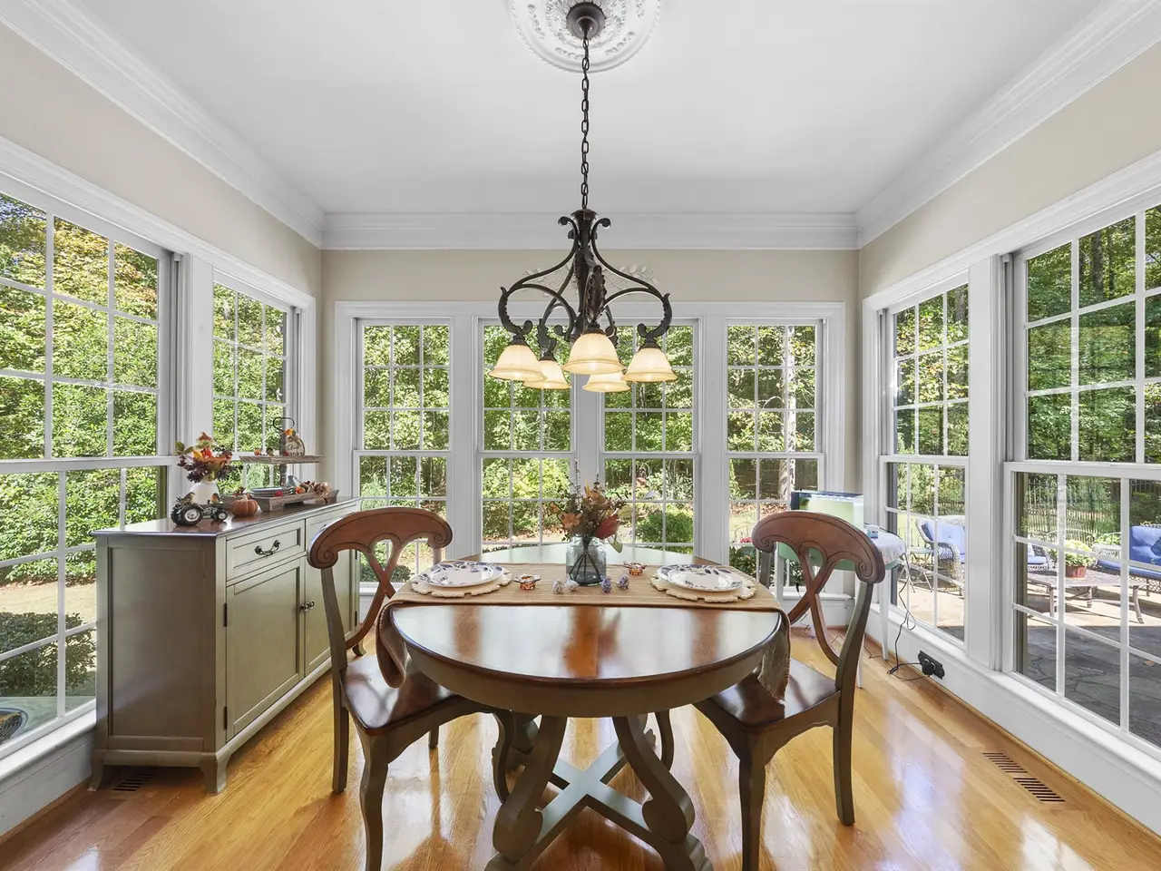 Welcome home to this private, hidden gem in Wake Forest! From the moment you drive up, you are greeted with beautiful mature trees and calming landscape. Situated on over 1.5 acres in a cul-de-sac, this quiet retreat offers a cozy front porch privately nestled with Japanese Maple trees, greenery covered archways, and a stone walkway. Upon entering the home, you are welcomed by a gorgeous entry with archways, high ceiling, and gleaming hardwood floors. Through the large archway to your right, step into a spacious sitting room with a front window spanning from the floor to the ceiling and across significant portion of the wall. This makes for perfect bird watching as a feeder and birdbath sits in front of the window. Through the archway to the left, you will find a formal dining room with two windows stretching to the floor. Your guests will thoroughly enjoy sharing a meal with you in this lovely dining area. Enjoy your morning coffee on the private and spacious screened porch with a view of the lush forest, Japanese Maple trees and a stone patio. Then relax in the family room with high ceilings and built-in bookshelves flanking the fireplace. The large windows frame a gorgeous view of the inset stone back patio, greenery and flower gardens, and the many, privacy providing mature trees. Continue into the beautiful kitchen with plenty of storage, granite countertops and large eat-in kitchen area offering lots of natural light. Enjoy a first floor owner suite and large ensuite bath, with an owner closet that will WOW you!!Continue upstairs to the 3 additional bedrooms with 2 additional full baths. Step down into an oversized bonus room with so many options! Need storage? DO NOT MISS the 3 walk-in storage areas located on the 2nd floor. NEW Roof 2019, NEW HVACS, 2025 (downstairs) and 2024 (upstairs). Fresh interior paint, leaf guards on gutters, water softening system. So much to discover and love about this home and property. Be sure to visit and walk the grounds, you will be recharged and reminded of the natural beauty that nature offers. And although this home feels like a remote resort, it is conveniently located approximately 20 minutes from highway 540, Falls Lake and trails, highway 98, and US1. In addition, plenty of restaurants and shopping are minutes away. This property offers quiet living but also the convenience of city life within a short drive. Welcome home!