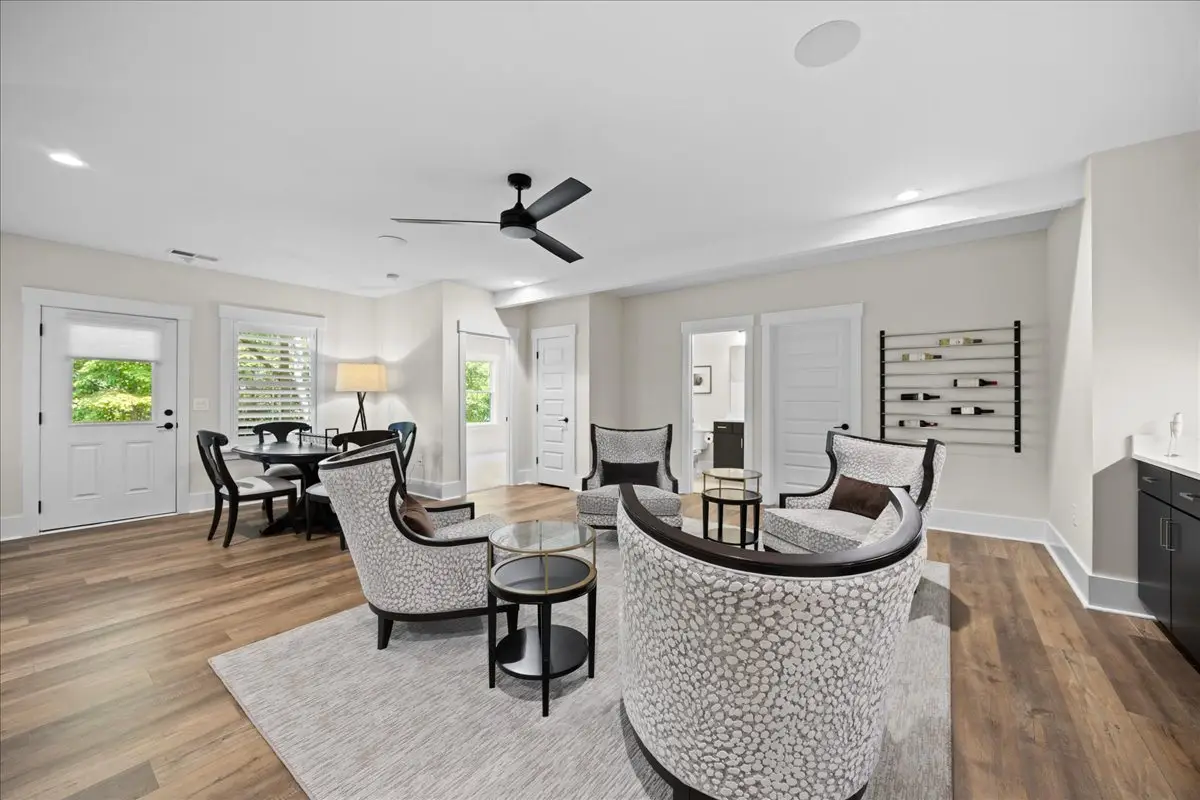 ''Turnkey'' Luxury Living! Featuring a pristine white facade, elegant double doors and a spacious 3 car garage- This is the one! Unique opportunity to purchase a fully furnished designer home! Every detail has been thoughtfully crafted for style and function. Meticulously maintained and appointed by a professional designer. This home features high end finishes and curated furnishings throughout-all of which convey! Just open the door to your exquisite new home and start living. Experience luxury and functionality in this 6 bedroom, 6.5 bath home. Less than 2 years old, this residence offers an elevated sense of style and comfort in every detail. You are greeted by a pristine, large dining room with elegant wallpaper. The family room is welcoming and has a stunning, 2 story brick fireplace that is anchored by sleek built-ins on each side. Inside, enjoy a seamless indoor-outdoor lifestyle with full retractable doors that open the living space to the tree top views of the outdoors and the screen porch - perfect for entertaining or quiet evenings at home. The show-stopping kitchen features a quartz waterfall back-to-back cabinet island with a Teflon farmhouse sink. The Green Certified ''Responsible-Sustainable'' stacked white cabinets with glass toppers, custom hood, top of the line Thermador cooktop, double ovens, refrigerator and a microwave drawer make this kitchen a culinary dream! The daylight basement provides exceptional versatility, perfect for multi-generational living, a private guest suite or extended entertaining space. If future needs require additional space this 5300 square home can be made even larger with expansion of almost an additional 1000 sq. feet of unfinished areas in the basement. The home features a large double garage that accommodates 2 large SUV's plus an additional 3rd car garage. The main floor offers an impressive owner's suite & large secondary bedroom with a full bath. (Currently being used as an office.) Upstairs you will find a loft, 3 additional bedrooms, 3 ensuite bathrooms and a office/bonus space. This area is a relaxing area for kids, extended family and guests to enjoy their own ''private sanctuary'' of the home. The daylight basement features a large den area, a kitchentte-, bar area and a game table area. The basement also features the 6th bedroom with an ensuite bathroom. This area is perfect for a nanny suite, teen suite or multi-generational living. This area has ample storage in the unfinished areas. This former model is elegant and sure to impress. This home is within minutes to the charming downtown Wake Forest, medical and dental offices, shopping, restaurants and Highway 98 & US 1. Enoy shopping at Wegman's or enjoying delicious pastries at Paul & Jack's. Explore the welcoming small town feel of Wake Forest but yet so close to Raleigh. Maintain an active lifestyle with miles of walkable trails right outside your door. (The Wake Forest Reservoir Trails ) Whether you're seeking space for extended family, a work-from-home sanctuary, or simply room to spread out in style, this home delivers modern elegance, functionality and lasting quality!