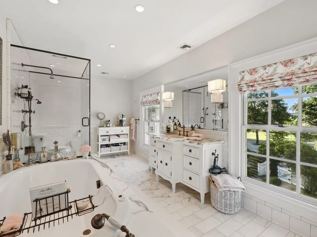 Longhouse Farm, a beautifully restored farmhouse with many designer upgrades, is absolutely breathtaking! Its 11+ acres of scenic beauty, historic elegance, and luxurious modern amenities, make it the perfect blend of sophistication and tranquility. This equestrian estate consists of the main house, a guest house, a 9-stall barn, 4 stall run-in overlooking a fountained pond and trout-fed stream, which all add a wonderful touch for those who appreciate country living. Plus, with the chef's kitchen that includes: a 6-burner LeCornue range, a Sub-Zero refrigerator, a huge quartz top island with a second sink, dual Bosch dishwashers, Miele espresso machine, and wine cooler, as well as the many beautiful spaces like the conservatory and library, make it an entertainers dream home for anyone who loves comfort and style. The newly built Hamptons-style heated pool with a pergola is incredible for entertaining or simply unwinding. And the wrap-around deck is perfect for taking in the sunsets. All of the window treatments are custom-made. There are fenced pastures in a bucolic setting. This amazing property was featured in Mansion Global and Cottages & Gardens. The proximity to NYC makes it even more desirable for a peaceful year-round getaway without being too far from the city.