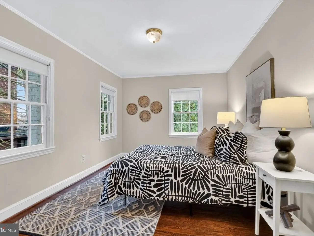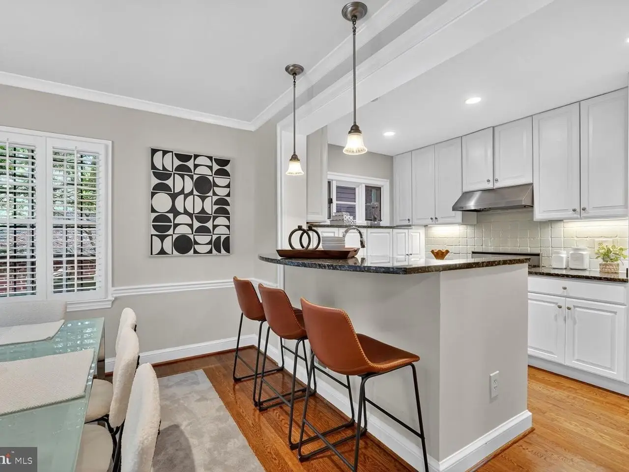 Classic storybook 1941 Federal with nearly 2600 sq ft of charming living spaces! Wonderful chef's kitchen with good counter & cabinet space and an open breakfast or dining area flooded with light from large bay window. Step down a few steps a spacious living room with high ceilings which leads out to a wonderful 3 sided windowed sun room flooded with light! There is a powder room and access directly into the garage as well. Upstairs there is a spacious and dramatic primary suite with skylit vaulted ceilings and an en-suite bath, 2 additional well sized bedrooms and a full hall bath! The basement provides an optional 4th bedroom guest suite or home office/den with a full bath, a large laundry & utility room, and a grand family room with a wood-burning fireplace and access to a screened 3 season porch leading to a grand party deck & rear yard! Other fine features include warm hardwood floors, high ceilings, a quite cul-de-sac location, and easy access to all our nation's Capitol has to offer! Solar cuts electricity to under $50/mo. on average!!! A rare find for under 1.5 million in the sought after Berkeley subdivision!