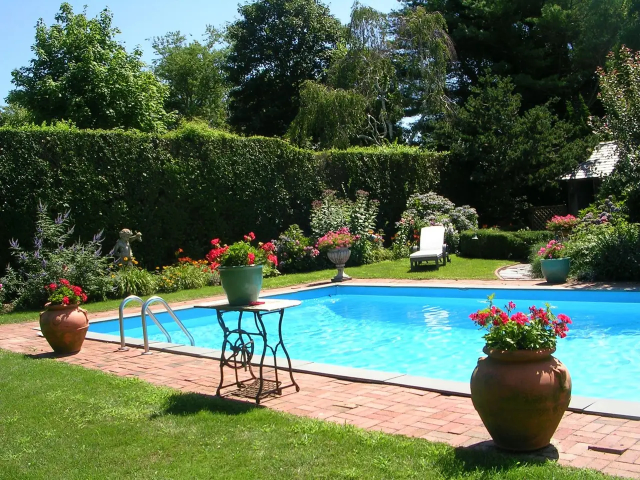 RP230499: This very private traditional home sits on a semi-circular lot, south of the highway looking out onto Mecox Bay with a private dock across the street. There are 4 bedrooms plus two rooms that can be converted into bedrooms. There are 4 full bathrooms, Jacuzzi, steam shower, a library, two living rooms, a sunroom, a large modern kitchen with Sub-Zero, Thermador, chambers, etc. and a full dining room to seat 12 people. Property has a heated pool, pool house with bathroom and outdoor shower, gazebo, pergola, koi fish pond, an audio system that extends throughout the property and modern WiFi. House is fully equipped and ready for a great summer with bikes and games and much more. The gardens are a labor of love and have been on garden tours.