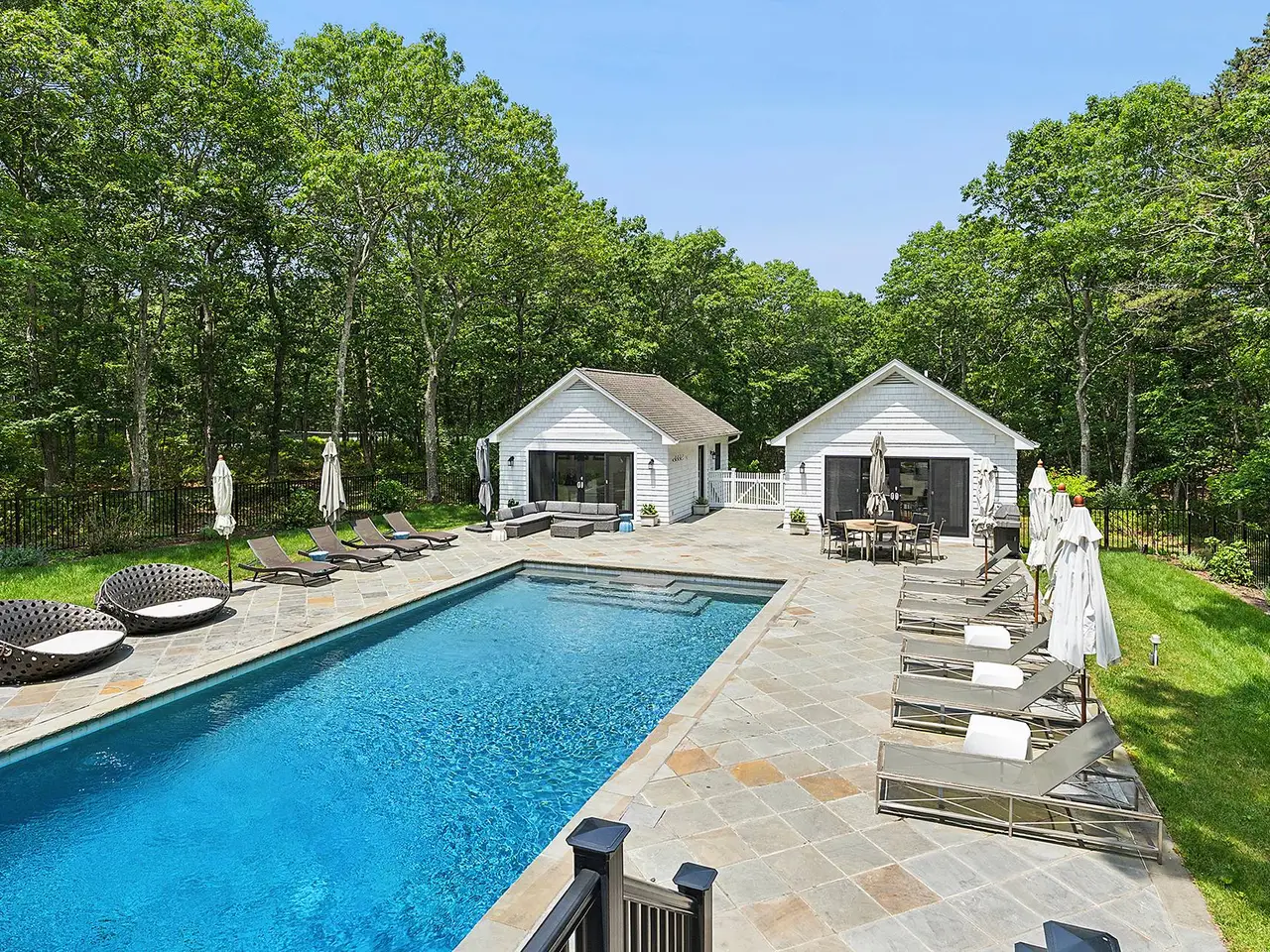 Down a long driveway, this wonderfully-appointed compound situated on 2.5+/- acres offers exceptional privacy and seclusion in Water Mill. Consisting of a beautiful main house, separate guest cottage and a separate pool house, this newly-built traditional offers seven bedrooms and eight and a half baths. The main house has a gorgeous, oversized gourmet kitchen with stainless steel appliances with an open floor plan to the spacious living room with fireplace. The dining area also offers an open floor plan for easy living with several French doors leading to the deck, which overlooks the pool area. Additionally, the main floor features a den with fireplace, powder room and a full bath with access to the outdoors. The second floor features two master suites, one with a fireplace, access to the outside and a beautiful master bathroom, one with a floating tub and a six foot shower with two shower heads. The other generously-sized master suite also offers access to the outside, plus two additional en suite bedrooms and a laundry room. The 2600 square foot finished lower level with ten foot ceilings has a large recreation room with kitchenette, game/playroom, gym, a bedroom, full bath and a laundry room. The separate 600 square foot guest cottage offers two additional bedrooms and full bath and a 600 square foot pool house, living room with flat screen TV and a kitchen with full bath. The private and quiet backyard with extensive blue stone patio surrounds a heated gunite pool with plenty of space for entertaining. An oversized three car garage and an elevator shaft, all ready for an elevator installation to run the three floors, complete this lovely Hamptons home. Nestled between Water Mill and Southampton, just a short distance to ocean beaches, and moments away from top-tier Hamptons boutiques and restaurants, you are afforded convenience as well as privacy.