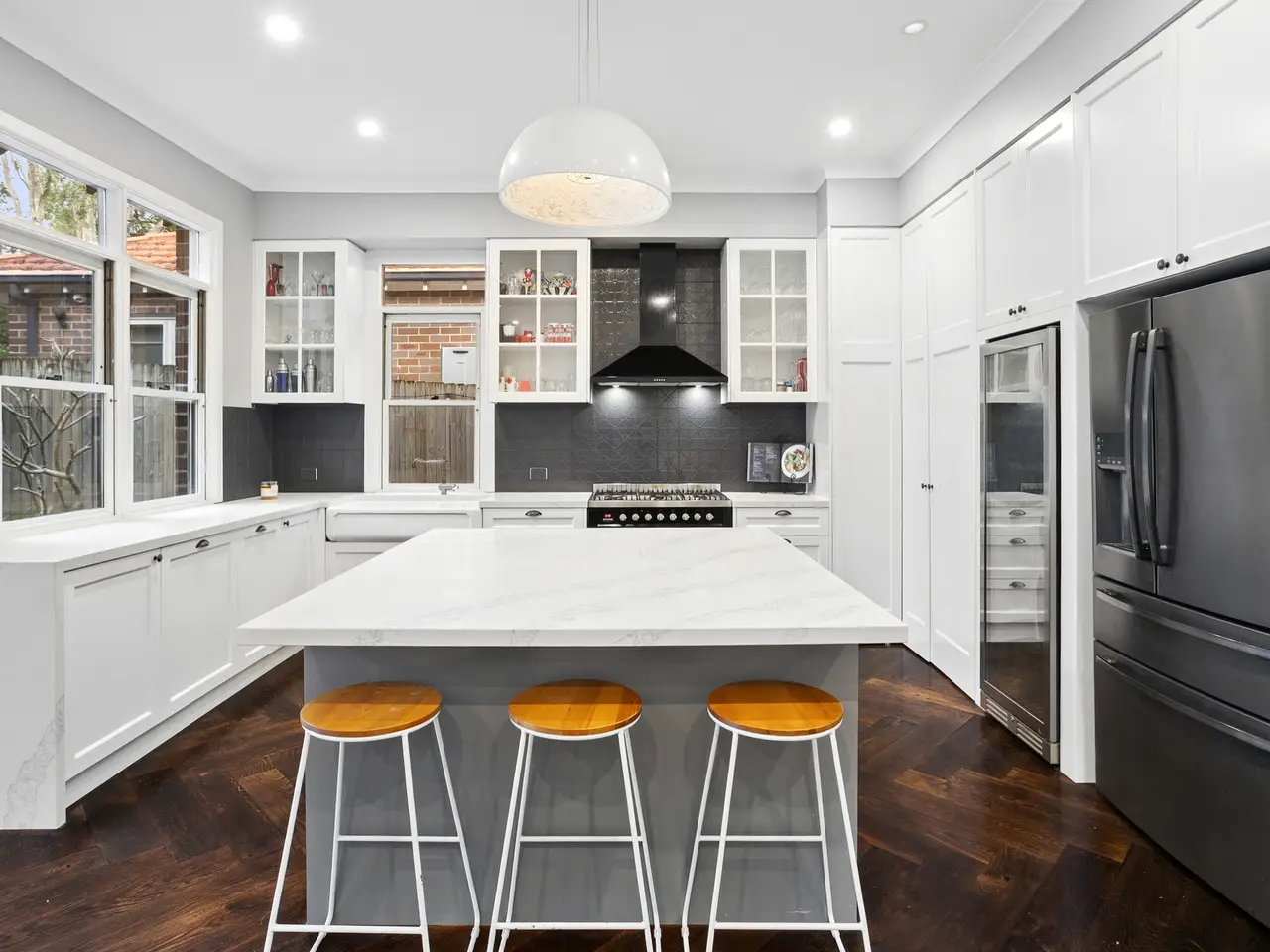 A remarkably rare offering in one of Waverton's premium streets, this magnificent home presents a brilliant sanctuary for contemporary family relaxation with a rear north-west facing outdoor entertaining area. The front half of the home demonstrates sophistication with impeccable period charm and a generous array of four bedrooms, two of which offer complete versatility to suit a range of family needs. The rear extension has been thoughtfully and meticulously renovated into a stunning open-plan setting, encompassing an alluring gourmet kitchen and a spacious living area which flows seamlessly out to the idyllic rear garden, spa and lounging/entertaining deck. Positioned in one of Waverton's most prized streets, it offers complete leafy serenity while only moments away from Waverton Village and Station, North Sydney Metro and CBD. - Entirely level full-brick house on an expansive rear north-west facing block - Stylish timber floorboards, ornate archways, cornices, fireplaces & ceilings - Excellent open-plan rear with soaring glass doors, air con and outdoor flow - Sophisticated formal dining room can be closed off or flow into living area - Vast outdoor space with level lawn, in-built spa, entertaining deck & fire pit - Chef's kitchen with an ILVE gas stovetop, two Vintec fridges & vast pantries - Generous master bedroom with a walk-through wardrobe & ensuite - Superb bathrooms with elegant fixtures & timeless finishes, bathtub in main - Elegant façade & patio, laundry & guest powder room, double car port - Walk to ACU North Sydney Campus, Victoria Cross Metro & Waverton cafes Disclaimer: All information contained herewith, including but not limited to the general property description, price and the address, is provided to Belle Property by third parties. We have obtained this information from sources we believe to be reliable; however, we cannot guarantee its accuracy. The information contained herewith should not be relied upon and you should make your own enquiries and seek advice in respect of this property or any property on this website.