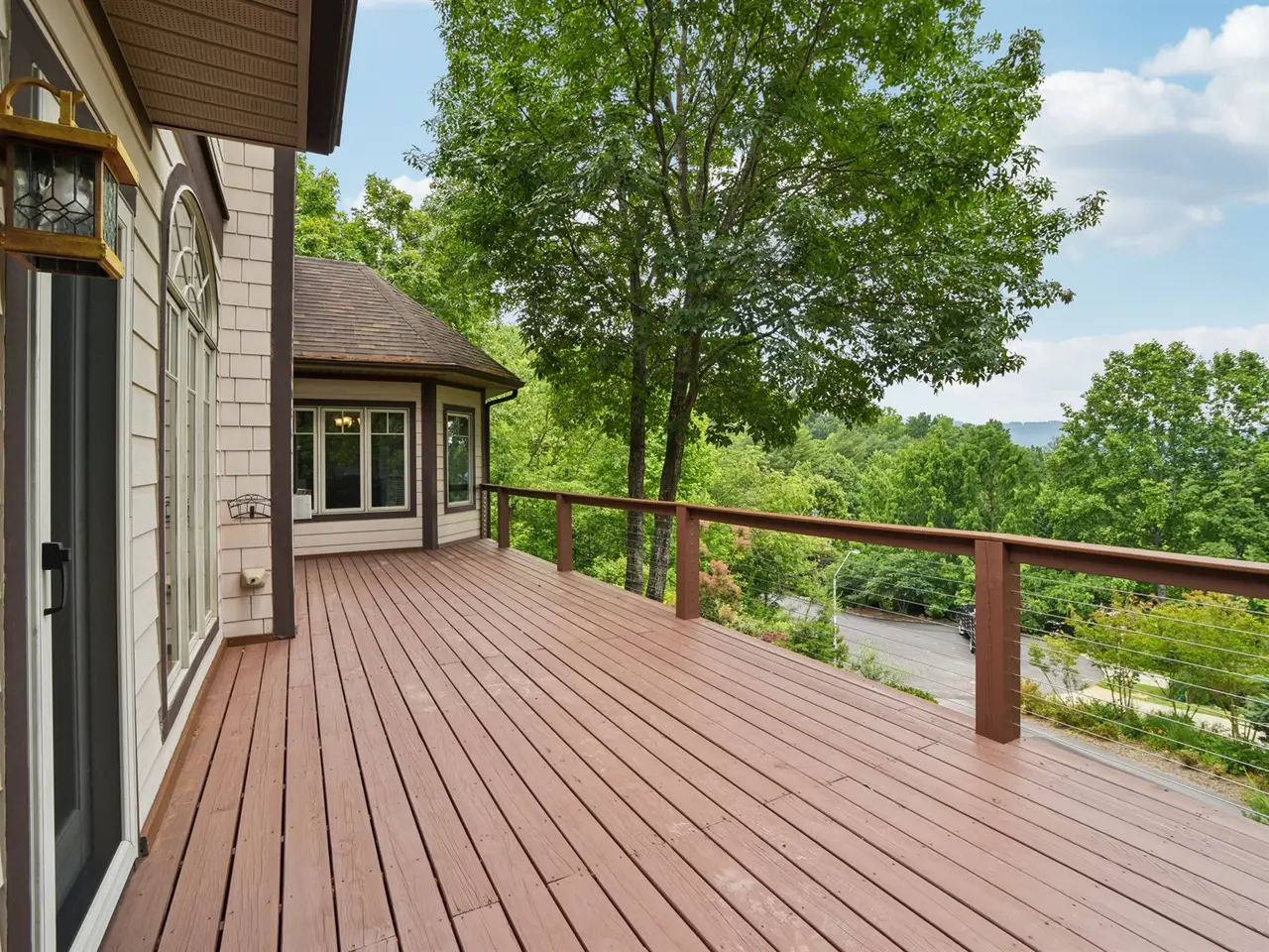 This contemporary mountain home offers a perfect blend of design and natural beauty. Boasting long-range views of the surrounding mountains and golf course, this home is a serene escape. The open floor plan invites seamless flow, with high ceilings and a spacious living area that is ideal for both relaxed family living and entertaining. A cook's kitchen with a large island is the heart of the home, while the living room and dining areas offer breathtaking views. Guests can unwind in generously sized guest rooms on both the second and terrace levels. Outdoor living spaces extend the beauty with a large new deck perfect for soaking in the mountain air and stunning vistas. The terrace level is designed for ultimate entertainment, featuring a versatile entertainment room and laundry/exercise room. Whether you're looking for a peaceful retreat or a place to entertain, this home provides the ideal backdrop for mountain living at its finest.