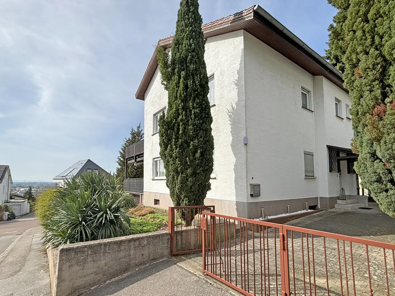 We are pleased to be able to present you this single-family home in need of renovation on a spacious corner plot of approximately 503 square meters. The property offers a living space of approximately 172 square meters and is in a sought-after location with a beautiful view of the Rhine plain. The house was built in 1955, but was partially modernized in 1993. The upper floor was renovated and new windows were installed in 2000. In 1972 the house was expanded and given a new roof. The quality of the furnishings of the house is simple, but it offers many design options for the new owner. The property is currently divided into two apartments, which is ideal for a multi-generational family or a combination of living and working. However, there is also the possibility of combining the house into a single unit again. The single-family home has a total of 6 rooms, including 4 bedrooms and 2 bathrooms. A balcony facing southwest and a terrace also facing southwest provide additional living comfort. This means you can enjoy the sun all day long. The house's other amenities include a beautiful garden that invites you to relax and linger. There is also a garage on the property and a parking space in the yard. The location of the house is very attractive as it is on a corner plot and therefore offers you more privacy and freedom of design. There is also the possibility of extending the house and thus creating even more living space. Overall, this property in need of renovation offers a lot of potential for individual design and renovation according to your own ideas. With its size and location, this house is ideal for families who would like to live spaciously and individually.