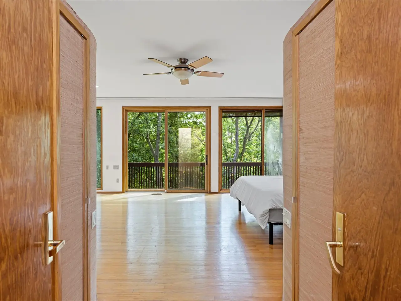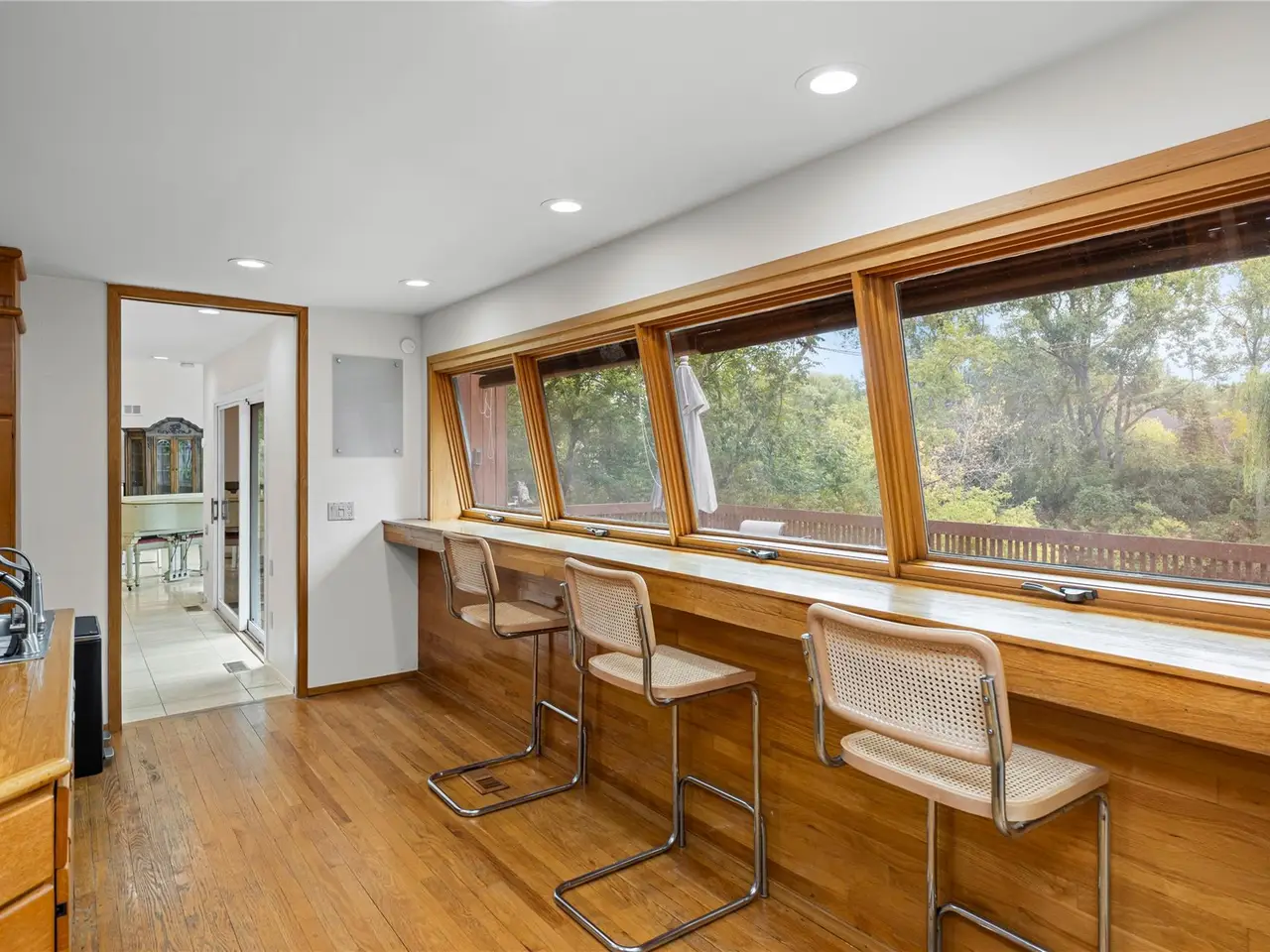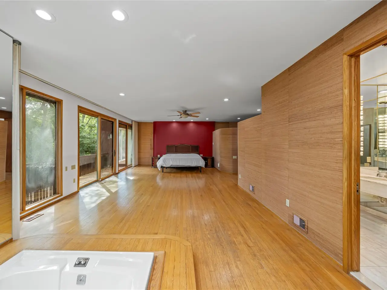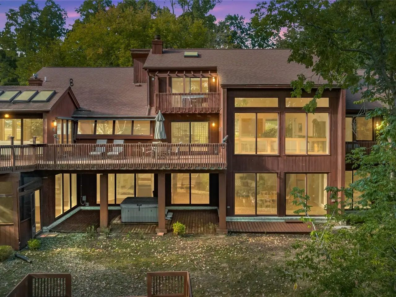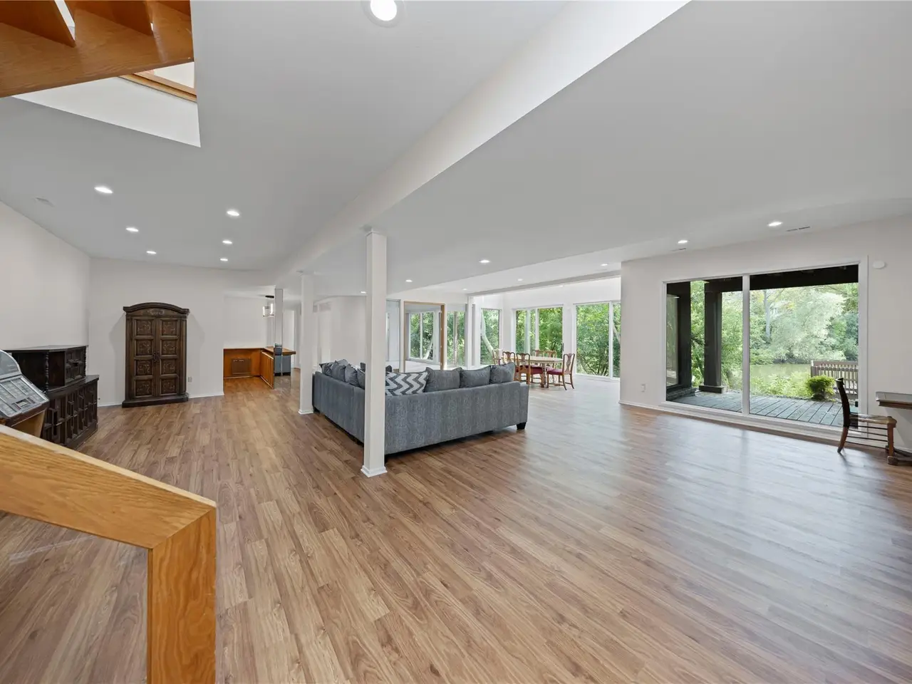 Welcome to this exquisite ranch estate nestled in the heart of West Bloomfield, meticulously designed and crafted by renowned architect David Lubin and being offered by its original owners. This stunning residence seamlessly blends sophisticated architectural elements with luxurious water-front living. Step inside to soaring ceilings in the expansive great room, adorned with floor-to-ceiling windows that showcase breathtaking water vistas. The gas fireplace and elegant travertine flooring create a warm, inviting ambiance perfect for entertaining or relaxing. The gourmet kitchen is a chef’s dream, featuring high-end appliances, abundant cabinet and counter space, a generous walk-in pantry, and an oversized nook/ living room overlooking the tranquil water—ideal for casual dining or a morning coffee. A striking spiral staircase ascends to a versatile loft area, complete with its own gas fireplace, balcony overlooking the water, and panoramic views of the entire first floor. The primary suite offers a private retreat with natural hardwood floors, soaring ceilings, and a private balcony overlooking the water. His and her walk-in closets lead to a luxurious private ensuite. The second main-level bedroom boasts a large walk-in closet, a private ensuite, and versatile space suitable for an office or lounge area. The finished walk-out lower level adds approximately 3,400 square feet of versatile living space, featuring two additional bedrooms, a full bathroom, and a half bath. A spacious entertaining area with floor-to-ceiling windows offers stunning views of the backyard and water, providing an ideal space for relaxation or entertaining. Located in the vibrant West Bloomfield community, this exceptional home is served by the award-winning Bloomfield Hills Schools. Experience luxurious waterfront living in this architecturally and functionally stunning estate.