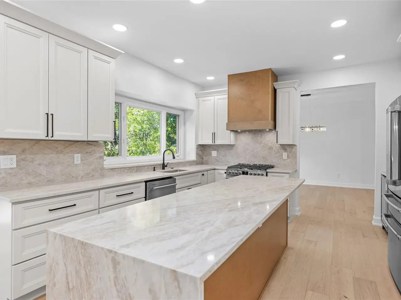 Stunning Fully Renovated Home in West Bloomfield – Walled Lake Schools | Private Wooded Lot with Walkout Basement Welcome to this beautifully reimagined home in the heart of West Bloomfield, offering the perfect blend of luxury, privacy, and convenience. Completely updated inside and out—this property feels like NEW CONSTRUCTION but is nestled in an established neighborhood on a private lot, offering unmatched serenity and beautiful wooded views. Live minutes from the city while enjoying the peaceful feeling of being “up north” on this private, tree-lined lot. Inside, no detail has been overlooked. The first floor features a welcoming library/office space, gorgeous red oak hardwood floors, a spacious living and dining room, and a stunning chef’s kitchen. You’ll love the quartz countertops, waterfall island, brand-new stainless steel appliances, and large walk-in pantry. The adjacent family room boasts a beam ceiling and is surrounded by three new sliding glass doors, filling the space with natural light and offering panoramic views of the secluded backyard and brand-new wrap-around Trex deck. A huge stylish laundry/mudroom off the garage with buit in cabinets and quartz countertop and a modern half bath complete the first floor. Upstairs, the expansive primary suite features a luxurious walk-in closet with custom built-ins and a spa-like bathroom with dual rainforest shower heads, bench seating, and high-end finishes. Three additional generously sized bedrooms and a full bathroom offer plenty of space for family or guests. The fully finished walkout lower level is a showstopper—complete with a full bedroom, full bathroom, fireplace, bar area, flex room, and a large open living area—ideal for entertaining, guests, or multi-generational living. Outside you will notice the brand-new driveway, sidewalk, and front porch, along with professionally designed new landscaping that gives the home a fresh, welcoming presence. But that's not all; new gutters, most of the brand-new energy-efficient windows, all-new light