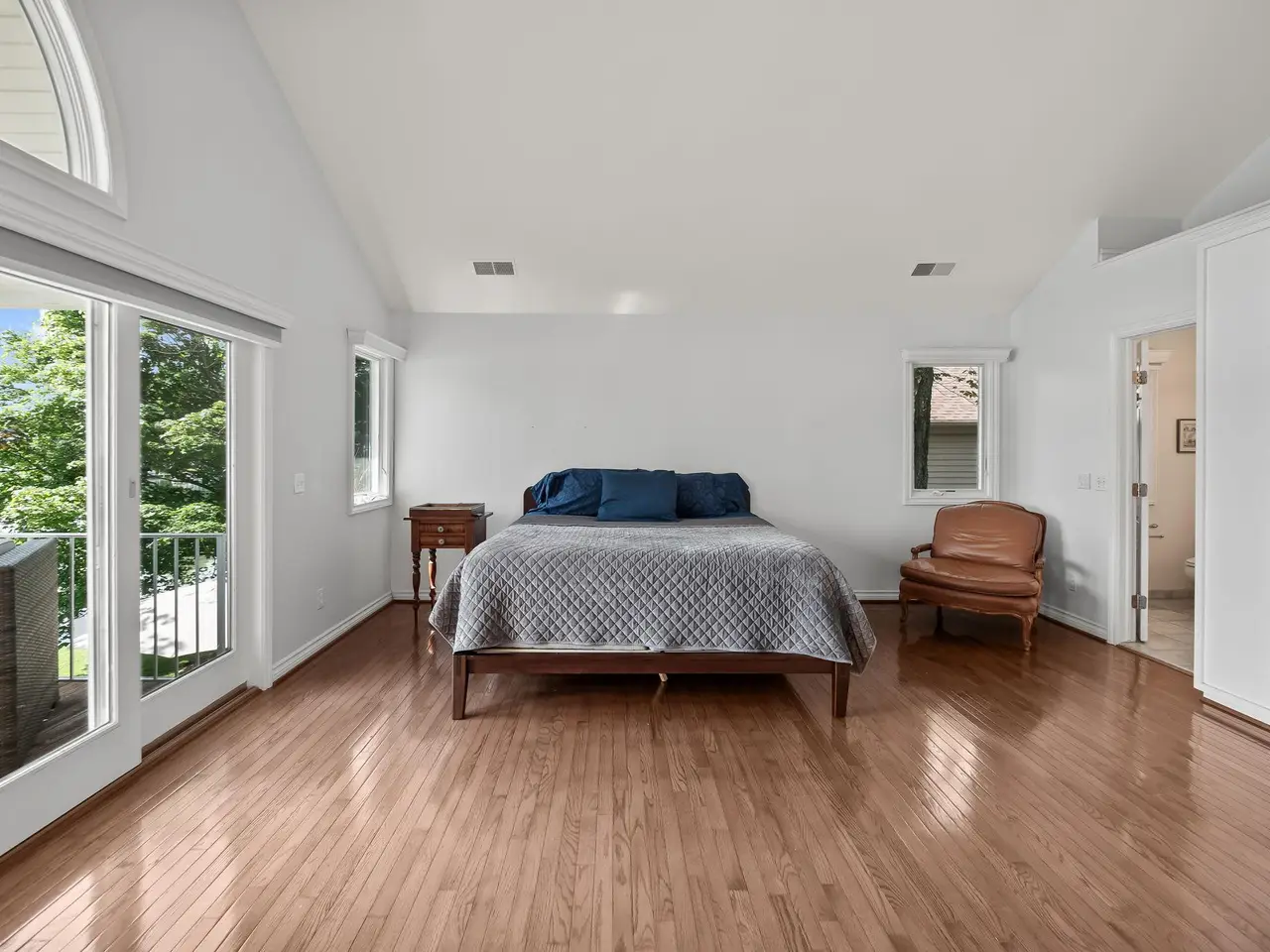 En-suite bedroom with private balcony overlooking the lake