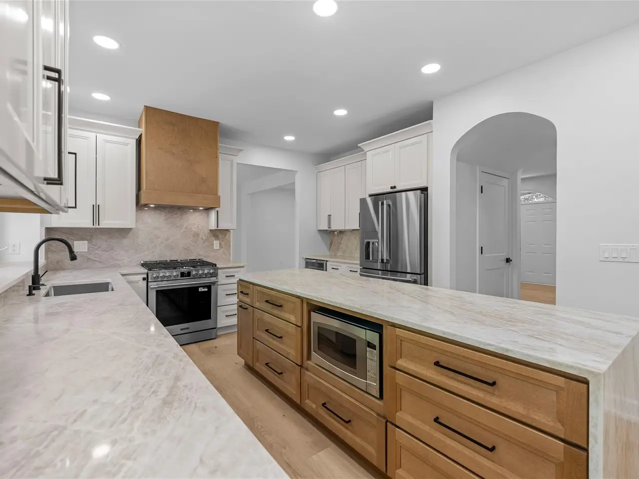 Stunning Fully Renovated Home in West Bloomfield – Walled Lake Schools | Private Wooded Lot with Walkout Basement Welcome to this beautifully reimagined home in the heart of West Bloomfield, offering the perfect blend of luxury, privacy, and convenience. Completely updated inside and out—this property feels like NEW CONSTRUCTION but is nestled in an established neighborhood on a private lot, offering unmatched serenity and beautiful wooded views. Live minutes from the city while enjoying the peaceful feeling of being “up north” on this private, tree-lined lot. Inside, no detail has been overlooked. The first floor features a welcoming library/office space, gorgeous red oak hardwood floors, a spacious living and dining room, and a stunning chef’s kitchen. You’ll love the quartz countertops, waterfall island, brand-new stainless steel appliances, and large walk-in pantry. The adjacent family room boasts a beam ceiling and is surrounded by three new sliding glass doors, filling the space with natural light and offering panoramic views of the secluded backyard and brand-new wrap-around Trex deck. A huge stylish laundry/mudroom off the garage with buit in cabinets and quartz countertop and a modern half bath complete the first floor. Upstairs, the expansive primary suite features a luxurious walk-in closet with custom built-ins and a spa-like bathroom with dual rainforest shower heads, bench seating, and high-end finishes. Three additional generously sized bedrooms and a full bathroom offer plenty of space for family or guests. The fully finished walkout lower level is a showstopper—complete with a full bedroom, full bathroom, fireplace, bar area, flex room, and a large open living area—ideal for entertaining, guests, or multi-generational living. Outside you will notice the brand-new driveway, sidewalk, and front porch, along with professionally designed new landscaping that gives the home a fresh, welcoming presence. But that's not all; new gutters, most of the brand-new energy-efficient windows, all-new light
