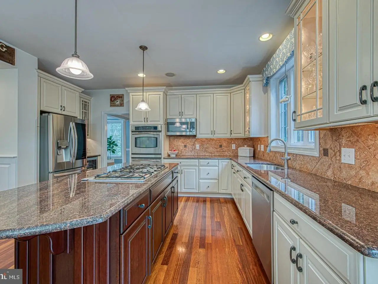 Welcome to 1565 Tattersall Way. This custom-built Hellings home offers just under 5,000 square feet of living space, overflowing with custom detail and modern comforts you will love. Highlights include Brazilian cherry hardwood floors, a gourmet kitchen, two-story great room, dual staircases, an entertainer's basement, and a one-of-a kind setting. Situated on a peaceful .57 acres on a cul-de-sac, the private backyard also offers sweeping views of the 6th hole of Broad Run Golf Course and the hills of Chester County. Step inside to a bright, two-story foyer with turned staircase, hardwood floors, and intricate wood detailing. Flow into the open living room & dining room combination with beautiful natural light and plenty of space to gather. On the other side of the foyer, French doors lead to the professional office/den (or 5th bedroom, if needed). Flow into the expansive main living space joining the gourmet kitchen, eating area, and the impressive great room with two-story ceiling, wall of windows, cozy gas fireplace, and back staircase; a peaceful view of nature from each space. The perfectly appointed kitchen features 42-inch cabinets with undermount lighting, granite countertops, stainless steel appliances including gas range and double oven, an oversized center island with seating, and a walk-in pantry. From the main living space, step outside to the composite deck and large patio with nature all around you. Enjoy grilling, dining, relaxing, and entertaining in this soothing space for years to come. Back inside and completing the main level is a powder room for guests and an oversized laundry room with abundant storage and counter space, as well as a laundry sink. Upstairs, you will find 4 bedrooms, each with a walk-in closet, and 2 full baths including the Primary Suite with double-door entry, tray ceiling, sitting area and large en-suite bath with double vanity, glass shower, and soaking tub. From the primary, step down into a private bonus room, which could serve as a relaxation retreat, dressing room, craft room, additional office, or whatever your needs require. The lower level of this home is a dream! Entertain with the best of them in this professionally finished and ready-made entertaining space featuring recessed lighting, custom built entertainment center, full custom bar with brass footrail, and several nooks for various games and entertainment. Also here, a full bathroom, a bonus room, and lots of storage. Bonus features of this home include a zoned sound system, a built-in, hard lined gas grill, invisible pet fence, and a 3-car garage. New carpet was installed throughout the home and the exterior was completely remediated in 2019 with new Hardie cement board siding and gutters. Surrounded by a vivid and lush landscape including Limelight Hydrangea and Crepe Myrtle trees, you will fall in love with the breezy coastal feel of this home and the gorgeous setting. Tucked within the community of Tattersall, yet close to everything this area has to offer and within Downingtown West Schools.