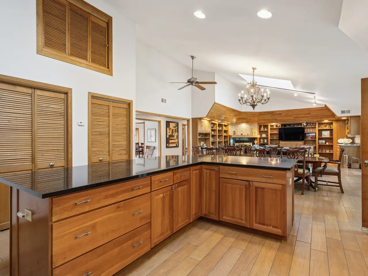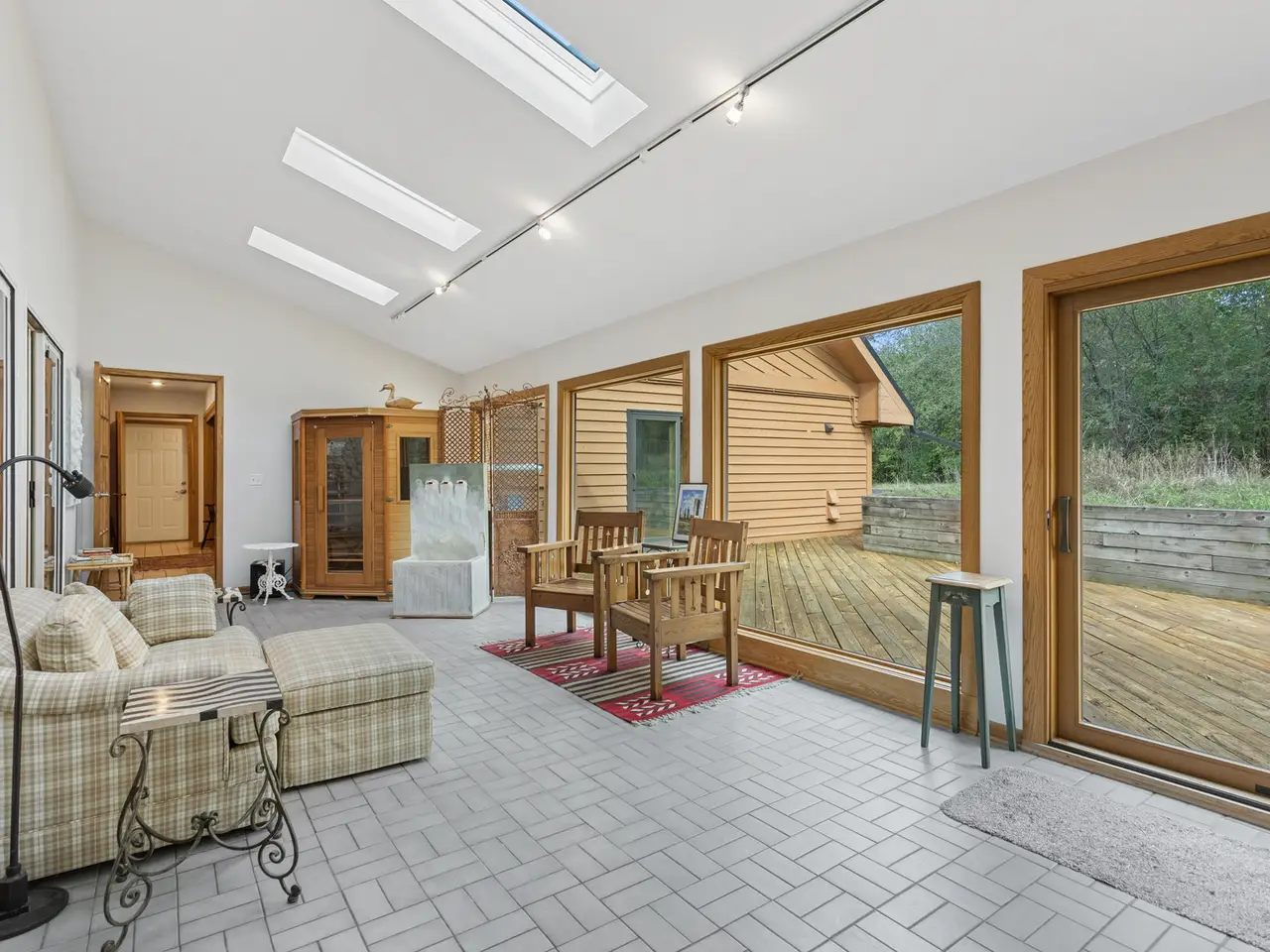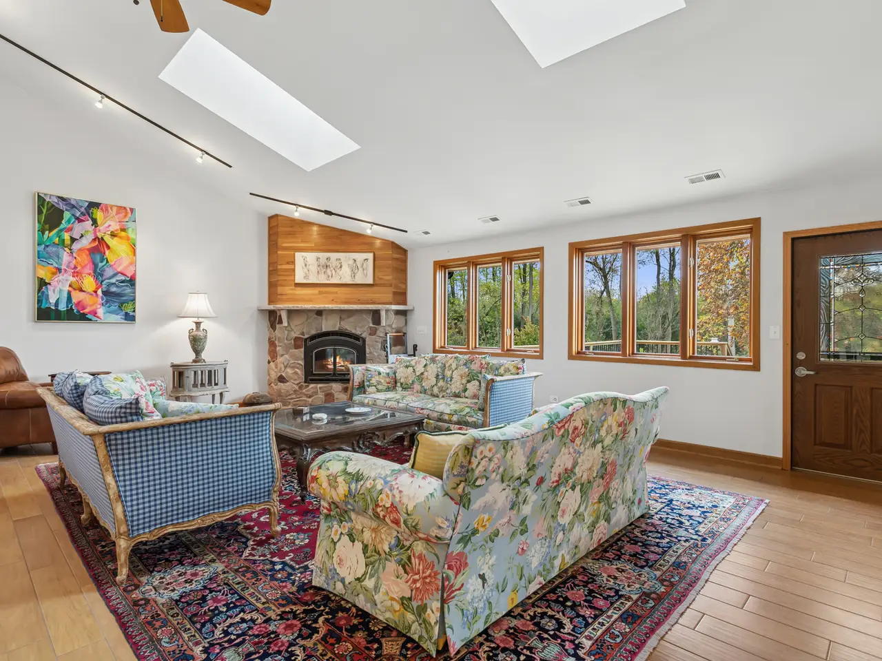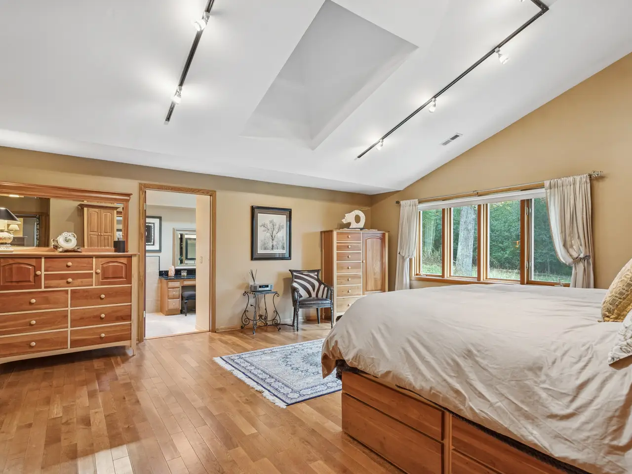 Welcome to this extraordinary one of a kind Ranch home in the peaceful sanctuary of Northwoods. Featuring 5 bedrooms, 5.2 baths and over 6000 square feet of mostly single level living space, and resting on 1.6 acres of tree-lined beauty, this property is the epitome of attention to detail at every turn. Property is set back on a long private road. Starting with the massive high-end steel roof and layer upon layer of wall insulation, this home is as rock solid and efficient as you'll ever see. Vaulted ceilings and an abundance of skylights and windows provide loads of natural light and sense of space. The thoughtful open floorplan keeps the gourmet kitchen and surrounding gathering areas as the focal point. Each room boasts gorgeous wood-look porcelain tile floors, all of which are heated, as is the entirety of the flooring in the home except for the laundry area. An adjacent sunroom overlooks one of the two sizable wood decks, east-facing to capture morning light. There are 4 oversized main level bedrooms, each with their own bath, divided over 2 wings of the home, including an awesome master ensuite w/oversized walk in closet. Also, don't look past the impressive and soaring great room with a full 2nd kitchen, fireplace, media area and deck access. The vast upstairs 5th bedroom directly up could be the MBR suite, with it's stunning spa-like bathroom. Taken together it could be a perfect in-law arrangement or even a rental possibility. Bring your car collection, there's a 4 car attached temperature controlled garage plus an oversized shed that comfortably accommodates 3 more cars and plenty extra. There are far too many features of this impressive home to list here. Meticulously maintained, impeccable quality, you cannot replicate this home anywhere close to this price. Truly a must see.