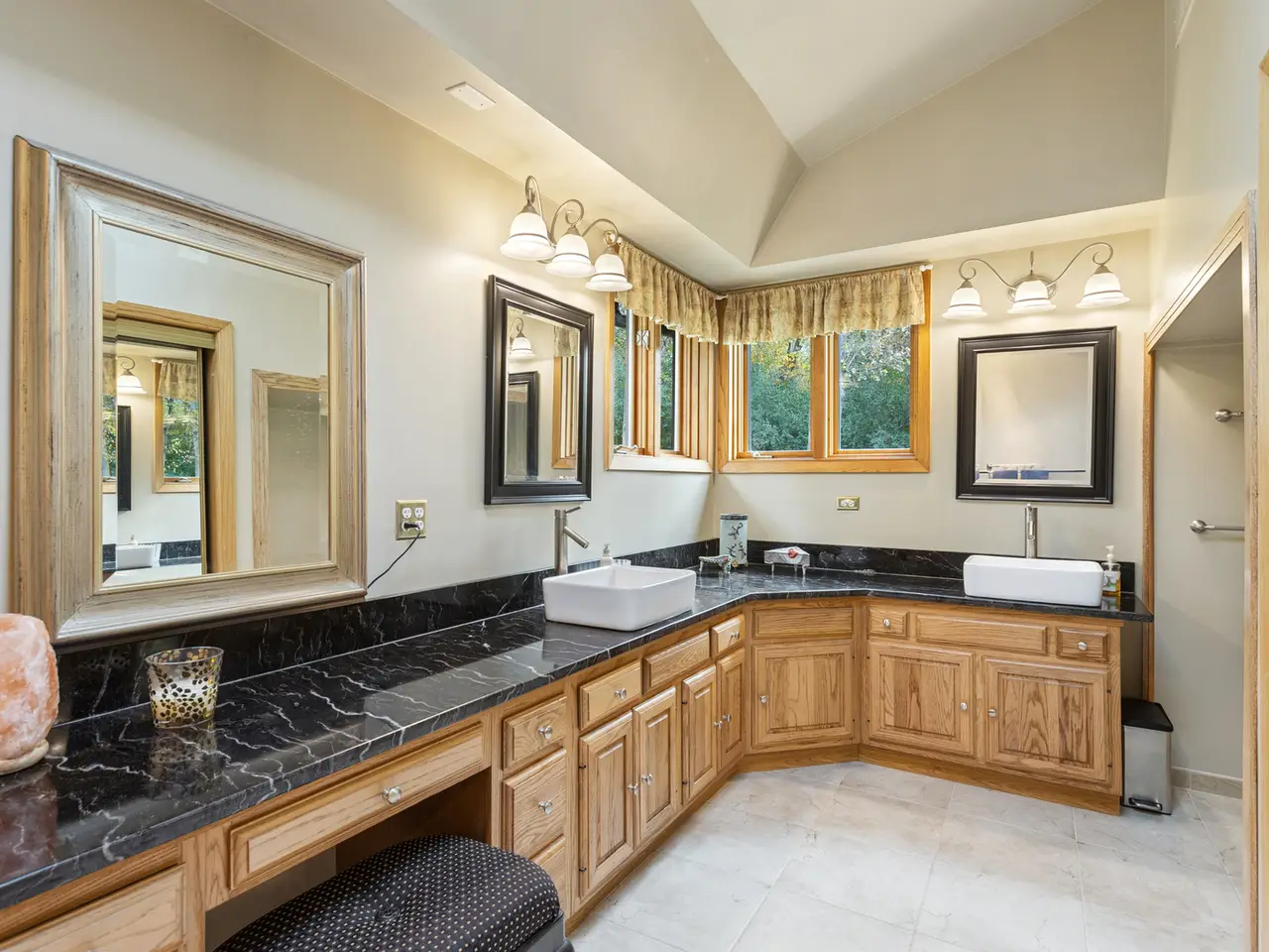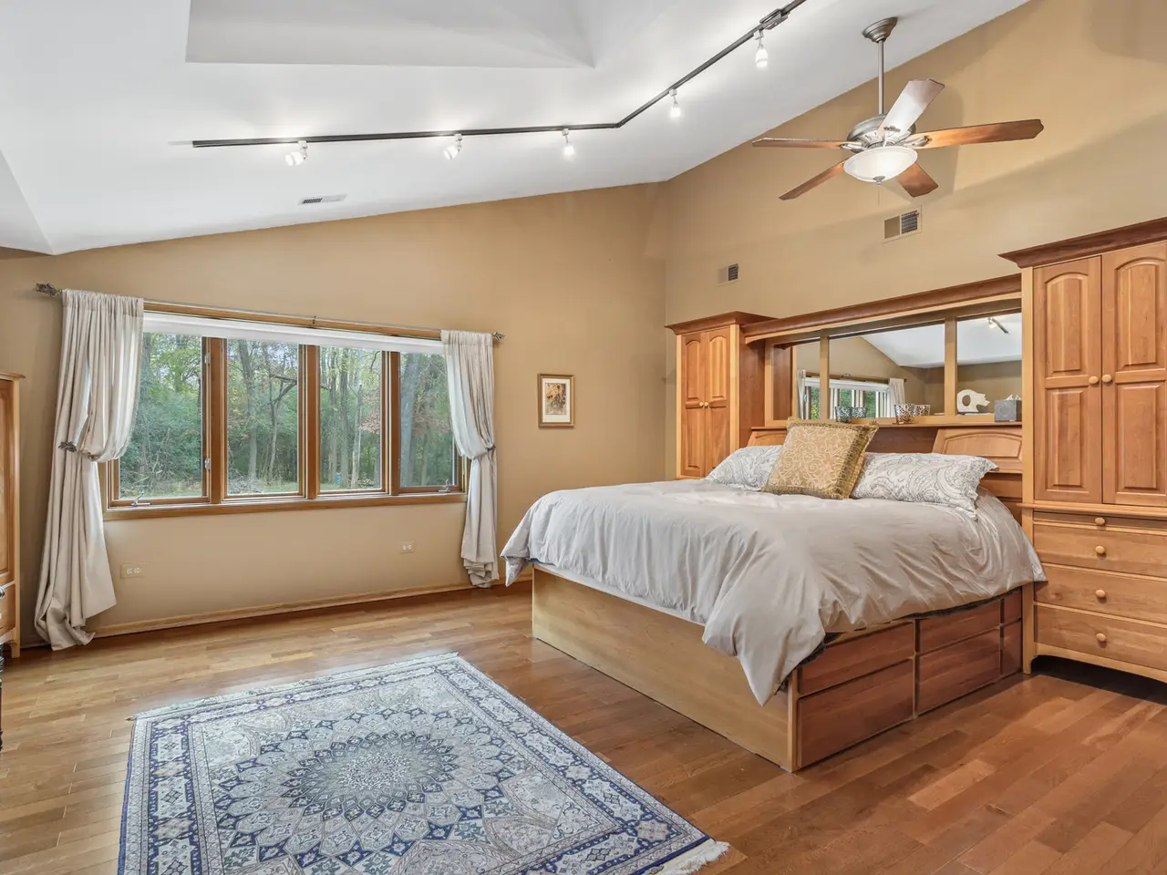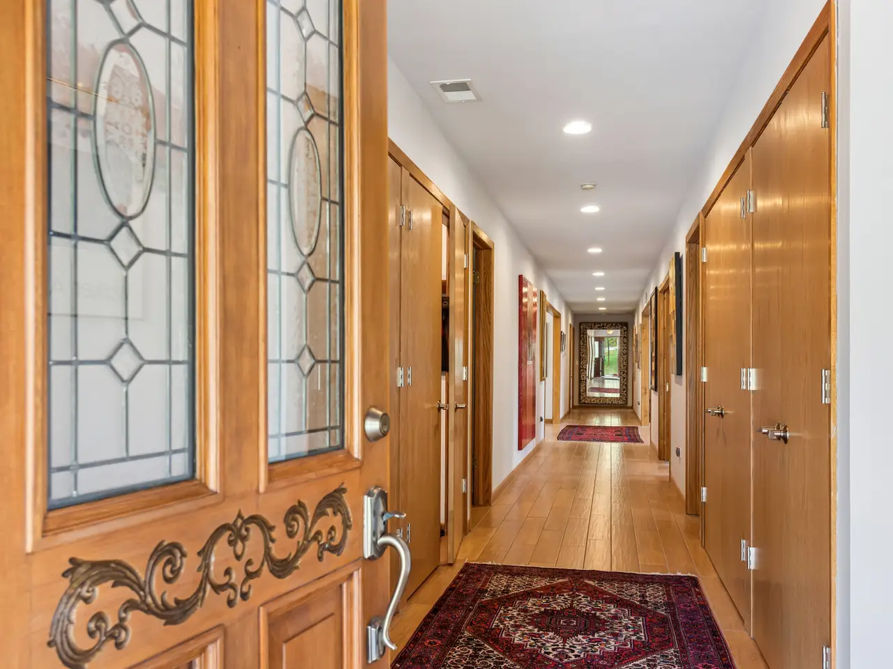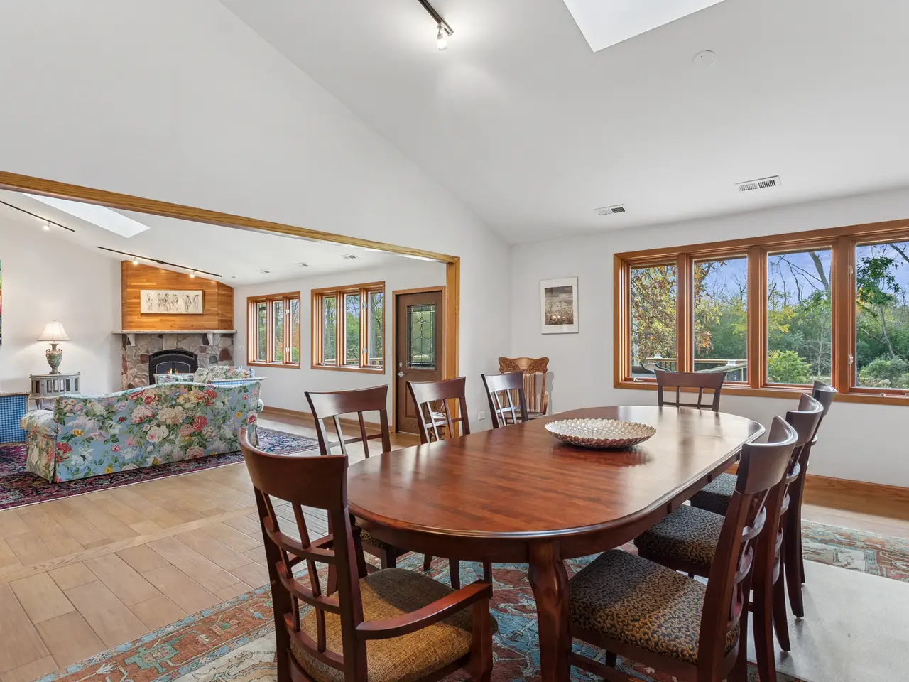 Welcome to this extraordinary one of a kind Ranch home in the peaceful sanctuary of Northwoods. Featuring 5 bedrooms, 5.2 baths and over 6000 square feet of mostly single level living space, and resting on 1.6 acres of tree-lined beauty, this property is the epitome of attention to detail at every turn. Property is set back on a long private road. Starting with the massive high-end steel roof and layer upon layer of wall insulation, this home is as rock solid and efficient as you'll ever see. Vaulted ceilings and an abundance of skylights and windows provide loads of natural light and sense of space. The thoughtful open floorplan keeps the gourmet kitchen and surrounding gathering areas as the focal point. Each room boasts gorgeous wood-look porcelain tile floors, all of which are heated, as is the entirety of the flooring in the home except for the laundry area. An adjacent sunroom overlooks one of the two sizable wood decks, east-facing to capture morning light. There are 4 oversized main level bedrooms, each with their own bath, divided over 2 wings of the home, including an awesome master ensuite w/oversized walk in closet. Also, don't look past the impressive and soaring great room with a full 2nd kitchen, fireplace, media area and deck access. The vast upstairs 5th bedroom directly up could be the MBR suite, with it's stunning spa-like bathroom. Taken together it could be a perfect in-law arrangement or even a rental possibility. Bring your car collection, there's a 4 car attached temperature controlled garage plus an oversized shed that comfortably accommodates 3 more cars and plenty extra. There are far too many features of this impressive home to list here. Meticulously maintained, impeccable quality, you cannot replicate this home anywhere close to this price. Truly a must see.