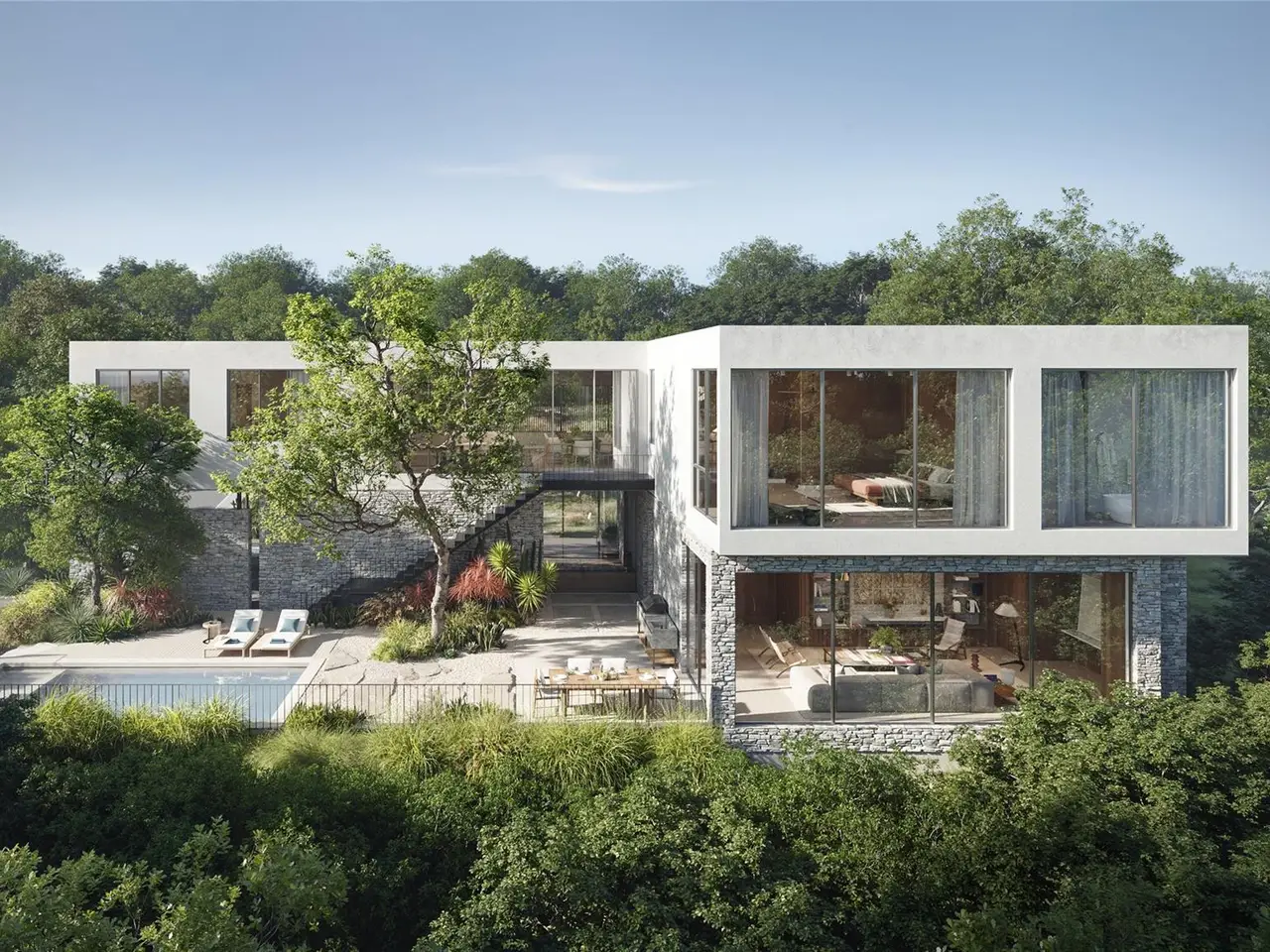 The existing multi-level layout is designed to capture light and views from every angle, while the outdoor spaces--anchored by a charming pool and layered decks framed in native greenery--create a sense of immersion within the landscape.