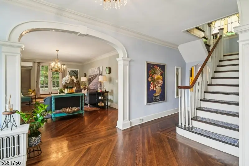 Tucked away on a serene, park-like 0.55-acre lot, this extraordinary Colonial is full of surprises. With curb appeal that's charmingly understated, the home opens up to reveal grand proportions, classic detail, and thoughtful modern updates including central air. The open foyer flows under graceful archways to an inviting sunroom/home office, formal living and dining rooms, and cozy family room. French doors lead out to a lush backyard sanctuary w/ a heated pool, hot tub, multiple grassy seating areas framed by lush landscaping - your private staycation. The eat-in kitchen blends vintage soul w/ modern ease: generous counters, cozy nooks, and space to gather. Distinct "wings" offer flexible living: 3 beds w/ a bonus room on one side w/ 2 baths, and 3 more large bedrooms w/ a den on the other and 2 baths. The main bedroom is expansive w/ an attached bath w/ double vanities and period details. The "captured bedroom" is currently being used as a closet. Upstairs, a finished attic offers an addnl. bedrooms and a den. The lower level includes a finished basement with charming period details, a prep kitchen and full bath. A well-maintained slate roof crowns this mini estate w/ 3 plots which includes a potential buildable side plot. All in a tranquil neighborhood with low taxes, close to schools, NYC transport (free jitney on street) and major highways. A true hidden gem gracious and full of character. Fireplace/Chimneys/Flues, hot tub and pool room being sold as is.