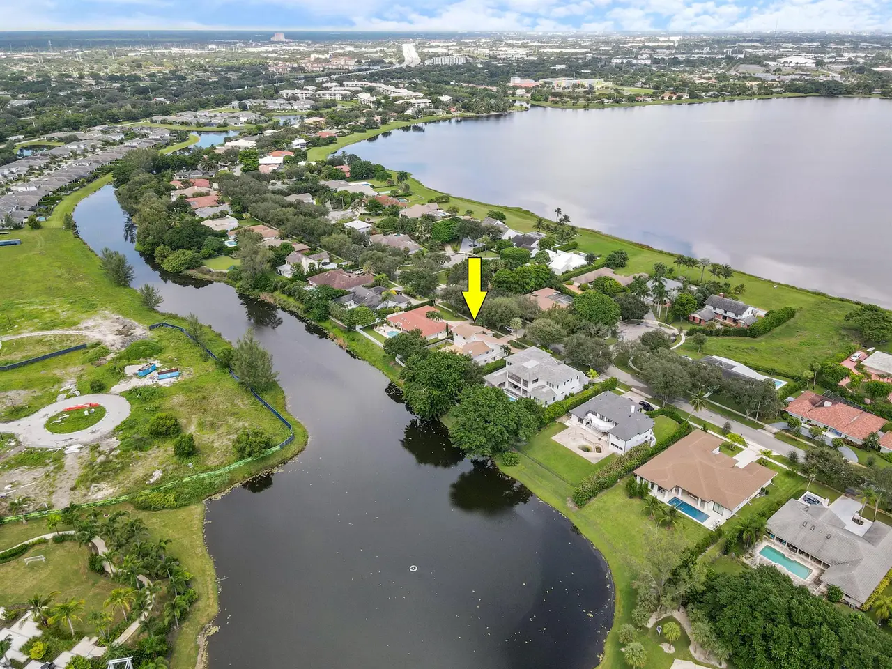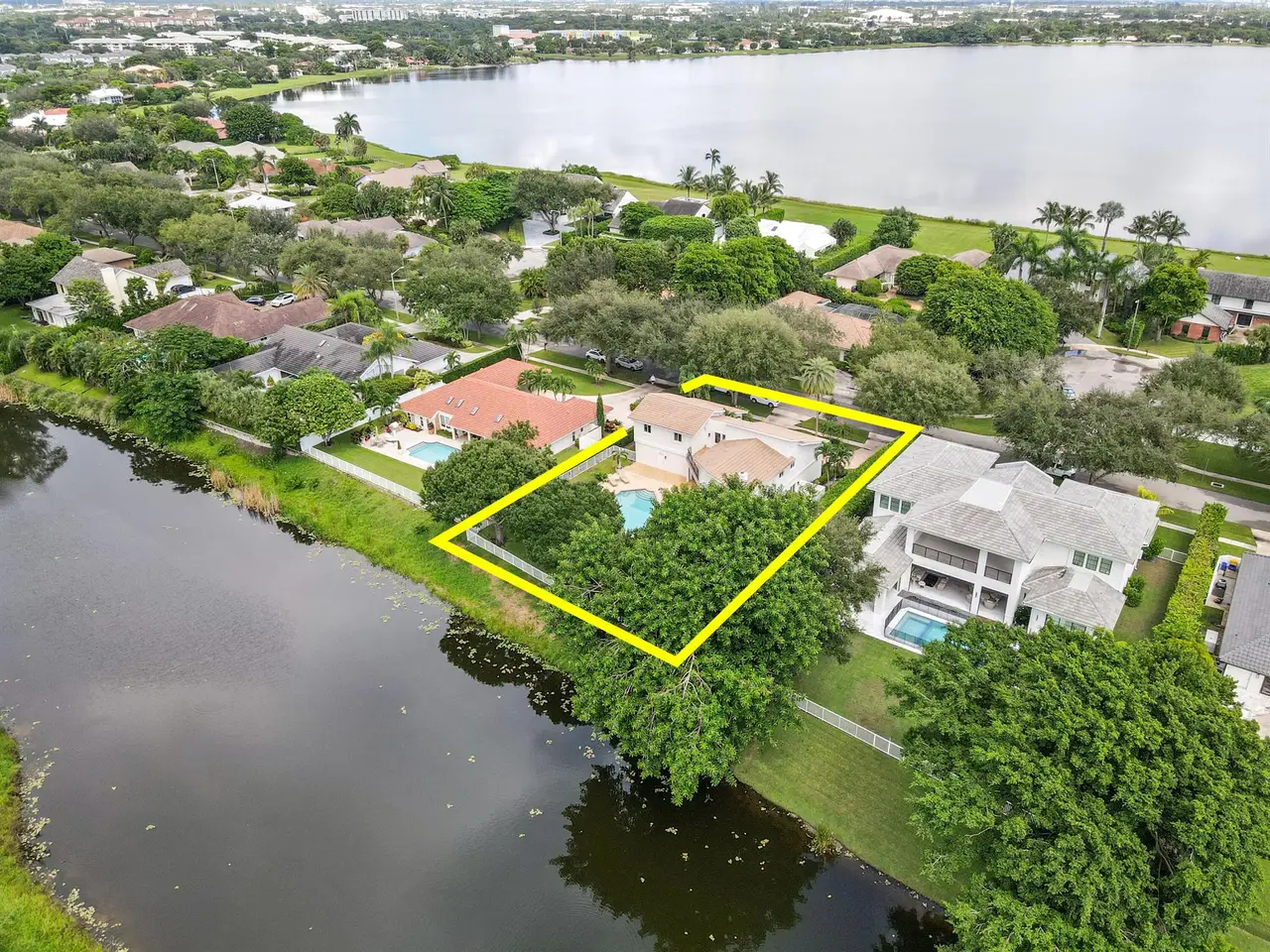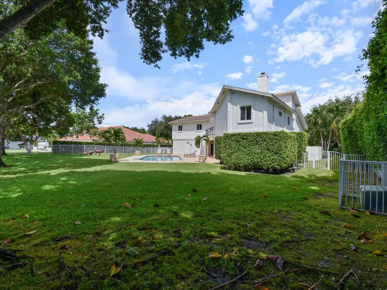 A private sanctuary on an oversized homesite, this custom residence blends timeless architecture with resort-style comfort. Beyond the manned gate, a circular paver drive leads to a light-filled 4BR/3.5BA home with 4,661 SF of gracious living--formal living and dining, a generous family room, and a wet bar--all beneath volume ceilings with a fireplace and French doors opening to the pool. Freshly painted interiors provide a crisp, move-in-ready backdrop.within 10 minutes to palm beach and PBI airport