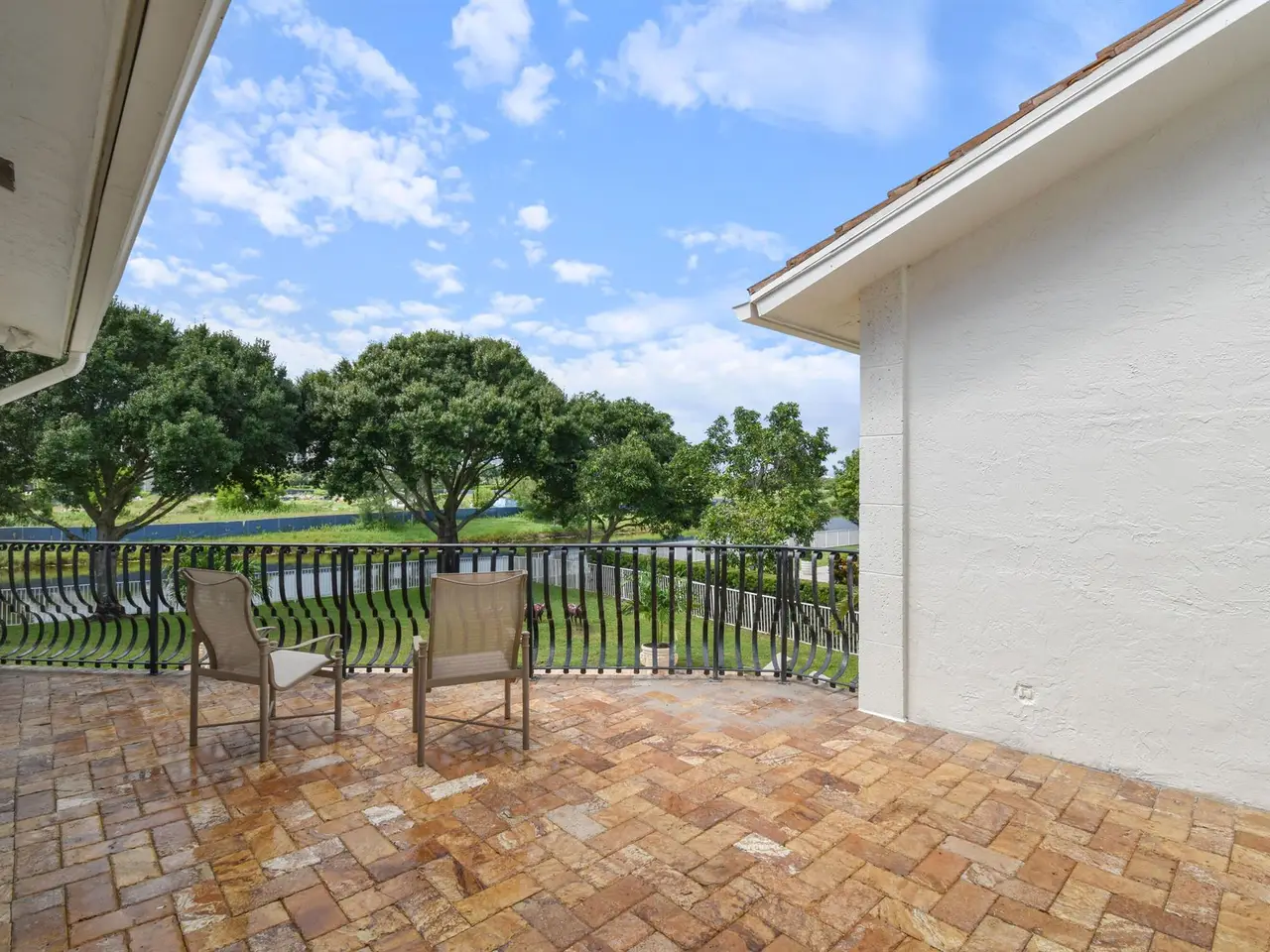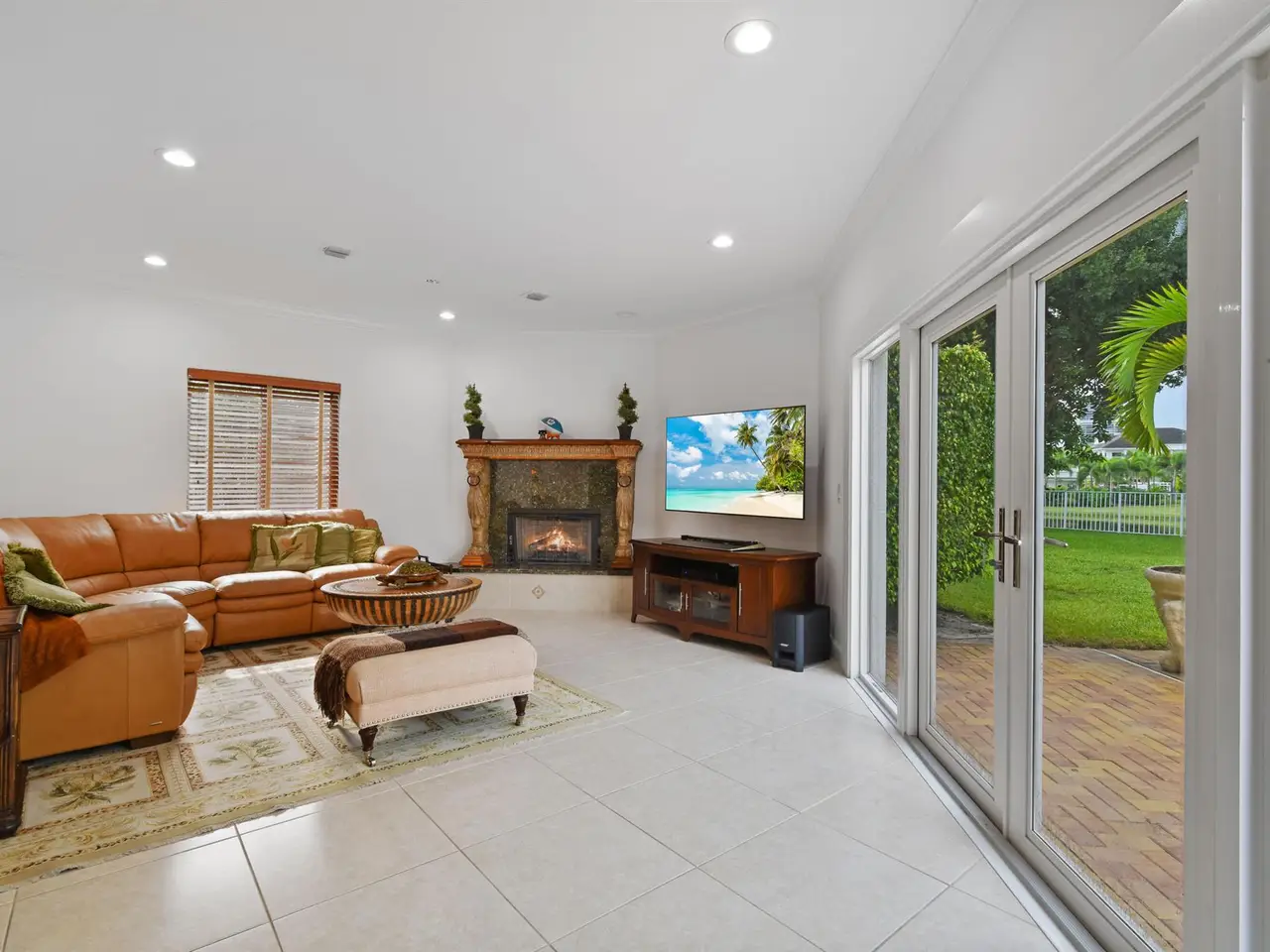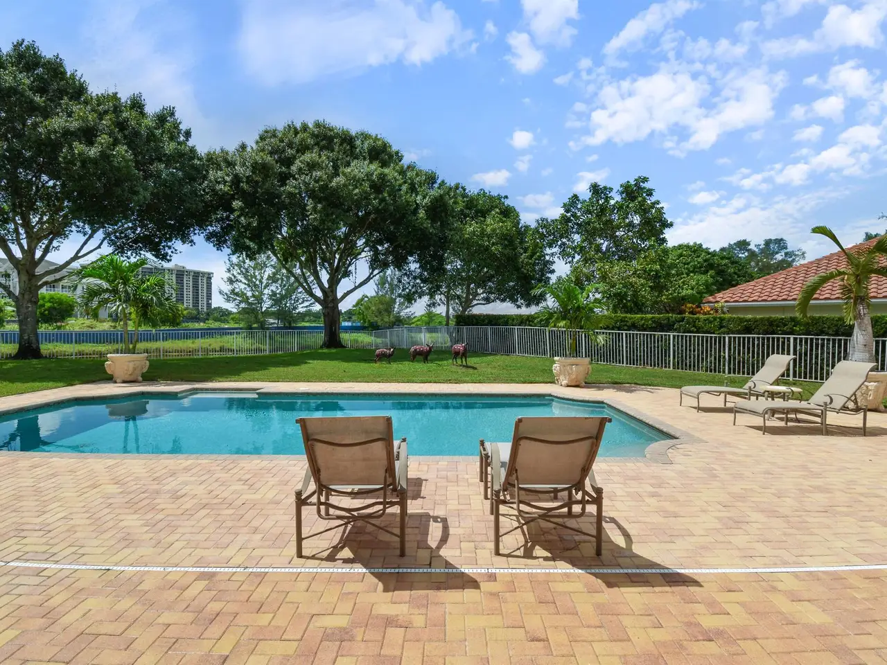 A private sanctuary on an oversized homesite, this custom residence blends timeless architecture with resort-style comfort. Beyond the manned gate, a circular paver drive leads to a light-filled 4BR/3.5BA home with 4,661 SF of gracious living--formal living and dining, a generous family room, and a wet bar--all beneath volume ceilings with a fireplace and French doors opening to the pool. Freshly painted interiors provide a crisp, move-in-ready backdrop.within 10 minutes to palm beach and PBI airport
