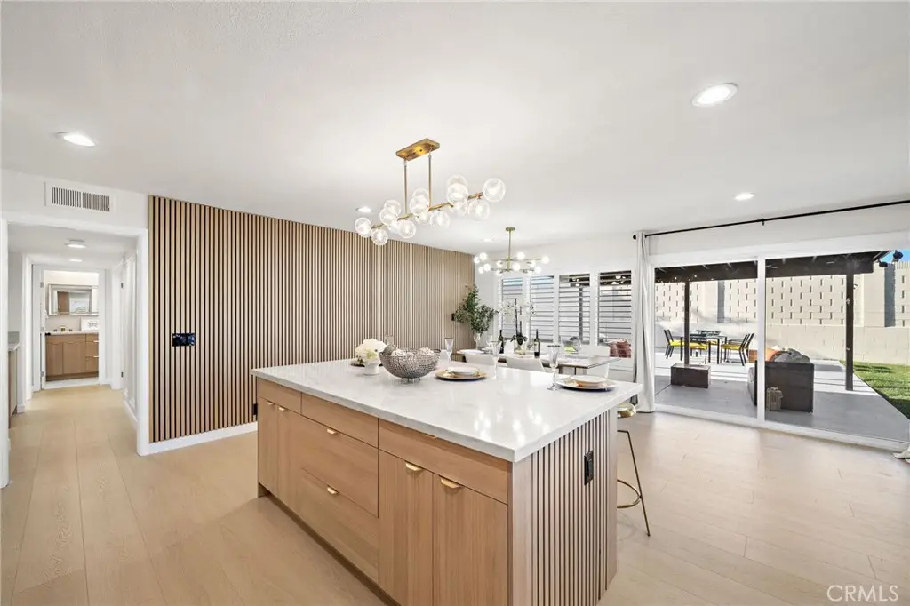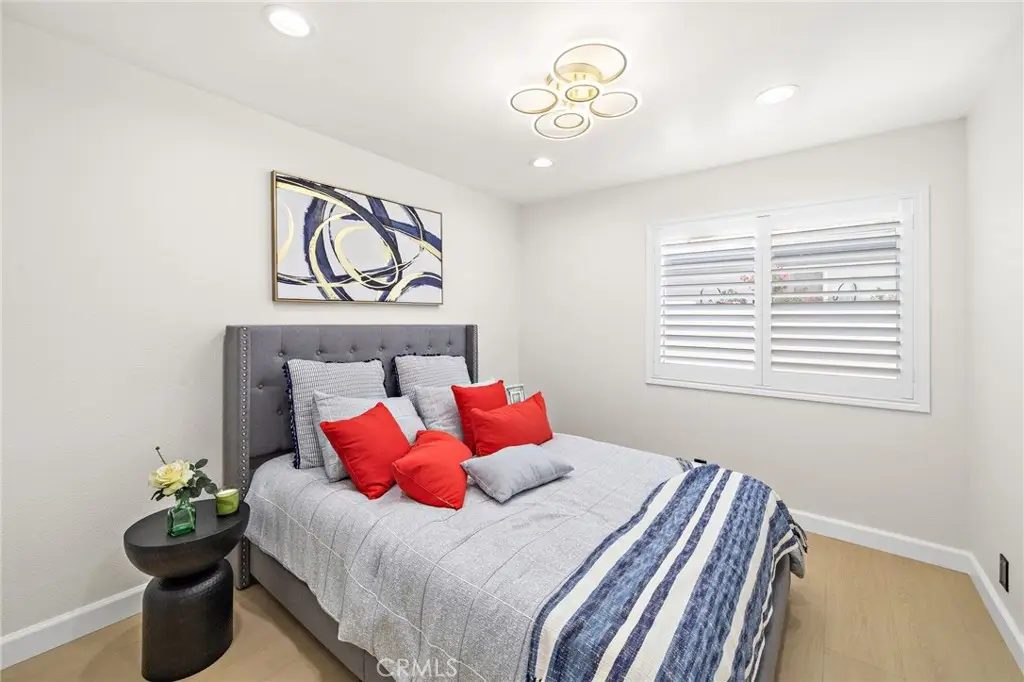 Every square inch of this stunning home has been completely reimagined with impeccable attention to detail and the finest modern luxury finishes, with the remodel just completed in July 2025! This show-stopping 4 bedroom home (including 2 primary suites--1 downstairs), plus loft/family room, and 3 beautifully remodeled baths feels like a brand-new model home and is ideally situated on an extra-large 7,590 SF corner lot. The open-concept design boasts soaring ceilings, dual pane windows, plantation shutters, recessed lighting, exquisite chandeliers, decorative geometric wall moldings, chic floating shelving, raised panel doors, and waterproof luxury wood-vinyl flooring. The chef's dream kitchen is a masterpiece with Corian counters, a large island with seating, Euro-style self-closing cabinetry, and professional-grade stainless appliances, including a 48" 6-burner NXR double oven gas range. Gorgeous curb appeal features manicured tropical landscaping and a tiled courtyard that leads to double entry doors with frosted glass. Inside, the breathtaking living room showcases an artful electric fireplace and a dramatic staircase with sleek steel railing, seamlessly flowing to the gourmet kitchen and banquet-size dining room with walls of glass overlooking the expansive backyard oasis with covered patio, park-like lawn, and high block wall fencing for privacy--perfect for entertaining or future pool/ADU. All 3 bathrooms feature textured tile surrounds, LED light mirrors, Corian vanities, clear glass barn-door enclosures, and smart heated toilets. Spacious bedrooms include frosted glass closet doors; the upstairs primary has a retreat and walk-in closet, while the downstairs primary offers dual closets. Additional highlights include direct access to the finished garage and multiple opportunities for multigenerational living or expansion on the oversized lot. Ideally located near Little Saigon Center, Bella Terra, Huntington Beach, Fountain Valley, parks, schools, and freeways, with just a short drive to the beach, this home offers the perfect blend of luxury, space, and coastal convenience.