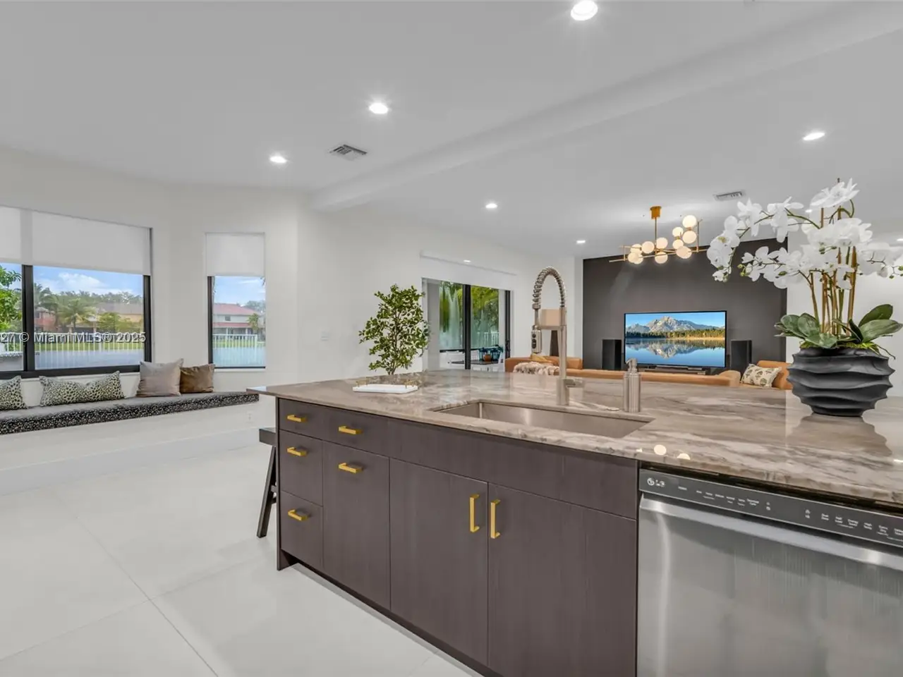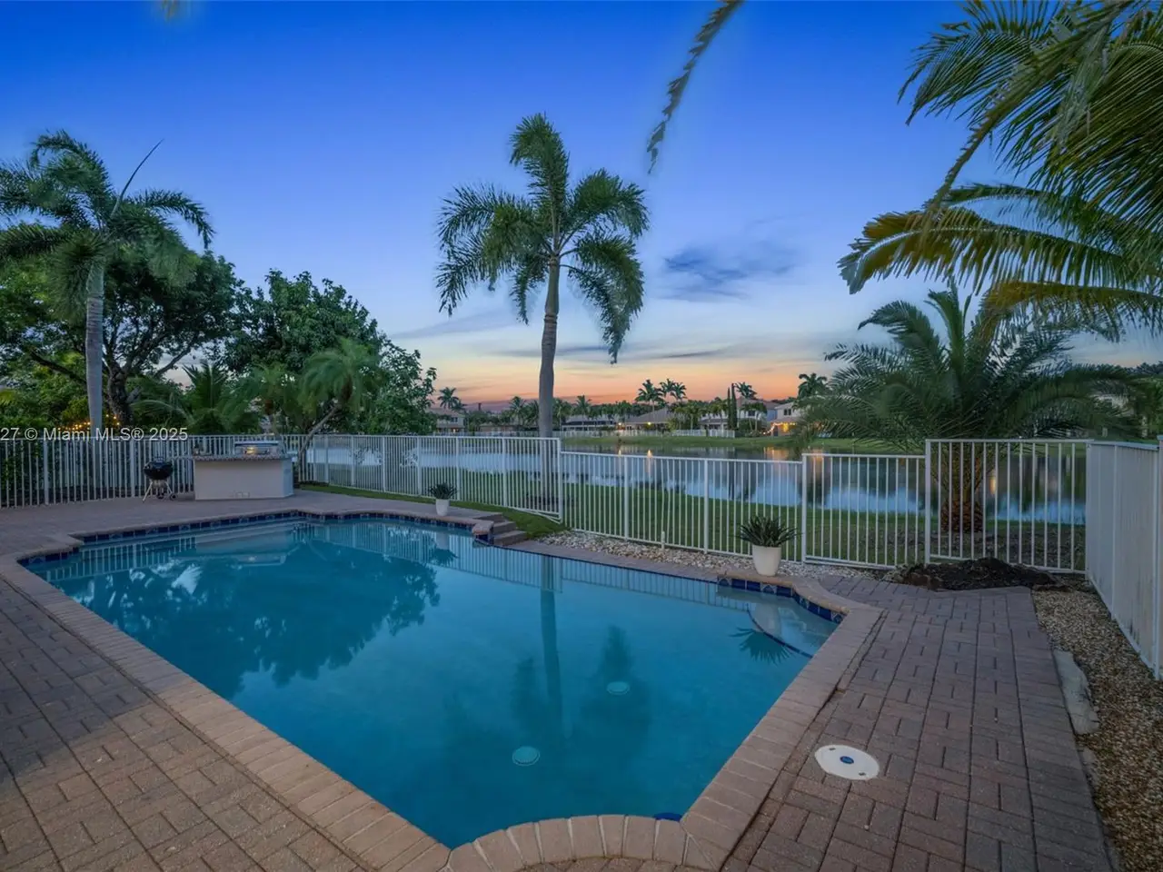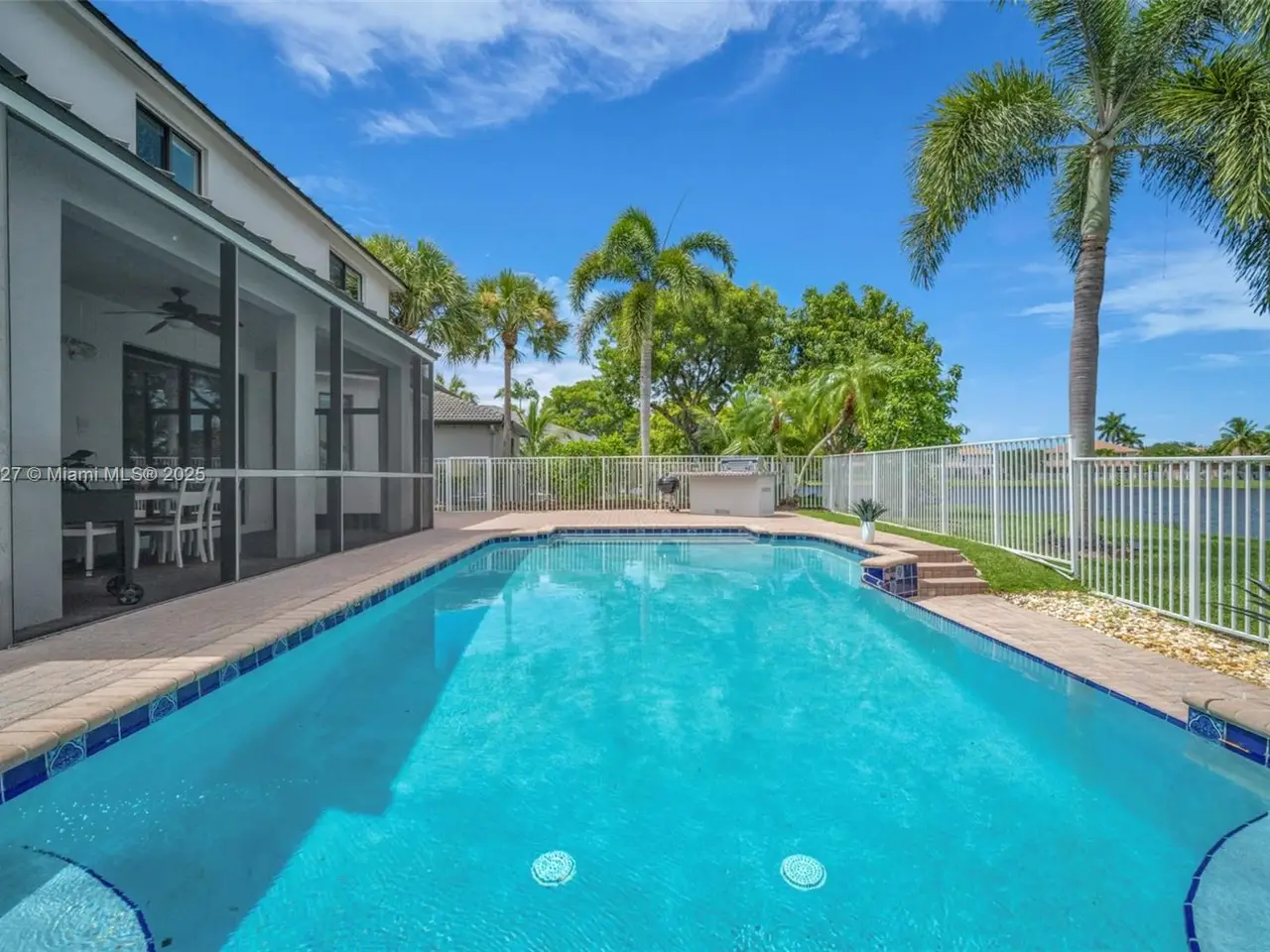 This showstopping, one-of-a-kind home is filled with upscale upgrades and eye-catching style! With 5 spacious bedrooms, a private office, and a flexible loft. all offering stunning lake views Brand-new 2024 metal roof and lush landscaping. Inside, soaring ceilings, a statement staircase, and sleek modern flooring create a grand welcome. The gourmet kitchen wows with a wine display, premium appliances, double ovens, and an oversized island. The primary suite offers a relaxing sitting area and spa-like bath with soaking tub. Enjoy the Florida lifestyle outdoors with a screened patio, summer kitchen, sparkling pool, & cabana bath. Located in the prestigious gated Isles at Weston, with a renovated clubhouse, resort-style amenities, and top-rated schools.