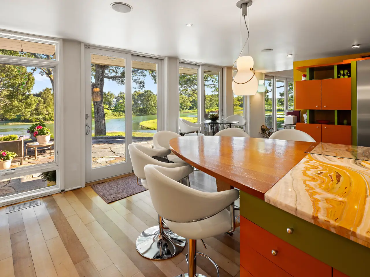 A true Westport icon, 11 Beachside Common is one of the most architecturally distinctive homes on the Connecticut coast-known to anyone who's ever strolled Burying Hill Beach. Set on 2.6 waterfront acres, the property offers sweeping southern views over Sherwood Island and Long Island Sound, with sunsets that rival the Low Country and birdlife that fills the surrounding marsh with movement and sound. With water access for kayaking and paddle boarding, it's a nature lover's paradise wrapped in high design.Originally built in 1971, the home underwent a $13M transformation under acclaimed architect James Biber of Pentagram. The goal: not to create rooms, but to dissolve them. Nearly 9,000 sq ft of open, gallery-like living space is unified by a 150-ft handmade tile path that runs the length of the main level. A soaring central room with exposed aluminum column is flanked by playful architectural elements -domes, portholes, skylight tubes, and a floating staircase.A 3-story tower, designed as the intellectual center of the home, offers 360-degree panoramic views and quiet workspace. This is a home where design, art, and imagination intersect-and where brilliant minds have found inspiration. From Academy Award winners to world-renowned scientists and adventurers, this home has drawn extraordinary lives. If genius gravitates toward whimsy, perhaps it's because whimsy makes room for wonder-and for those bold enough to see differently.