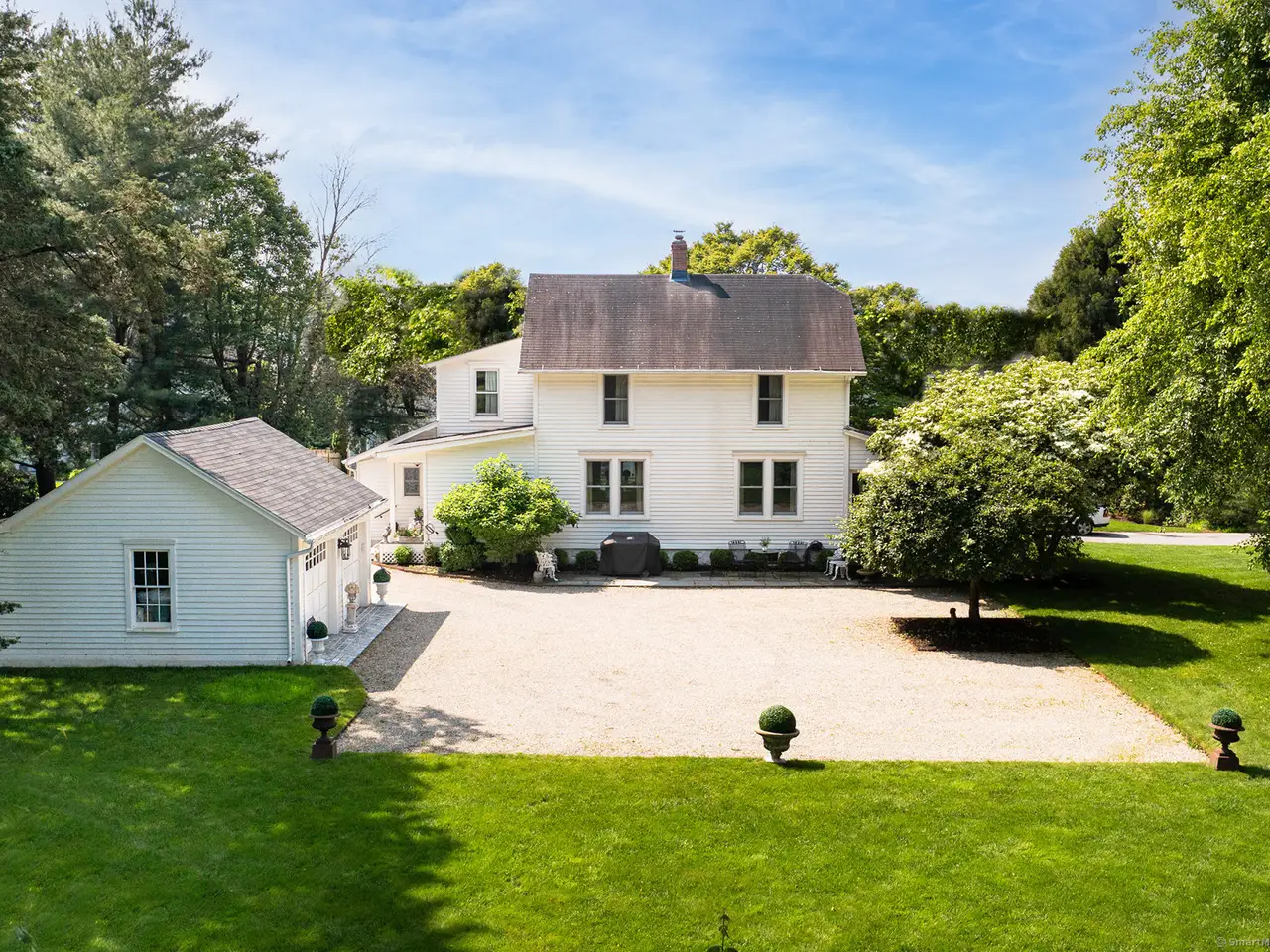 A Westport treasure, this c.1900 beauty enchants with timeless charm and a magical warmth. Once the homestead of one of Westport's largest onion farms, you may still find one growing wild on the lawn. The wrap-around screened porch is perfect for summer mornings or unwinding at sunset. Inside, sunlit living spaces are filled with original character, and the chef's kitchen offers high-end appliances, wine fridge, and a breakfast nook set in a bank of windows. Listed on Westport's historic inventory (but not registry-restricted), the home offers flexibility for expansion or renovation. Outside, enjoy a large, level double lot on a peaceful cul-de-sac-ideal for lawn games, gardening, or a pool. The detached garage does not currently have living space above, but there's ample room to expand or add a guest cottage, office, or gym. Bordered by stone walls, and just minutes from the beach, train, and town-this is a rare chance to own a piece of Westport history.