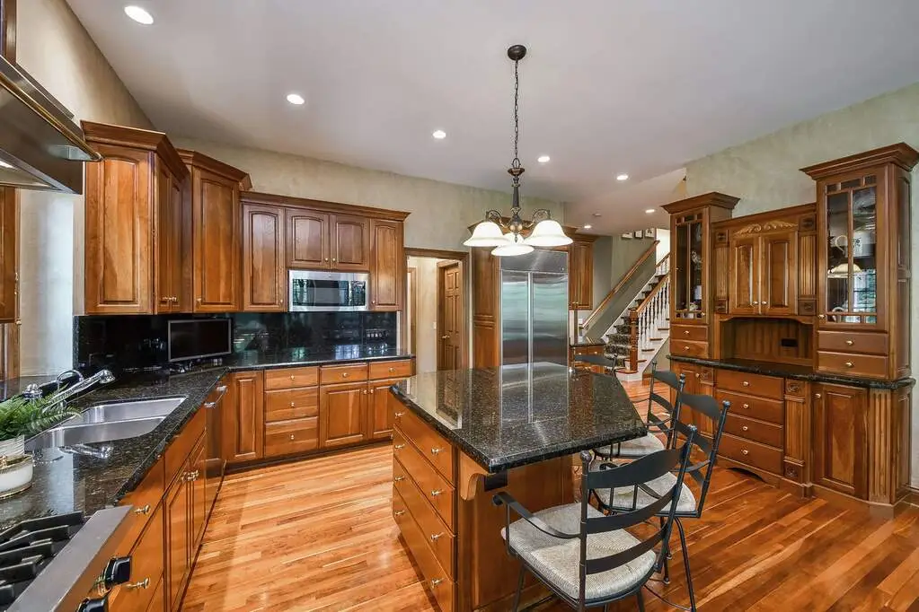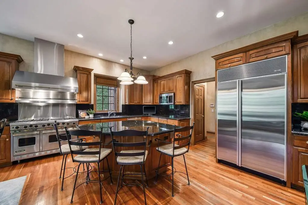 • Gourmet kitchen with high-end appliances and sunlit sitting area