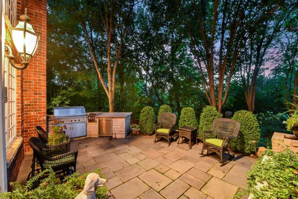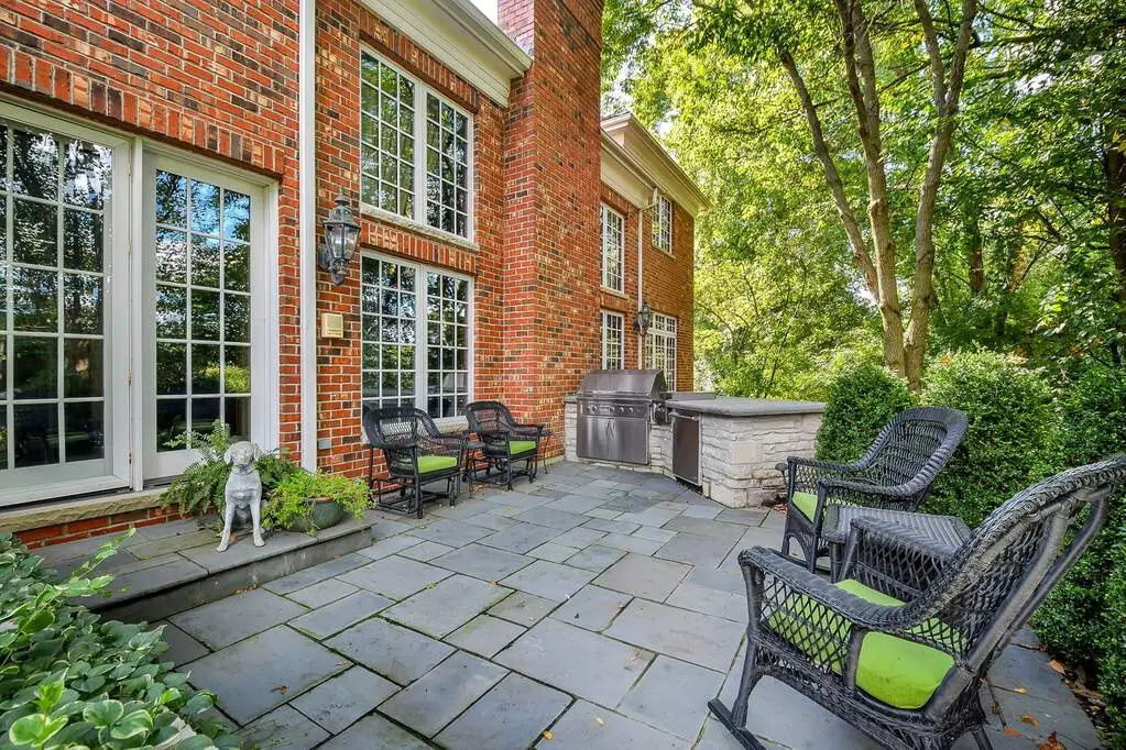 • Bluestone patio with built-in grill, burners, and beverage fridge