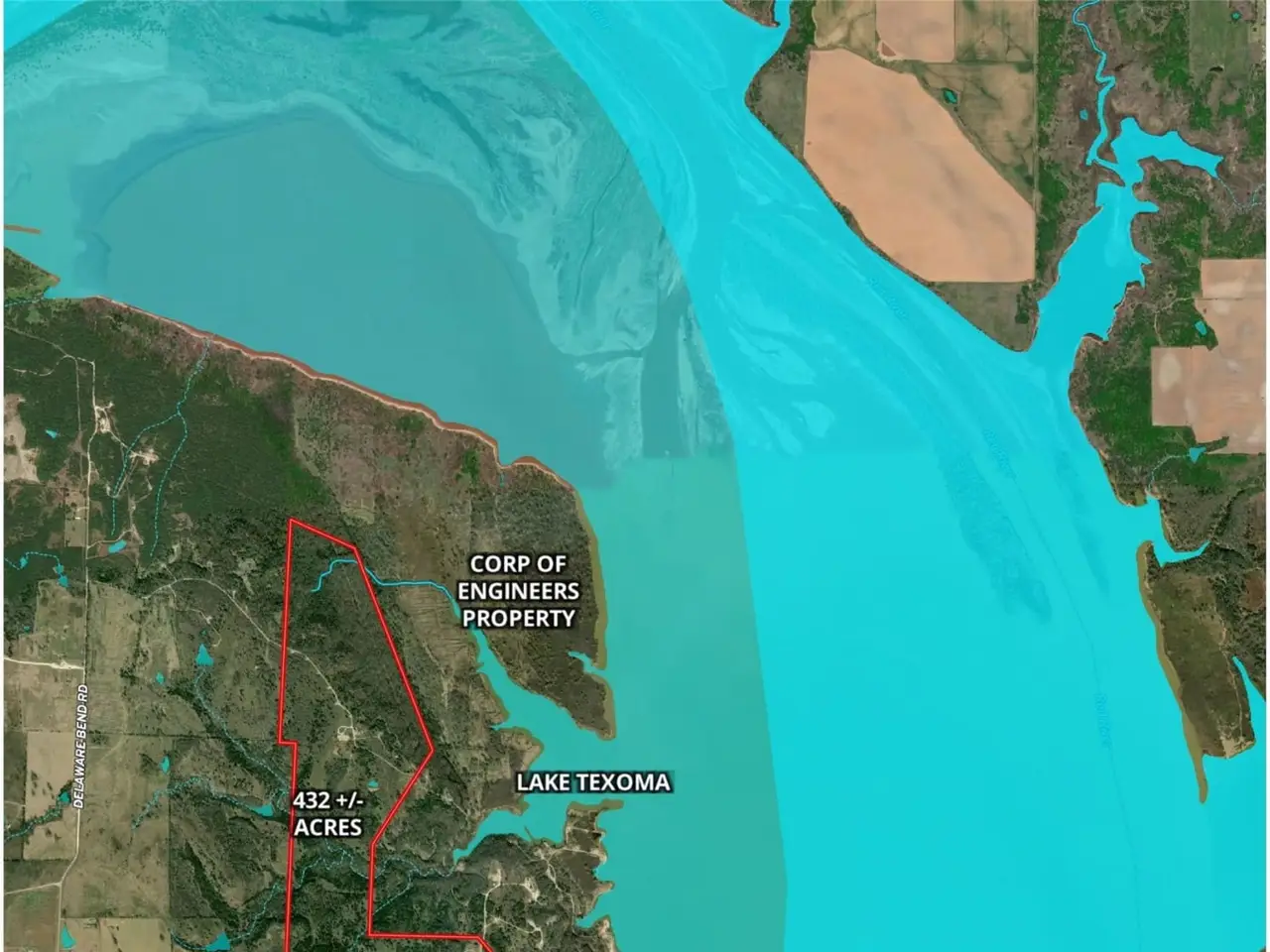 Recreational dream property adjoining Lake Texoma! Hunting, fishing, four wheeling or just relaxing are all possible on this 432 acre property. This very unique property adjoins the Corps of Engineers land on Lake Texoma. There are approximately 3 miles of Corps frontage adjoining over 700 acres between you and the Lake. The terrain is varied with elevation changes of 145 feet with the highest at 775 feet. There are 3 ponds, several creeks, open grazing areas, and a large blanket of hardwood trees. Northern Grayson County is known for its Whitetail deer and Lake Texoma for its Striper fishing. Wildlife hunting and fishing can be nothing less than exceptional! It has one entry at Slickum Slough and is fenced for cattle. This property is a rare find as there are no other properties on the market that adjoin Lake Texoma with this amount of acreage. There are active oil and gas leases in place on the property. Minerals do not covey but could be negotiated.