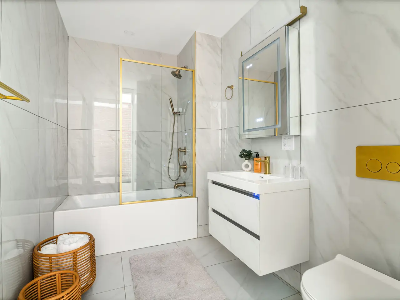 Spa-inspired bathrooms with marble finishes