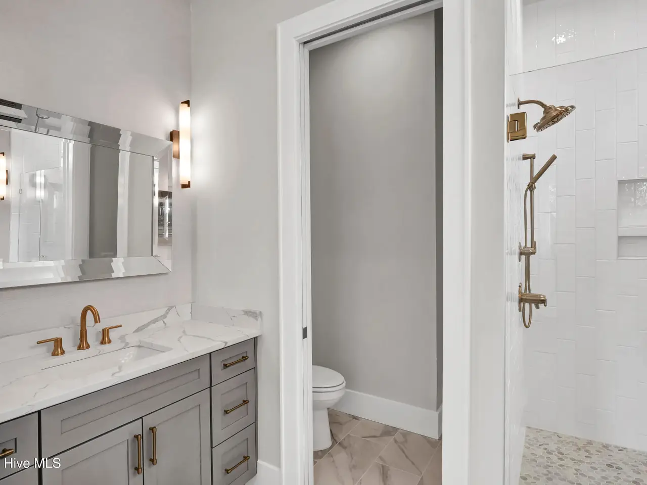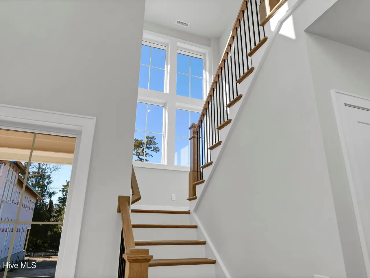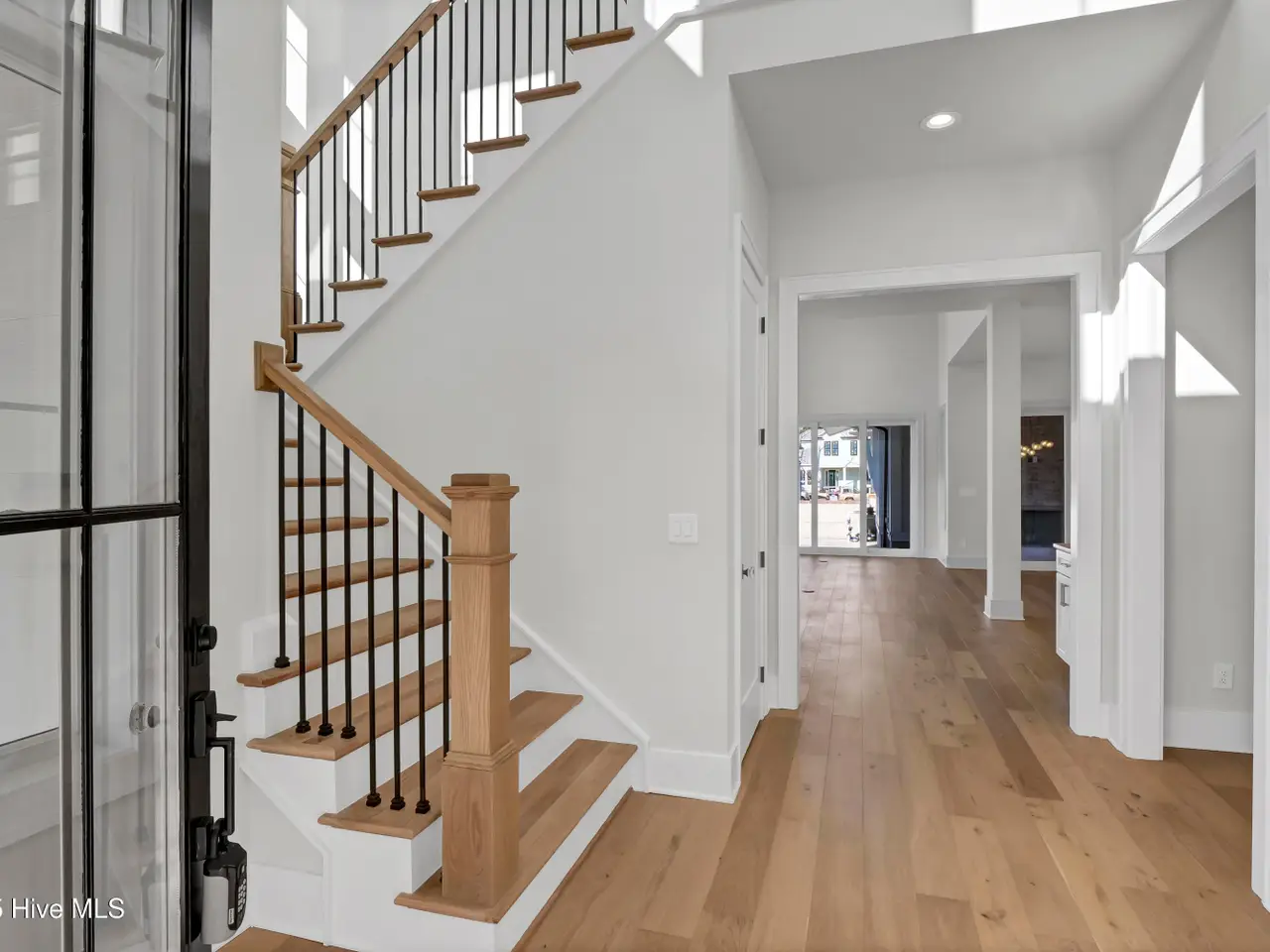 Introducing the exclusive custom home by Shenandoah Homes, a modern coastal dream come to life. 3,185 heated square foot home that presents primary first floor living with a design layout that is perfect for family and friends to enjoy. The exterior will feature incredible Hardie siding with a beautiful charcoal metal roofing and bracket details will give this timeless exterior something to rave about. As soon as you step through the front door, you'll be greeted with an incredible foyer with the clean-line iron stair railing that carries your eye up to the 2nd floor. Ahead, your eyes will wonder through the gathering room with views to the lush backyard and pool. The primary master suite will provide a gorgeous trim feature wall, pendant lighting, and incredible design elements in the master bath. Upstairs will house bedrooms 2-4, in addition to a spacious lounge with mini office or storage room. Whether you are cozied up on the gracious front porch that overlooks Lebanon Chapel park or enjoying the privacy of the large covered back patio and yard with its natural gas fireplace, outdoor grill and plunge pool, you are bound to pick the perfect spot to relax and enjoy the beautiful outdoor spaces.