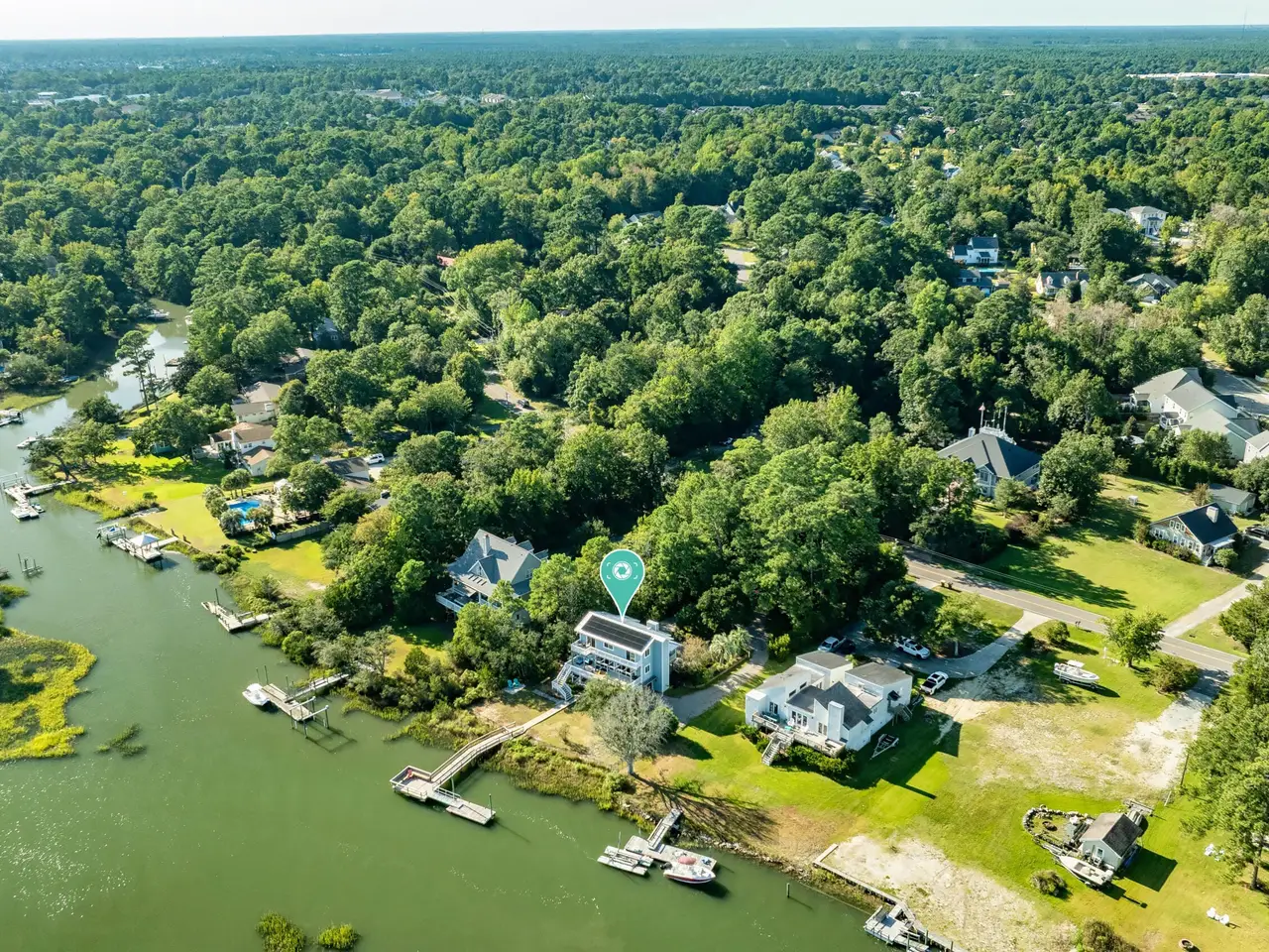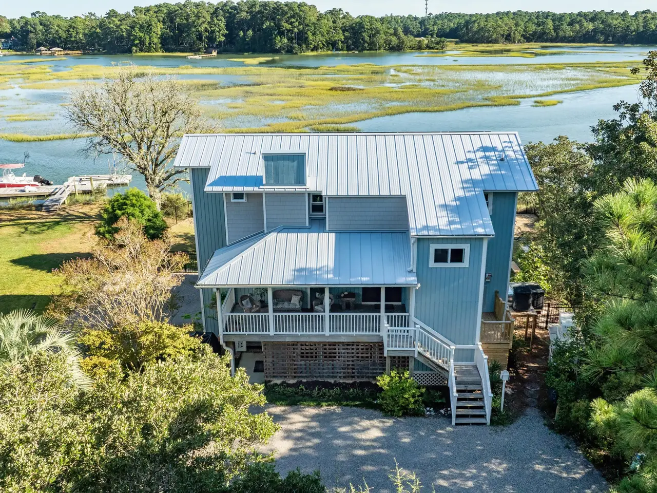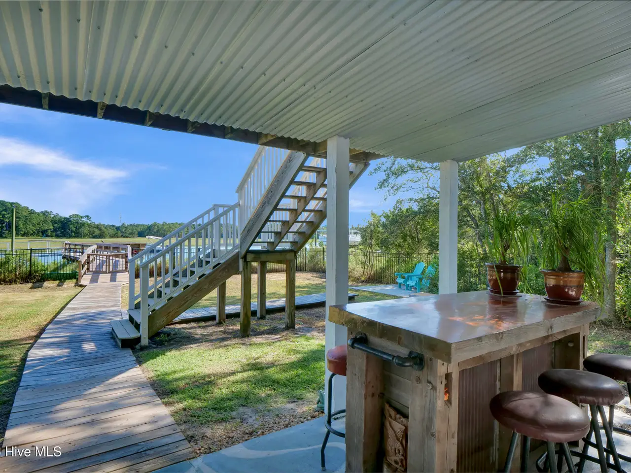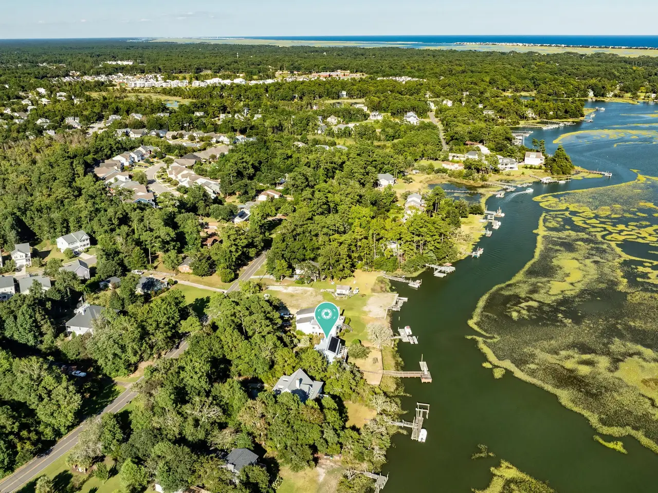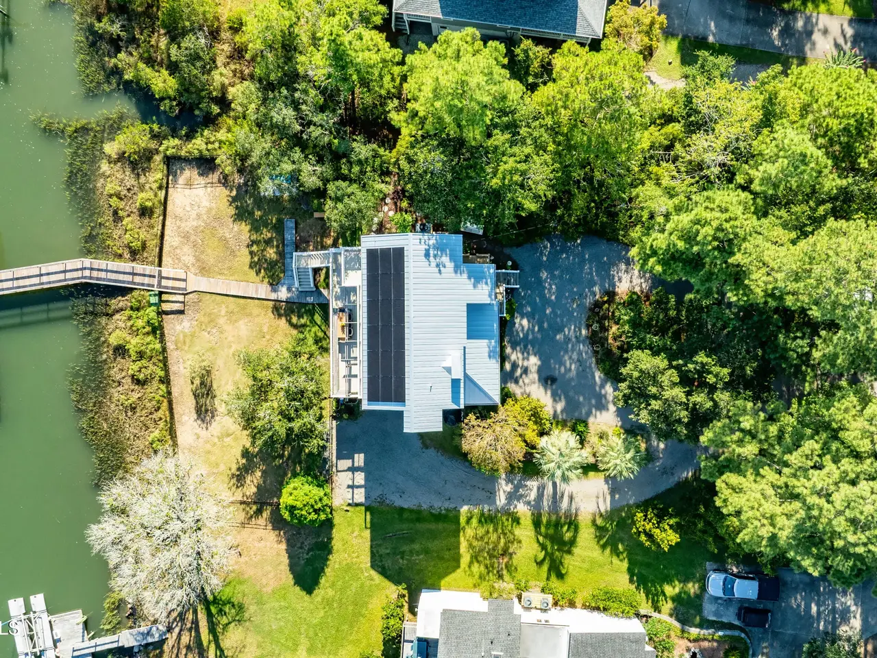 Ready for waterfront living? Spectacular location on Page's Creek with sweeping creek views and easy access to the Intracoastal Waterway. Experience the luxury of your private pier with 2 boat slips just steps off your deck! 2024 Renovations included a new metal roof, new windows, new HVAC including ducts and insulation, plus a new electric hybrid hot water heater. Beautifully renovated interior with new kitchen and baths. Enjoy cooking in the pretty white kitchen that features a stainless farmhouse sink, LG dual fuel range, plus a spacious island making it the perfect spot for entertaining or casual dining. Electric fireplace in family room combines ambiance and a cozy space for cooler weather. Access the 3-bedroom 2 bath second floor via the pretty open staircase or choose a quick elevator ride. Stair free access as the elevator services all levels to make life simple. Newly refinished wood flooring throughout the second level living areas plus renovated baths with tile, quartz, walk-in shower in master bath and a claw foot tub/shower combo in the guest bath. Never worry about loss of electricity with the newly purchased and completely paid for 14 panel 2 battery solar system that powers the house day and night. There is an additional whole house generator to back up the solar! Amazing outdoor living spaces with over 1,000 sq. ft. of covered porches, decks, and patios! Soak up the sun or have a relaxing afternoon in the shade, your choice. Downstairs tiki bar area, large outdoor shower with hot water and a peek a boo view of the creek. Workshop area plus a detached shed for storage. Mature and lush landscaping provides a home for wildlife, yet it is minutes to Mayfair, Wrightsville Beach, or easy access to I-140 and downtown. No HOA and low county taxes. Ready for coastal living and boating? This is the one!