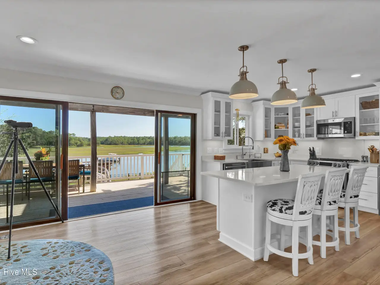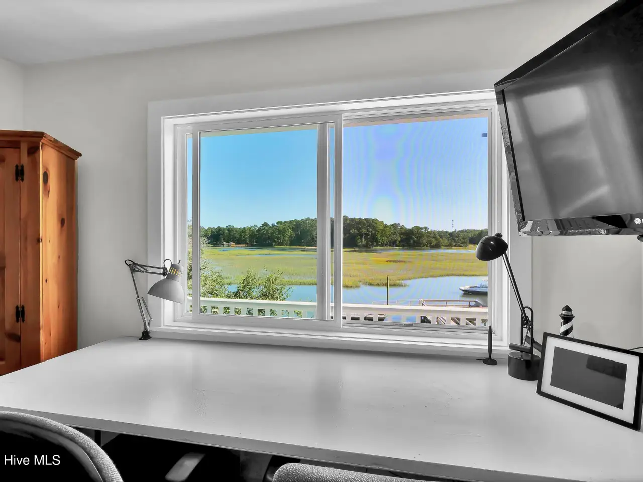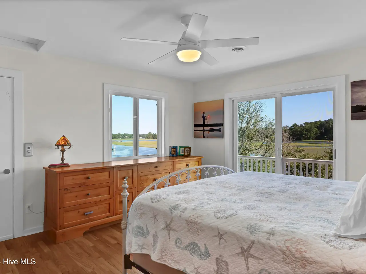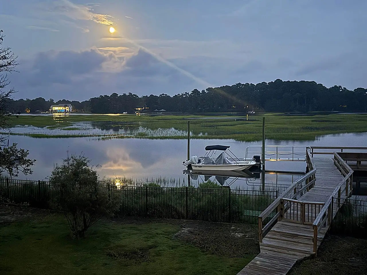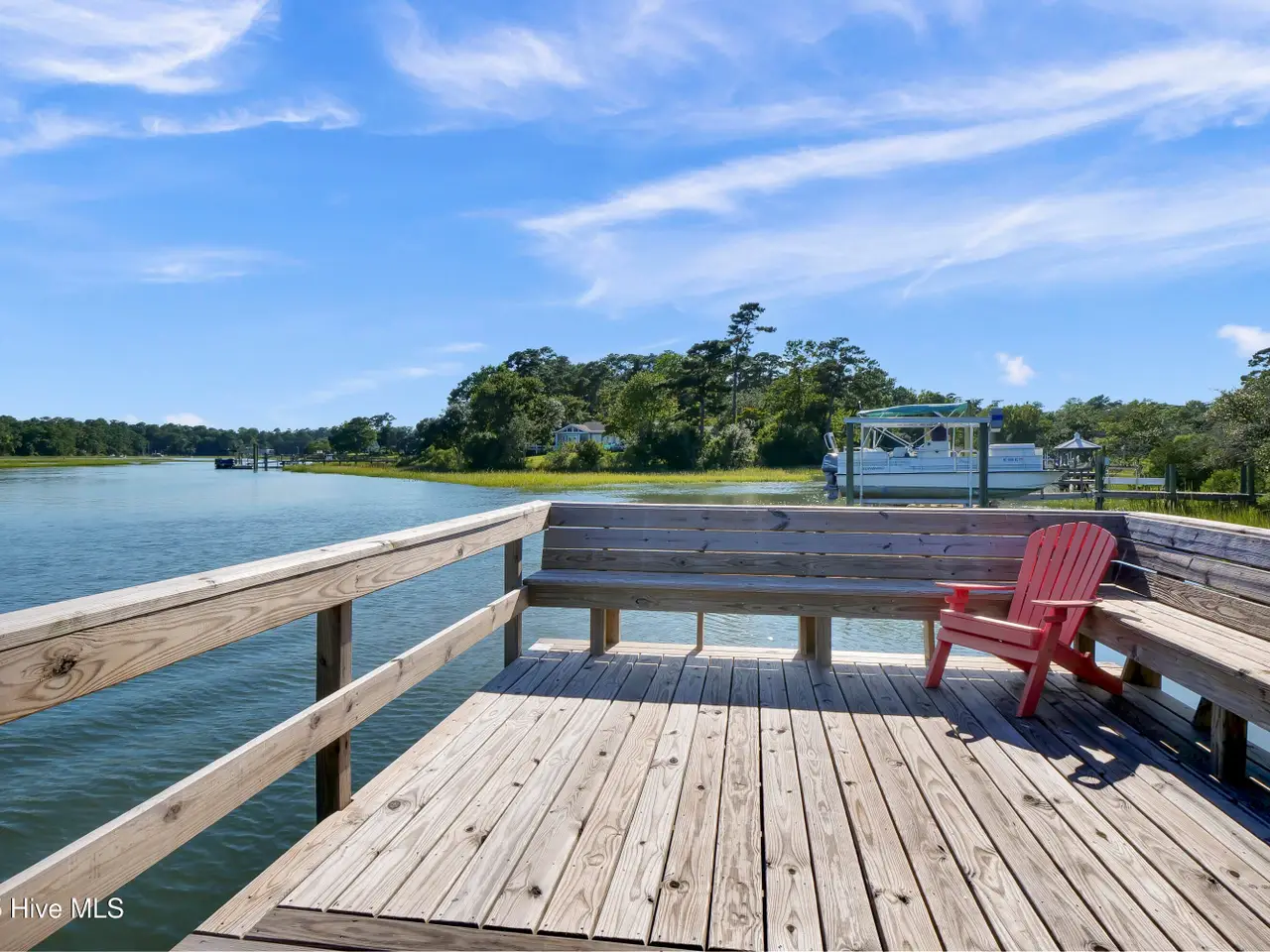 Ready for waterfront living? Spectacular location on Page's Creek with sweeping creek views and easy access to the Intracoastal Waterway. Experience the luxury of your private pier with 2 boat slips just steps off your deck! 2024 Renovations included a new metal roof, new windows, new HVAC including ducts and insulation, plus a new electric hybrid hot water heater. Beautifully renovated interior with new kitchen and baths. Enjoy cooking in the pretty white kitchen that features a stainless farmhouse sink, LG dual fuel range, plus a spacious island making it the perfect spot for entertaining or casual dining. Electric fireplace in family room combines ambiance and a cozy space for cooler weather. Access the 3-bedroom 2 bath second floor via the pretty open staircase or choose a quick elevator ride. Stair free access as the elevator services all levels to make life simple. Newly refinished wood flooring throughout the second level living areas plus renovated baths with tile, quartz, walk-in shower in master bath and a claw foot tub/shower combo in the guest bath. Never worry about loss of electricity with the newly purchased and completely paid for 14 panel 2 battery solar system that powers the house day and night. There is an additional whole house generator to back up the solar! Amazing outdoor living spaces with over 1,000 sq. ft. of covered porches, decks, and patios! Soak up the sun or have a relaxing afternoon in the shade, your choice. Downstairs tiki bar area, large outdoor shower with hot water and a peek a boo view of the creek. Workshop area plus a detached shed for storage. Mature and lush landscaping provides a home for wildlife, yet it is minutes to Mayfair, Wrightsville Beach, or easy access to I-140 and downtown. No HOA and low county taxes. Ready for coastal living and boating? This is the one!