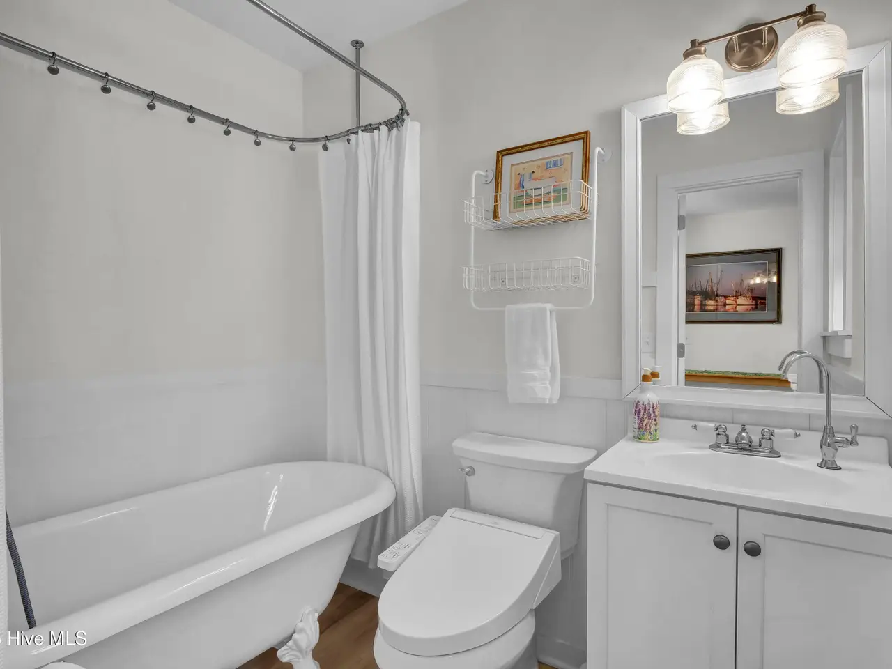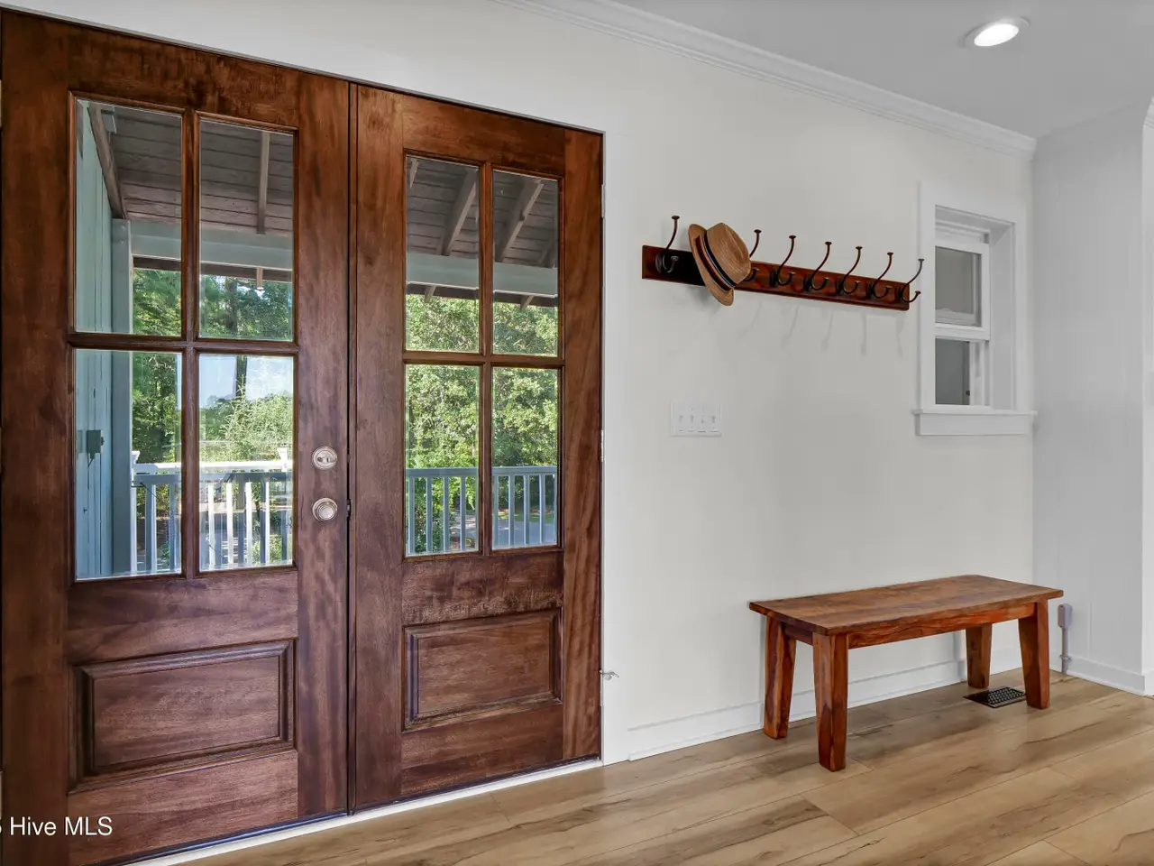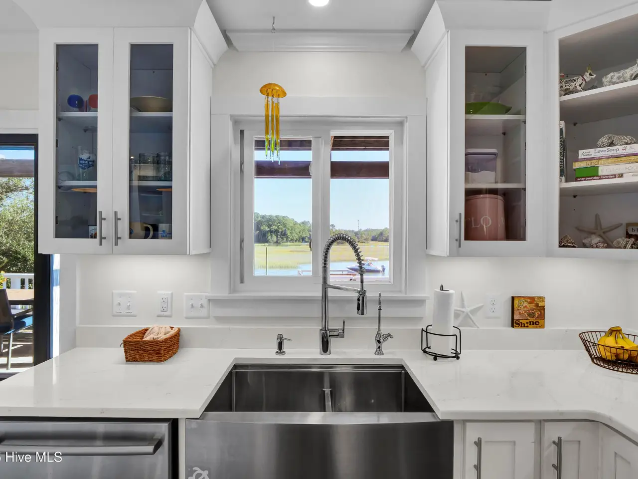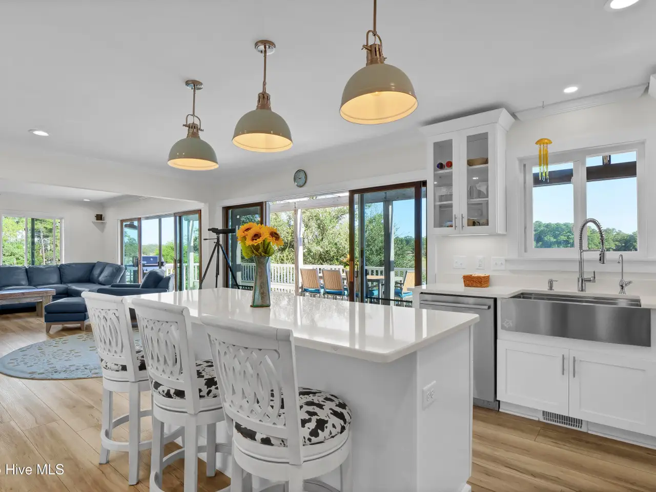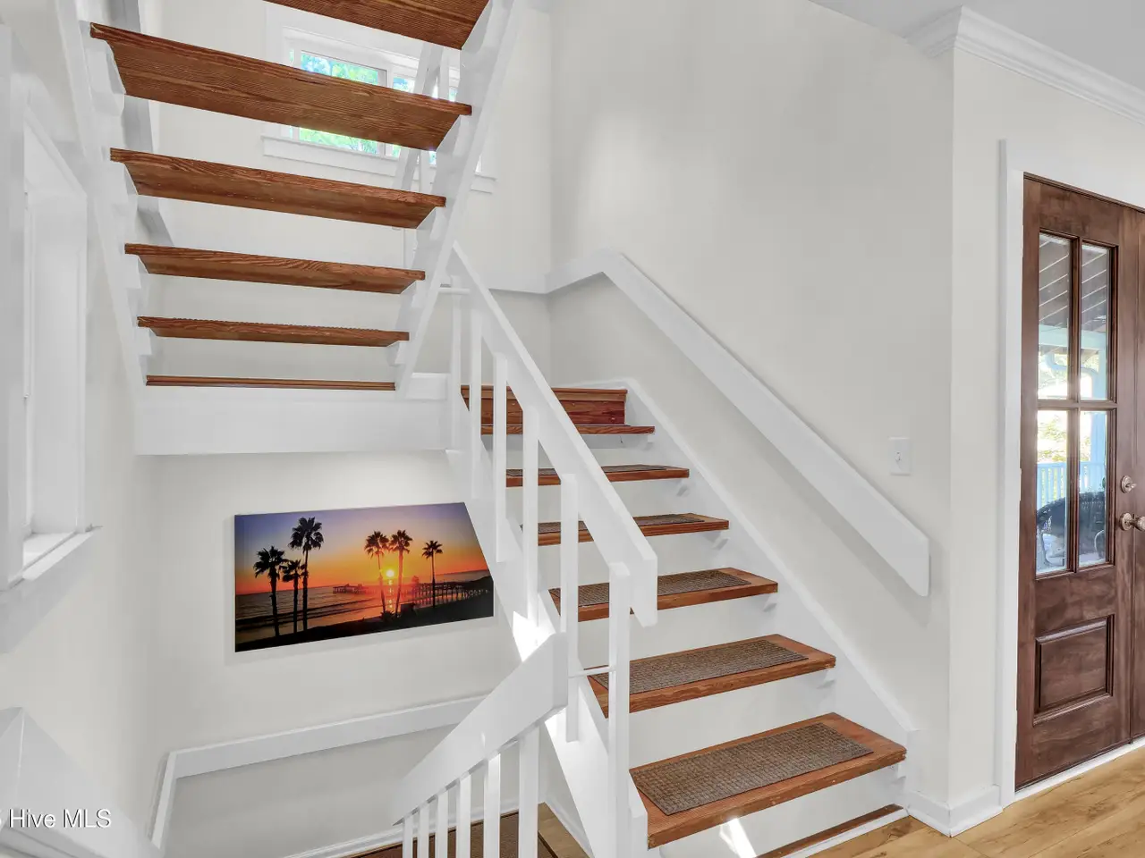 Ready for waterfront living? Spectacular location on Page's Creek with sweeping creek views and easy access to the Intracoastal Waterway. Experience the luxury of your private pier with 2 boat slips just steps off your deck! 2024 Renovations included a new metal roof, new windows, new HVAC including ducts and insulation, plus a new electric hybrid hot water heater. Beautifully renovated interior with new kitchen and baths. Enjoy cooking in the pretty white kitchen that features a stainless farmhouse sink, LG dual fuel range, plus a spacious island making it the perfect spot for entertaining or casual dining. Electric fireplace in family room combines ambiance and a cozy space for cooler weather. Access the 3-bedroom 2 bath second floor via the pretty open staircase or choose a quick elevator ride. Stair free access as the elevator services all levels to make life simple. Newly refinished wood flooring throughout the second level living areas plus renovated baths with tile, quartz, walk-in shower in master bath and a claw foot tub/shower combo in the guest bath. Never worry about loss of electricity with the newly purchased and completely paid for 14 panel 2 battery solar system that powers the house day and night. There is an additional whole house generator to back up the solar! Amazing outdoor living spaces with over 1,000 sq. ft. of covered porches, decks, and patios! Soak up the sun or have a relaxing afternoon in the shade, your choice. Downstairs tiki bar area, large outdoor shower with hot water and a peek a boo view of the creek. Workshop area plus a detached shed for storage. Mature and lush landscaping provides a home for wildlife, yet it is minutes to Mayfair, Wrightsville Beach, or easy access to I-140 and downtown. No HOA and low county taxes. Ready for coastal living and boating? This is the one!