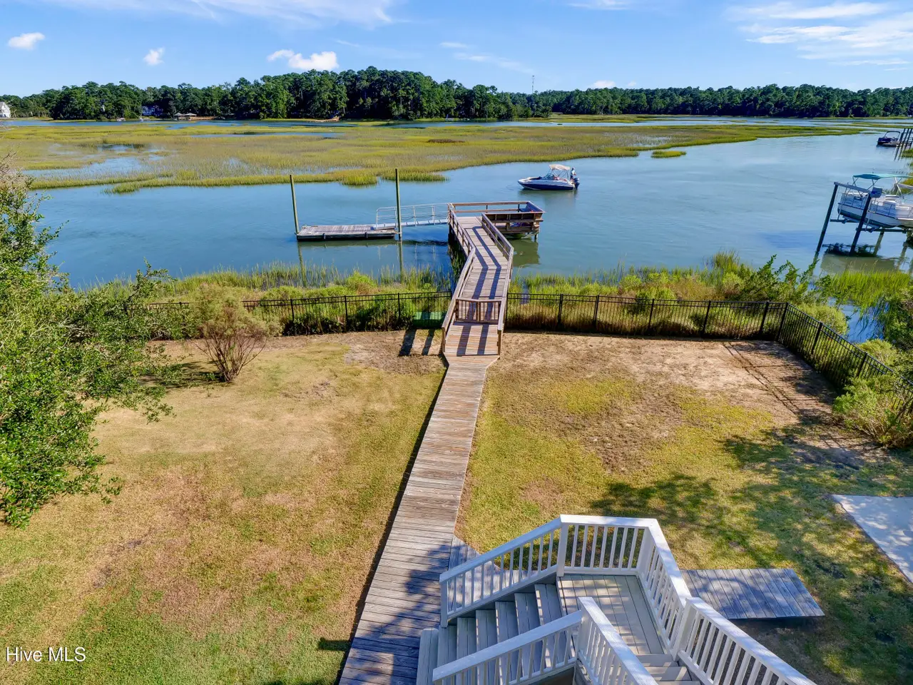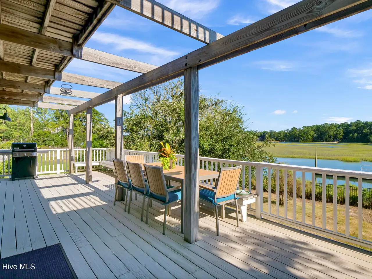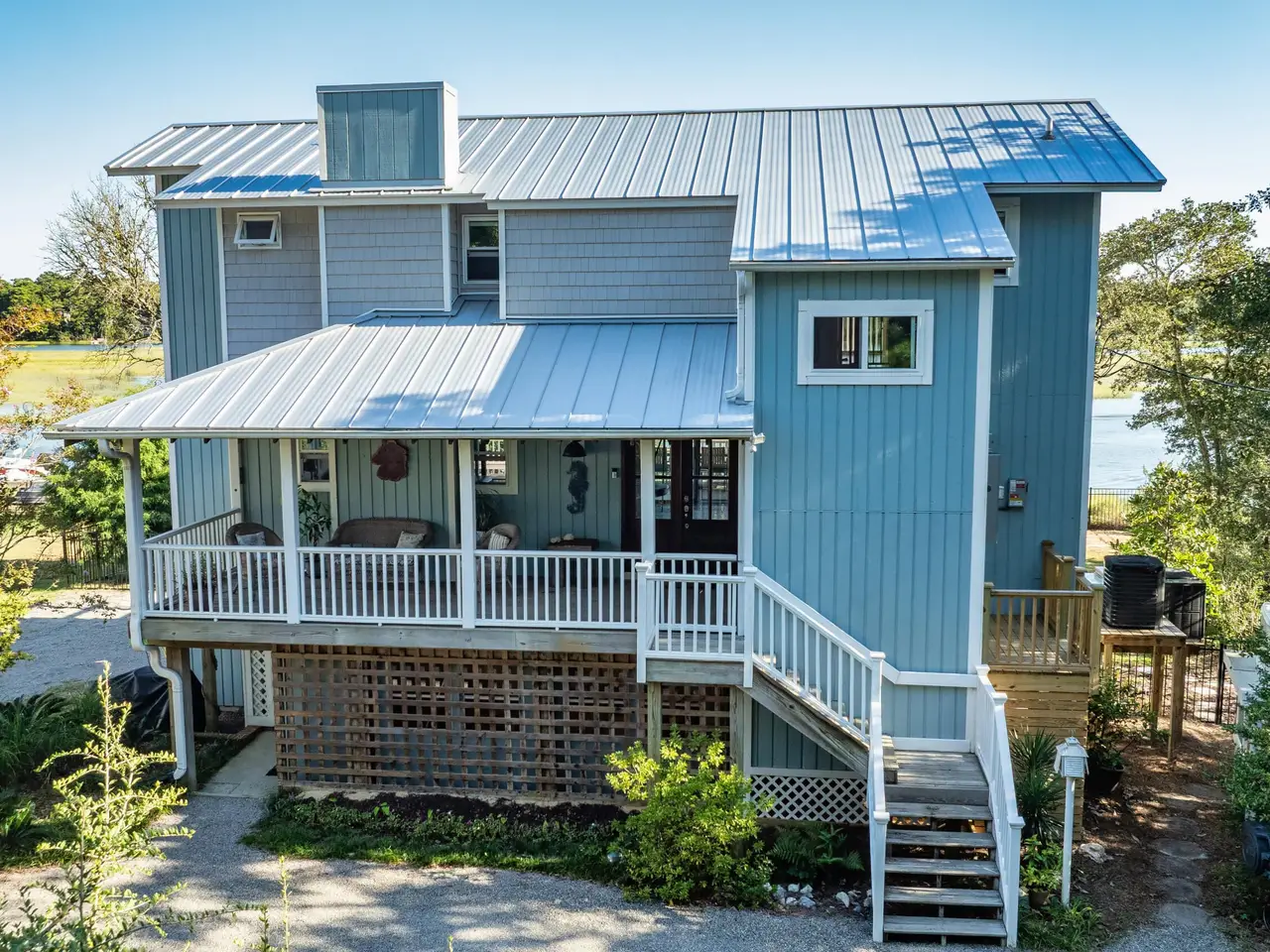 Ready for waterfront living? Spectacular location on Page's Creek with sweeping creek views and easy access to the Intracoastal Waterway. Experience the luxury of your private pier with 2 boat slips just steps off your deck! Great location on the creek with deep water boating. 2024 Renovations included a new metal roof, new windows, new HVAC including attic ducts and insulation, plus a new electric hybrid hot water heater. Beautifully renovated interior with new kitchen and baths. Enjoy cooking in the pretty white kitchen that features a stainless farmhouse sink, LG dual fuel range, plus a spacious island making it the perfect spot for entertaining or casual dining. Electric fireplace in family room combines ambiance and a cozy space for cooler weather. Access the 3-bedroom 2 bath second floor via the pretty open staircase or choose a quick elevator ride. Stair free access as the elevator services all levels to make life simple. Newly refinished wood flooring throughout the second level living areas plus renovated baths with tile, quartz, walk-in shower in master bath and a claw foot tub/shower combo in the guest bath. Never worry about loss of electricity with the newly purchased and completely paid for 14 panel 2 battery solar system that powers the house day and night. There is an additional whole house generator to back up the solar! Amazing outdoor living spaces with over 1,000 sq. ft. of covered porches, decks, and patios! Soak up the sun or have a relaxing afternoon in the shade, your choice. Downstairs tiki bar area, large outdoor shower with hot water and a peek a boo view of the creek. Workshop area plus a detached shed for storage. Mature and lush landscaping provides a home for wildlife, yet it is minutes to Mayfair, Wrightsville Beach, or easy access to I-140 and downtown. No HOA and low county taxes. Ready for coastal living and boating? This is the one!