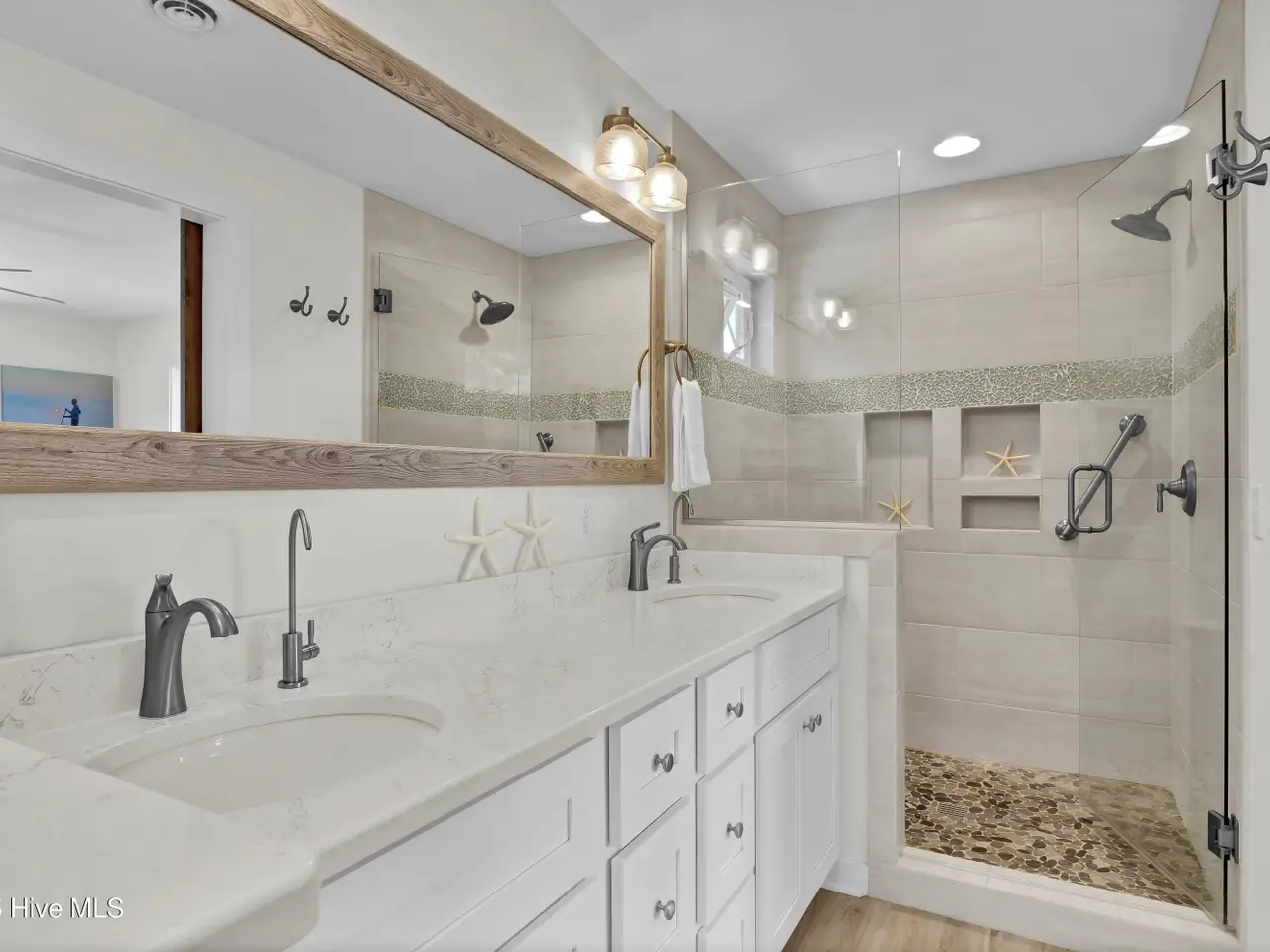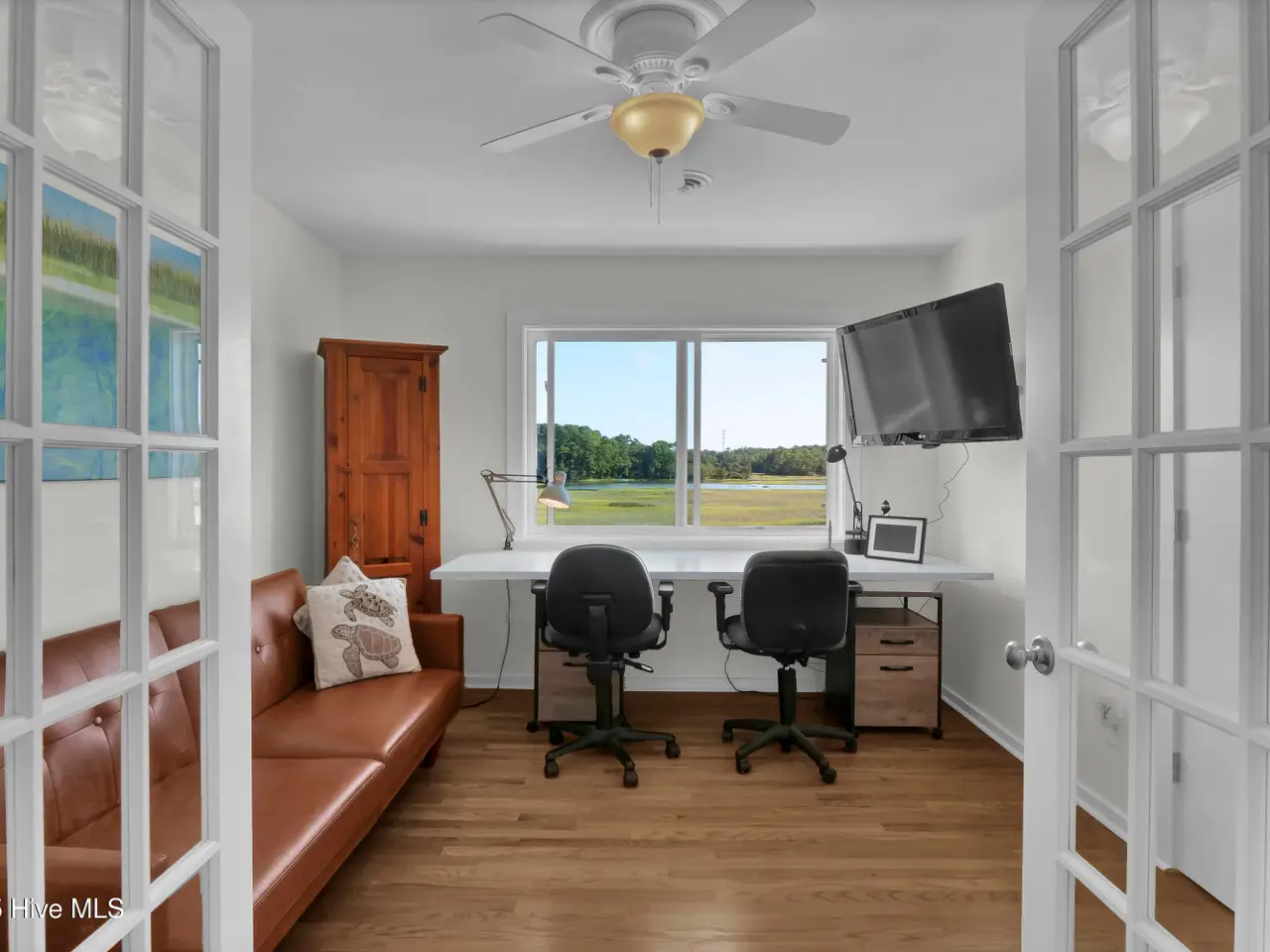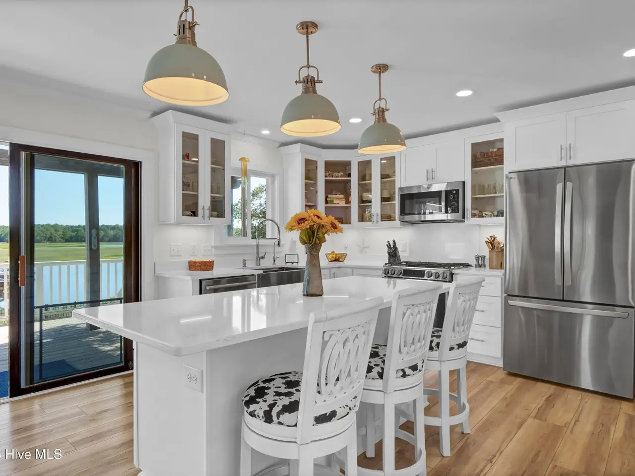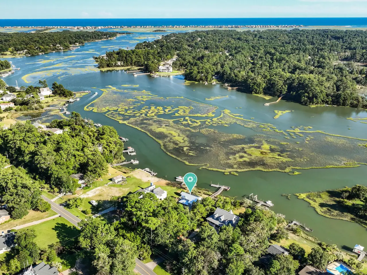 Ready for waterfront living? Spectacular location on Page's Creek with sweeping creek views and easy access to the Intracoastal Waterway. Experience the luxury of your private pier with 2 boat slips just steps off your deck! Great location on the creek with deep water boating. 2024 Renovations included a new metal roof, new windows, new HVAC including attic ducts and insulation, plus a new electric hybrid hot water heater. Beautifully renovated interior with new kitchen and baths. Enjoy cooking in the pretty white kitchen that features a stainless farmhouse sink, LG dual fuel range, plus a spacious island making it the perfect spot for entertaining or casual dining. Electric fireplace in family room combines ambiance and a cozy space for cooler weather. Access the 3-bedroom 2 bath second floor via the pretty open staircase or choose a quick elevator ride. Stair free access as the elevator services all levels to make life simple. Newly refinished wood flooring throughout the second level living areas plus renovated baths with tile, quartz, walk-in shower in master bath and a claw foot tub/shower combo in the guest bath. Never worry about loss of electricity with the newly purchased and completely paid for 14 panel 2 battery solar system that powers the house day and night. There is an additional whole house generator to back up the solar! Amazing outdoor living spaces with over 1,000 sq. ft. of covered porches, decks, and patios! Soak up the sun or have a relaxing afternoon in the shade, your choice. Downstairs tiki bar area, large outdoor shower with hot water and a peek a boo view of the creek. Workshop area plus a detached shed for storage. Mature and lush landscaping provides a home for wildlife, yet it is minutes to Mayfair, Wrightsville Beach, or easy access to I-140 and downtown. No HOA and low county taxes. Ready for coastal living and boating? This is the one!