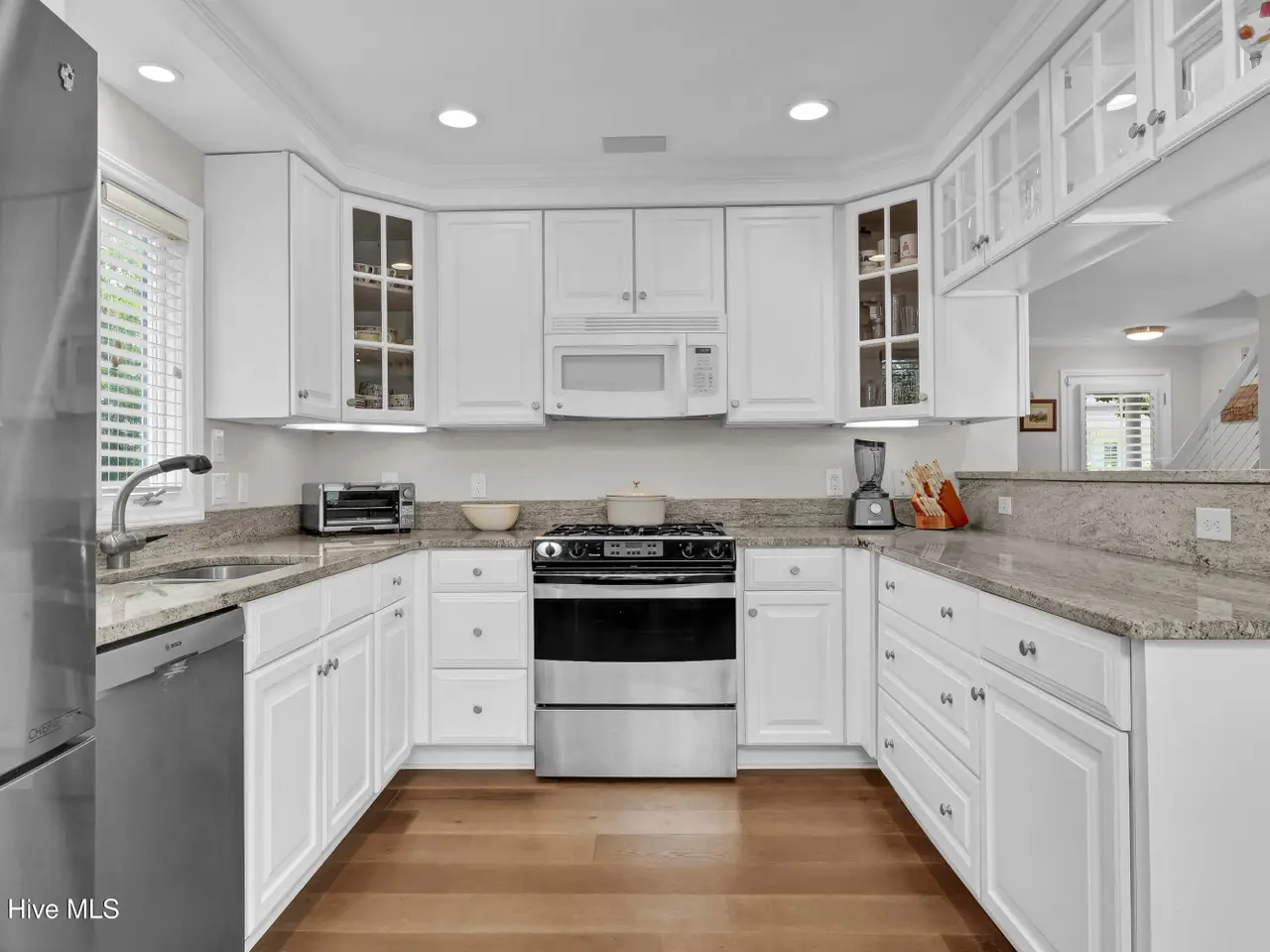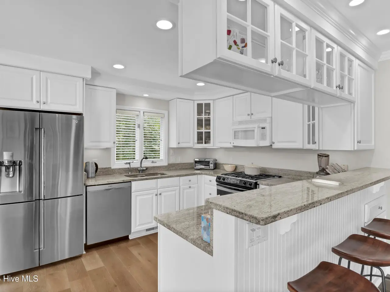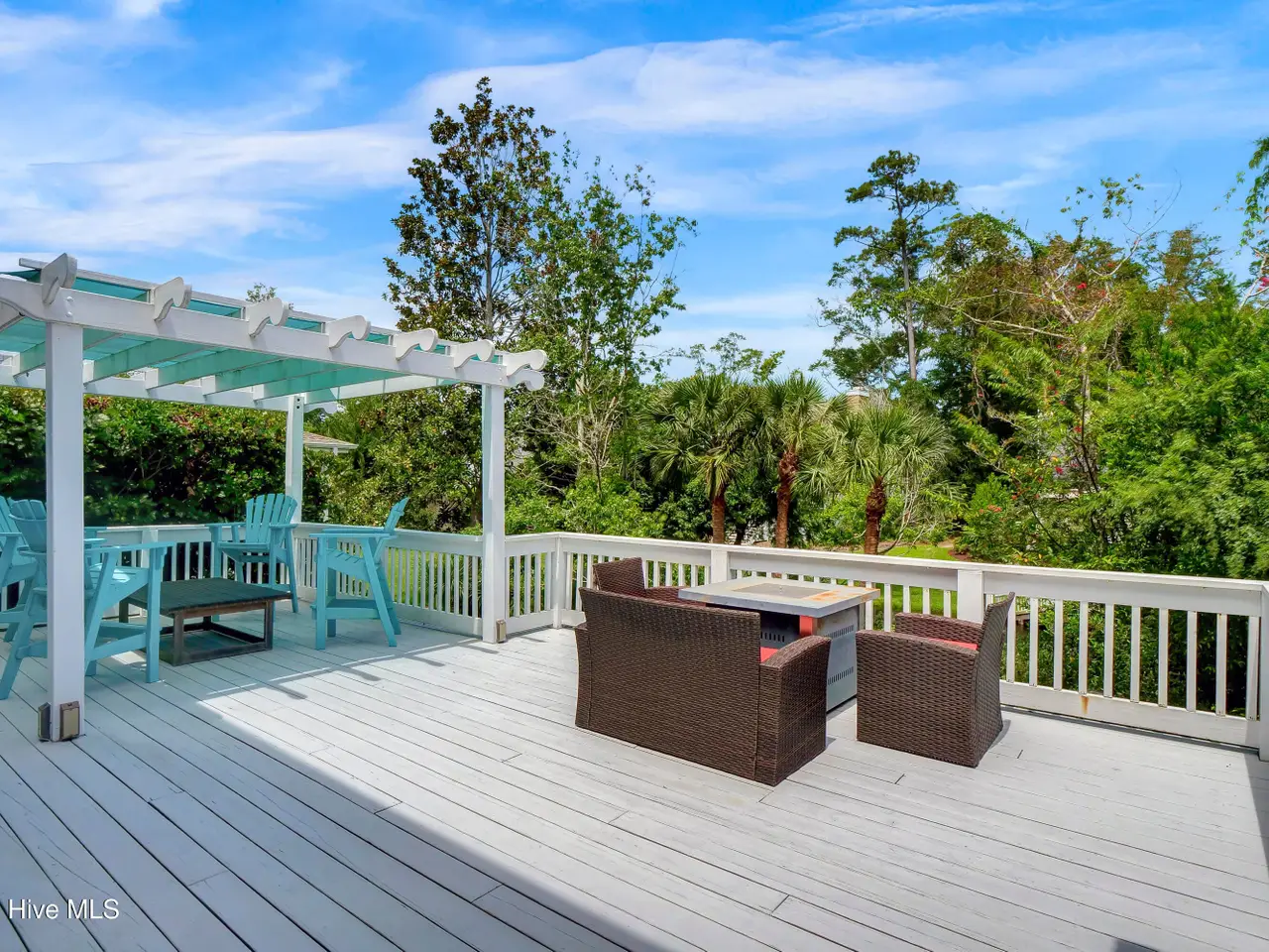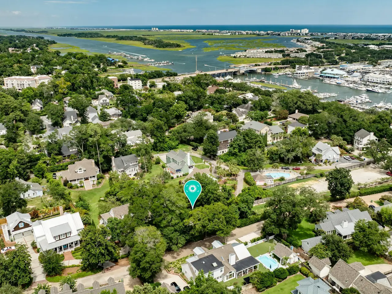 The drawbridge to Wrightsville Beach is the epicenter of the bubble and the best life in the Wilmington area. While this house is only 2371 square feet, it packs a punch with its rocking chair front porch, open floor plan, three bedrooms, 4 1/2 baths plus additional suite with kitchenette on the ground floor and two car garage. The elevated back deck overlooks, a beautifully landscaped pond and the Airlie Place neighborhood pool and clubhouse that is shared with the adjacent 9 neighbors. Nicely updated with quartz counters and updated baths, hardwood flooring, and great natural light. At the foot of the street is North Carolina scenic byway Airlie Road with three waterfront restaurants, including Dockside, Fish House and Bridge Tender. An easy walk or bike to the beach and start the day off with a stroll around the loop.