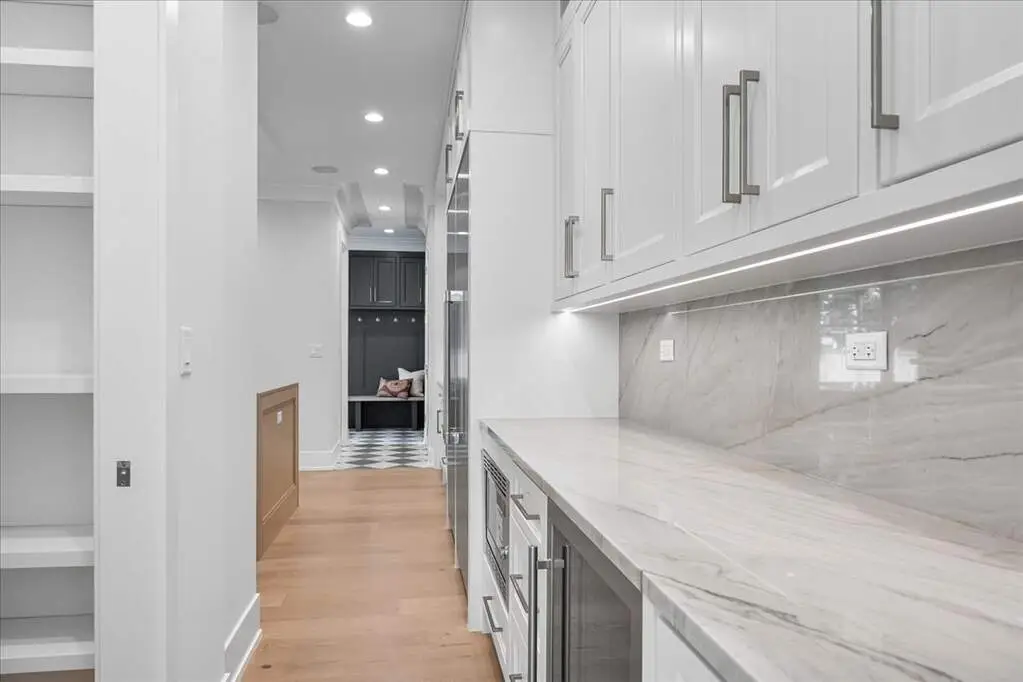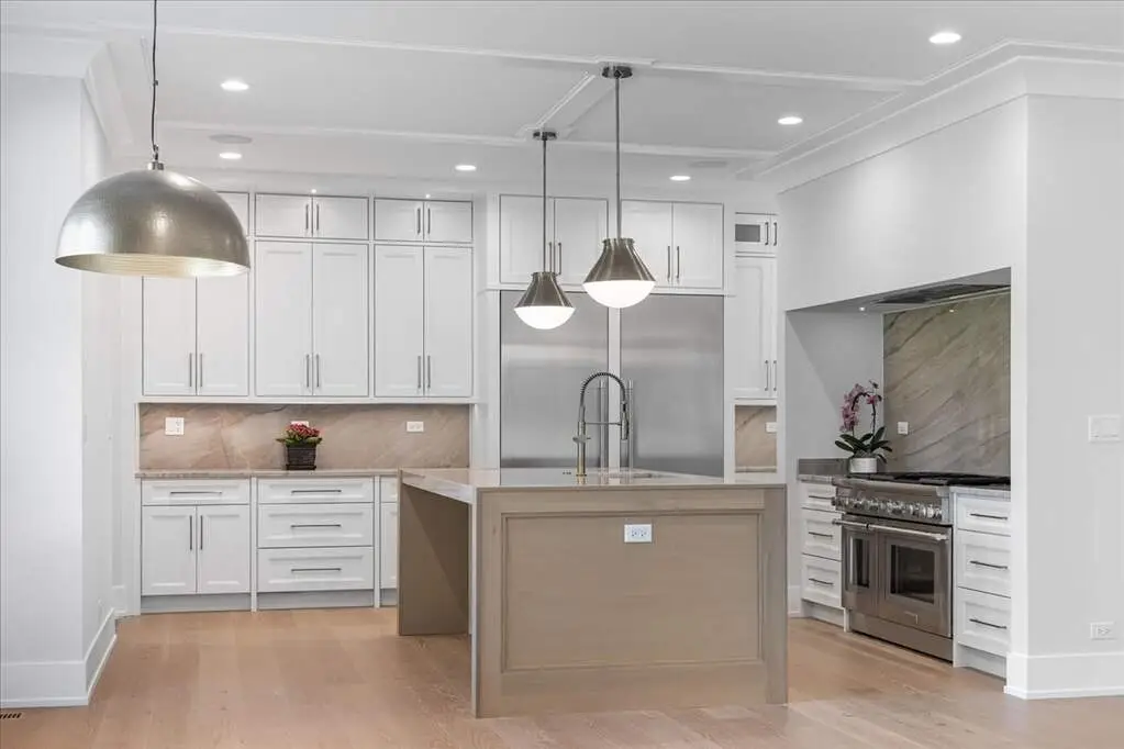 Take advantage as this is the ONLY new construction home currently available in Winnetka! Award-winning TREND Construction has once again delivered with this stunning new build, offering nearly 6,000 sq. ft. of sun-drenched living across 4 finished levels. With a fresh, tranquil aesthetic woven throughout, this home is the perfect mix of timeless architecture and modern lifestyle. Tucked on a coveted one-block street walking to all schools (New Trier, North Shore Country Day, Faith Hope Charity), town & train, make this even more desirable as this transitional beauty delivers on all levels. From the moment you arrive the crisp white exterior with warm wooden double glass doors sets the tone for what's inside. Step into a light-filled foyer with wide-plank hand-beveled oak floors and Marvin windows that flood the home with natural light. Every finish has been hand-selected, with a serene palette of quartzite, marble, and custom tilework. Off the foyer a chic Evergreen-hued office with custom built-ins w/ brass hardware & sleek glass door offers a stylish work-from-home space, while the opposite side opens to a formal dining room that seamlessly connects to a butler's pantry with beverage fridge, microwave, and walk-in pantry. At the heart of the home open-concept family room & chef's kitchen. Sleek kitchen boasts crisp white cabinetry, island with bar seating, s/s Thermador appliances, & sunny breakfast nook overlooking the backyard. Family room w/ gas fireplace flanked by custom built-ins and sliding glass doors to a backyard oasis complete with patio, built-in grill, and outdoor kitchen. Mudroom with custom cabinetry, bench, and 2nd powder room off the kitchen. Second level w/ 4 bedrooms: 2 share a Jack-and-Jill bath, one en suite, and a luxe primary suite with spa-like bath (dual vanity, walk-in shower, freestanding tub, private water closet) and a fully built-out walk-in closet. Large laundry room with sink, custom cabinetry, and double stacked LG washer/dryer. 3rd level w/ full bed & bath, rec space and storage while the LL delivers endless fun with a mirrored fitness studio, huge recreation room with custom built-ins and bar, plus another full bath. With the finest construction, design, and location, this home is a rare chance to own brand-new construction in the heart of Winnetka!