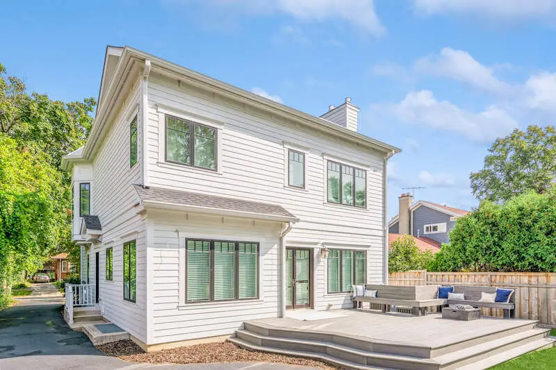 This exceptional residence is nestled on one of Winnetka's most sought after "tree" streets in a walk to everything location, offering unparalleled convenience and charm. Ideally located just blocks from the train, schools and all the coveted Winnetka shops and restaurants, this in-town gem is a newer custom built 5 bedroom, 4.1 bath home offering 4 levels of flexible living space with classically contemporary finishes. It is not to be missed! A gracious front open entry hall flanked by an office and living room both overlooking a classic front porch beckons you into the heart of the home where you will want to relax and enjoy the massive great room with a large beautifully appointed chef's kitchen, and dining and family room that overlooks a verdant back yard complete with a large Trex deck. Also on the first floor is a powder room, mud room with entryway off the side driveway. The main floor offers endless options - whether its large scale entertaining or informal dinners - all are possible in this bright open space, complete with a fireplace and large windows overlooking the back yard. The chef's kitchen features custom white cabinetry, beautiful stone backsplash and counters. No shortage of prep space in this kitchen which includes high end stainless appliances - Viking and Bosch. Upstairs two front facing bedrooms enjoy an open terrace and full hall bath. Running along the back of the house a peaceful luxury oasis awaits featuring a primary suite with fireplace, large walk-in custom closet, and spa like marble bath with separate shower and a stand-alone soaking tub, and separate sinks. The third floor offers a multitude of options with its large bedroom with full ensuite bath. Given its configurations it affords privacy and could be the perfect location for a nanny or older child. The light-filled lower level has high ceilings and is the perfect hang out space for watching the big game or informal entertaining. A fifth bedroom on this level could be a guest suite or an office and is located adjacent to a 4th full bathroom. Conveniently located downstairs is a large laundry/utility room with sink, cabinetry and side by side washer/dryer that has ample storage options. A large detached garage has a generous attic for additional storage. Enjoy living in this beautifully designed house and enjoy all that the North Shore has to offer! 2023 Taxes: $25,955.01 w/ homeowners' exemption.